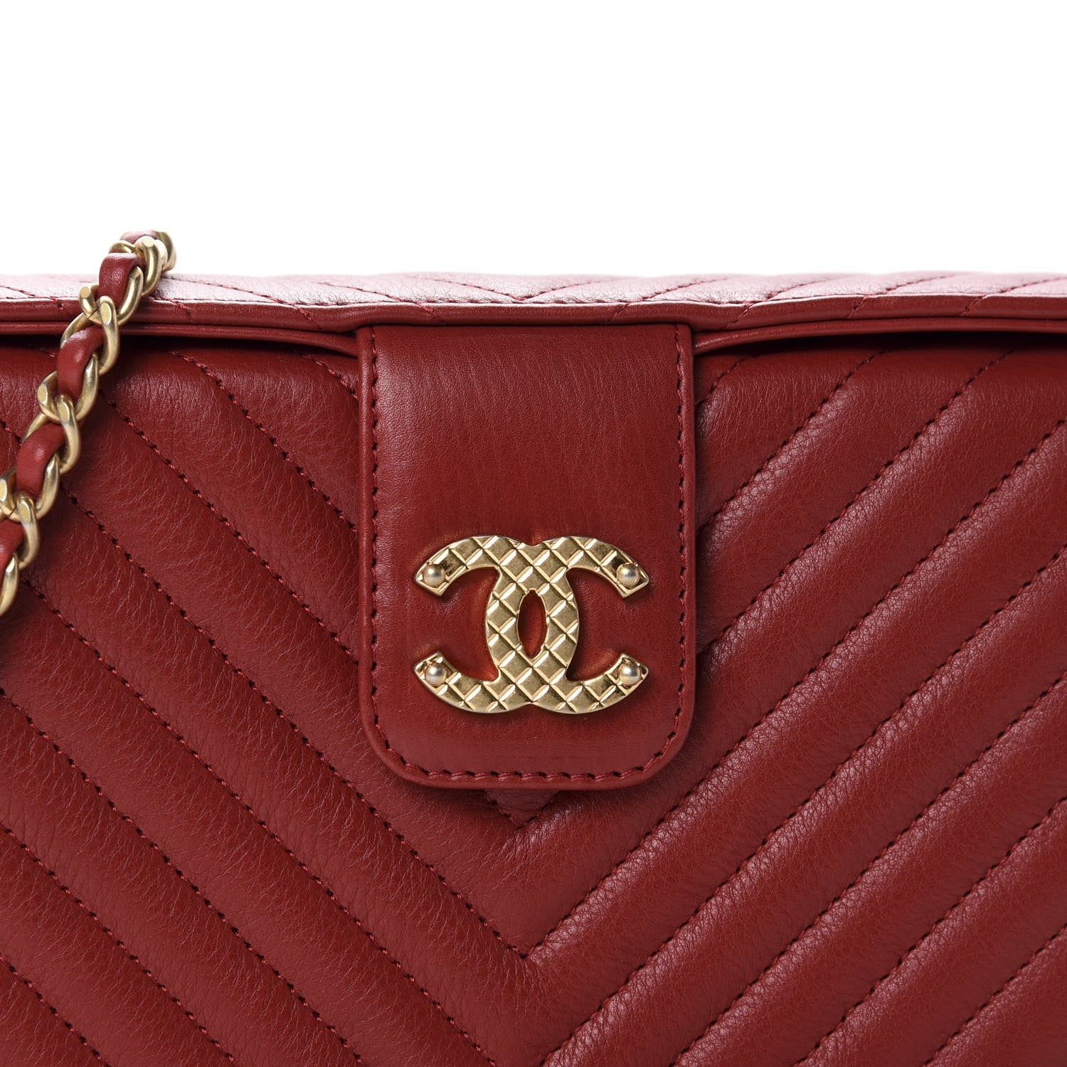 Chanel Calfskin Chevron Quilted Rock The Corner Minaudiere Bag Red- Pre-Owned, Excellent Condition.