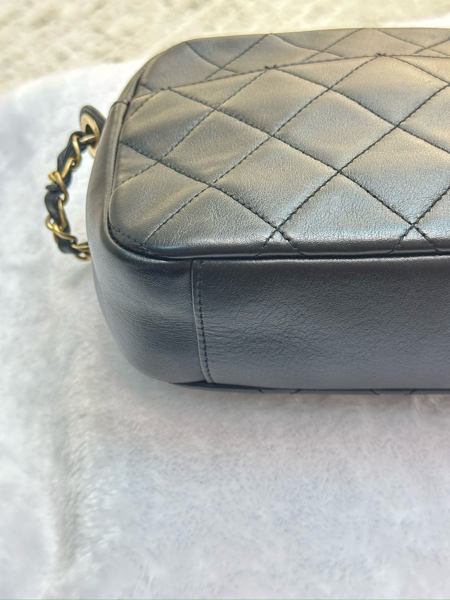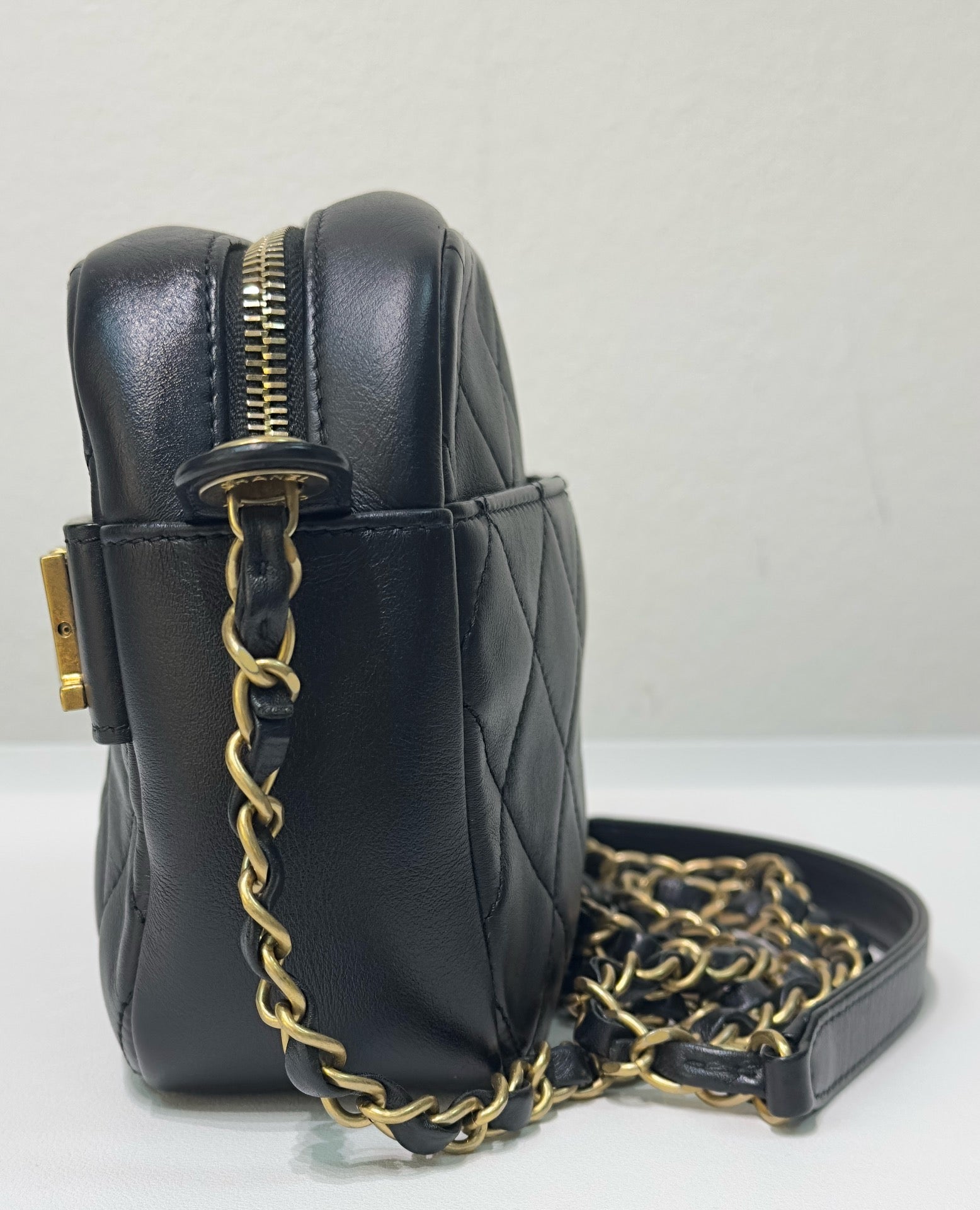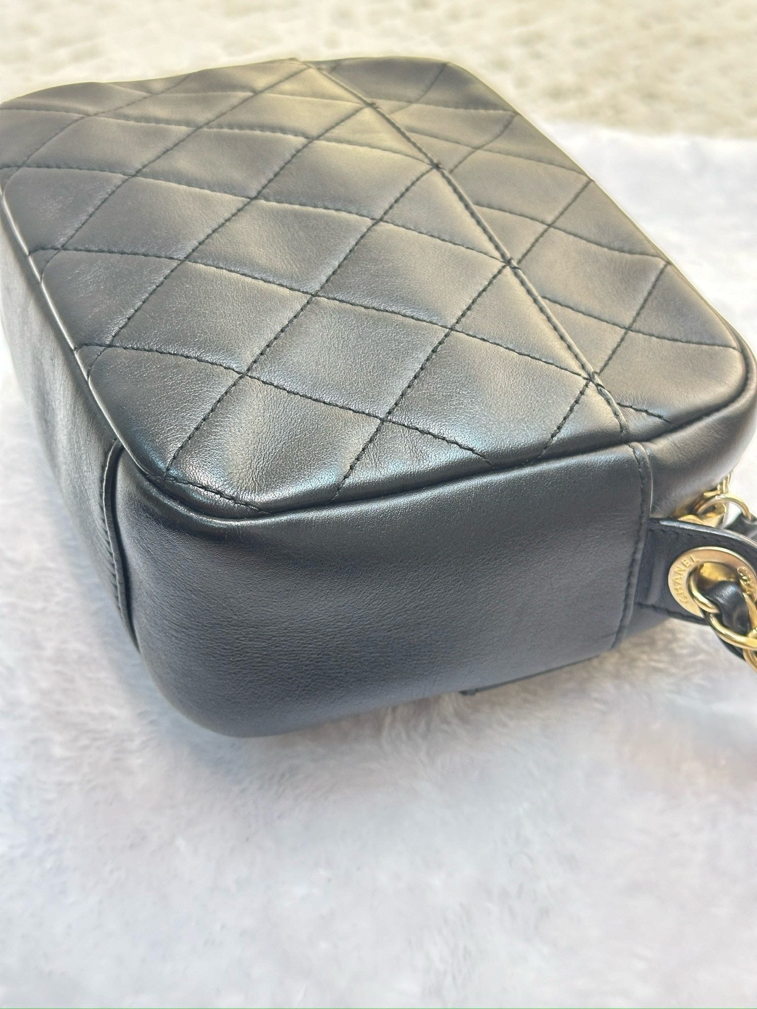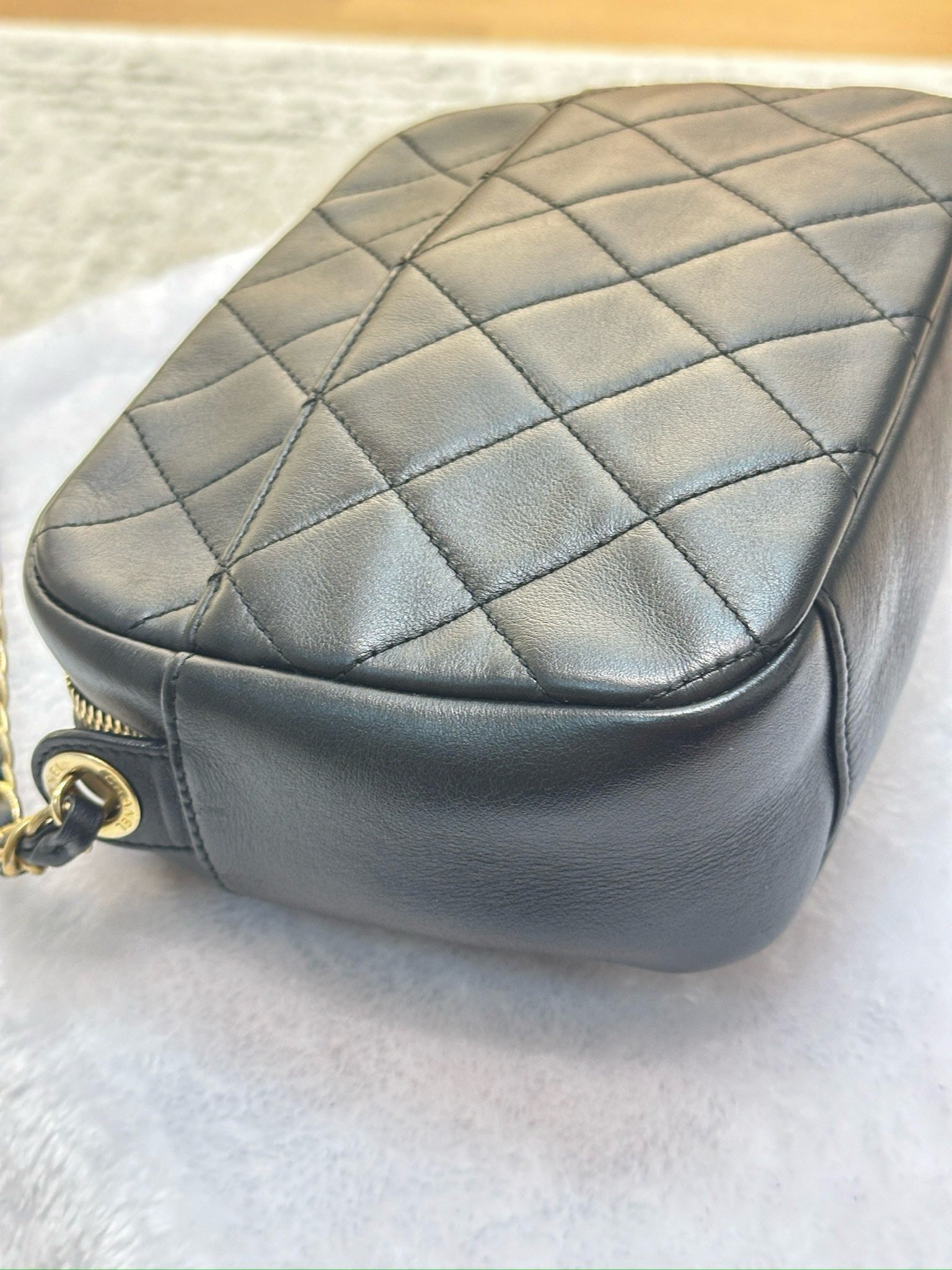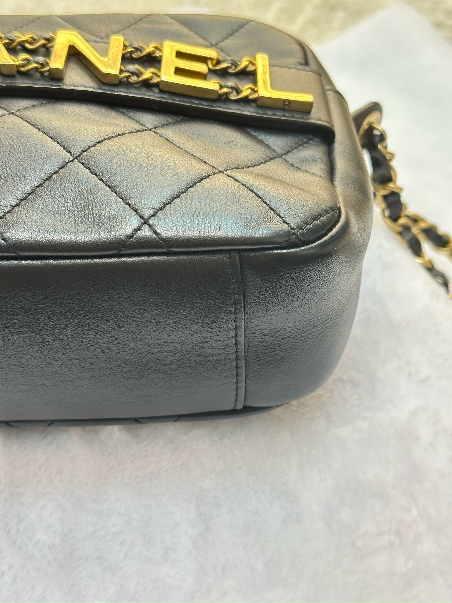Chanel Calfskin Quilted Enchained Camera Case Bag Black
