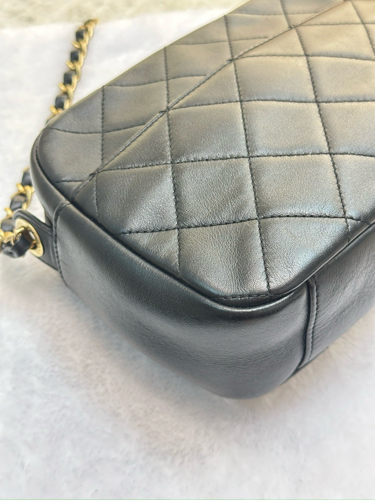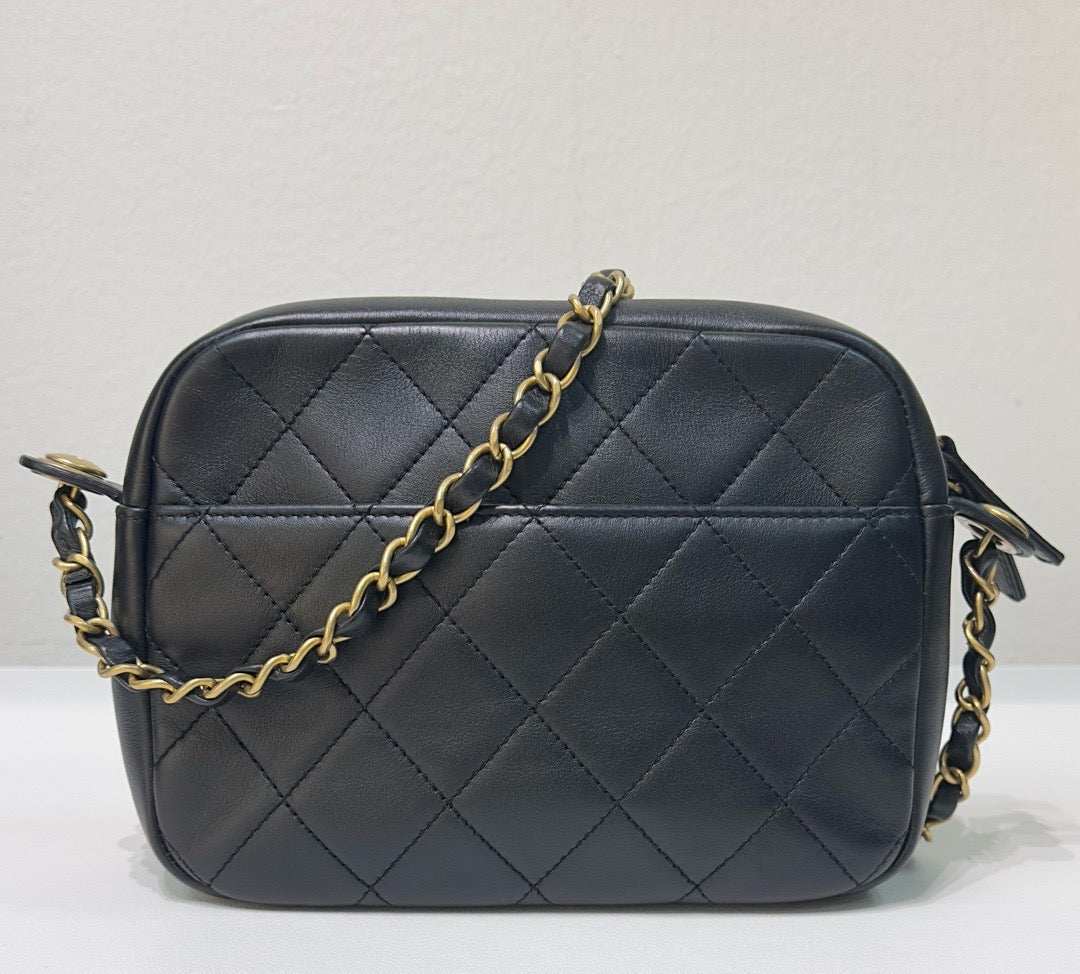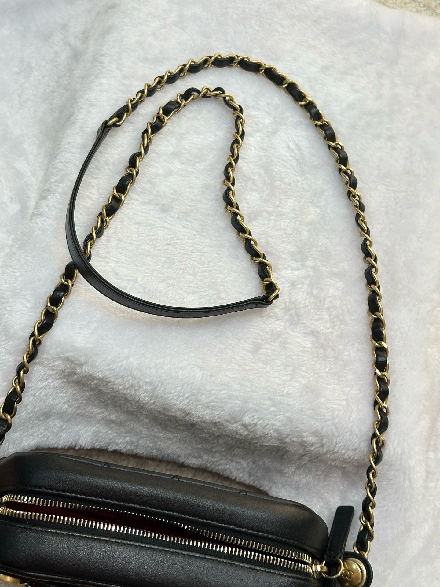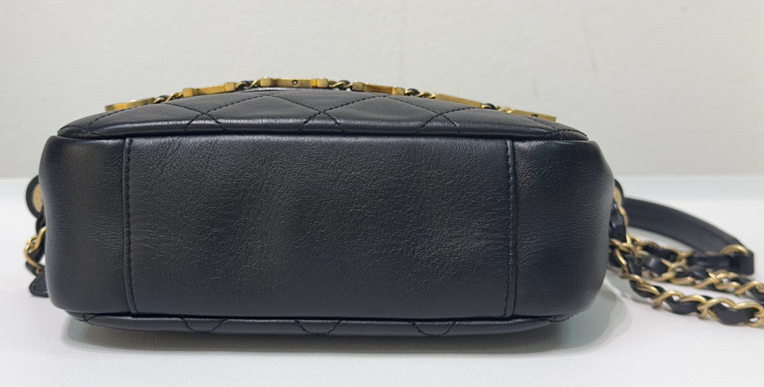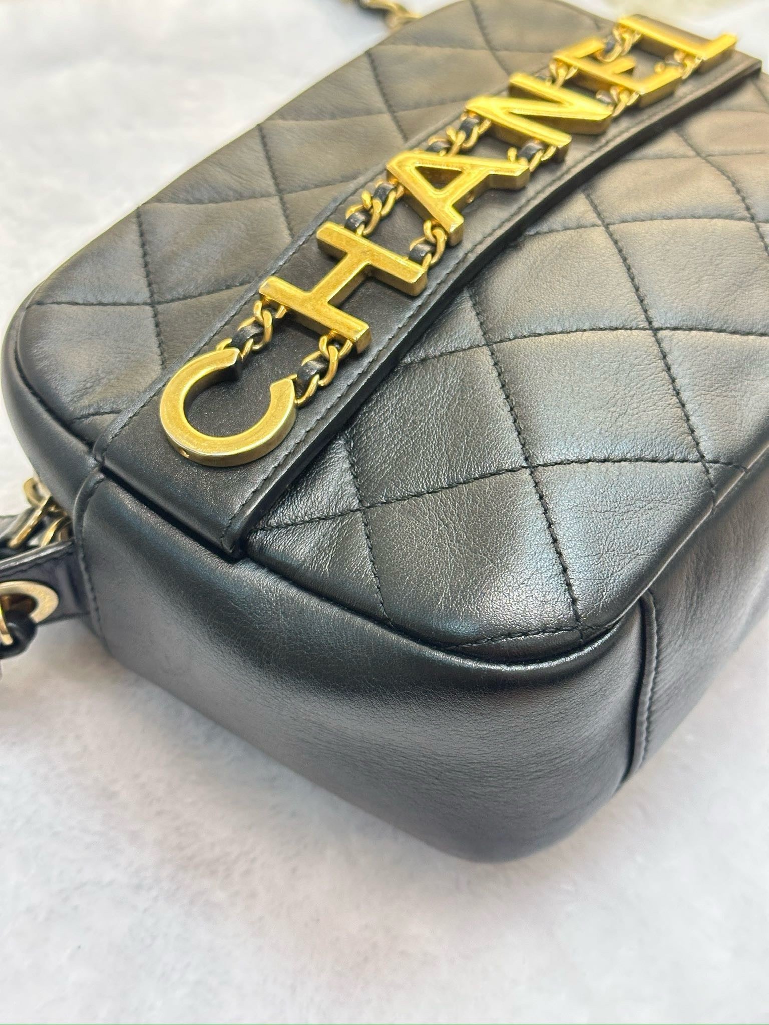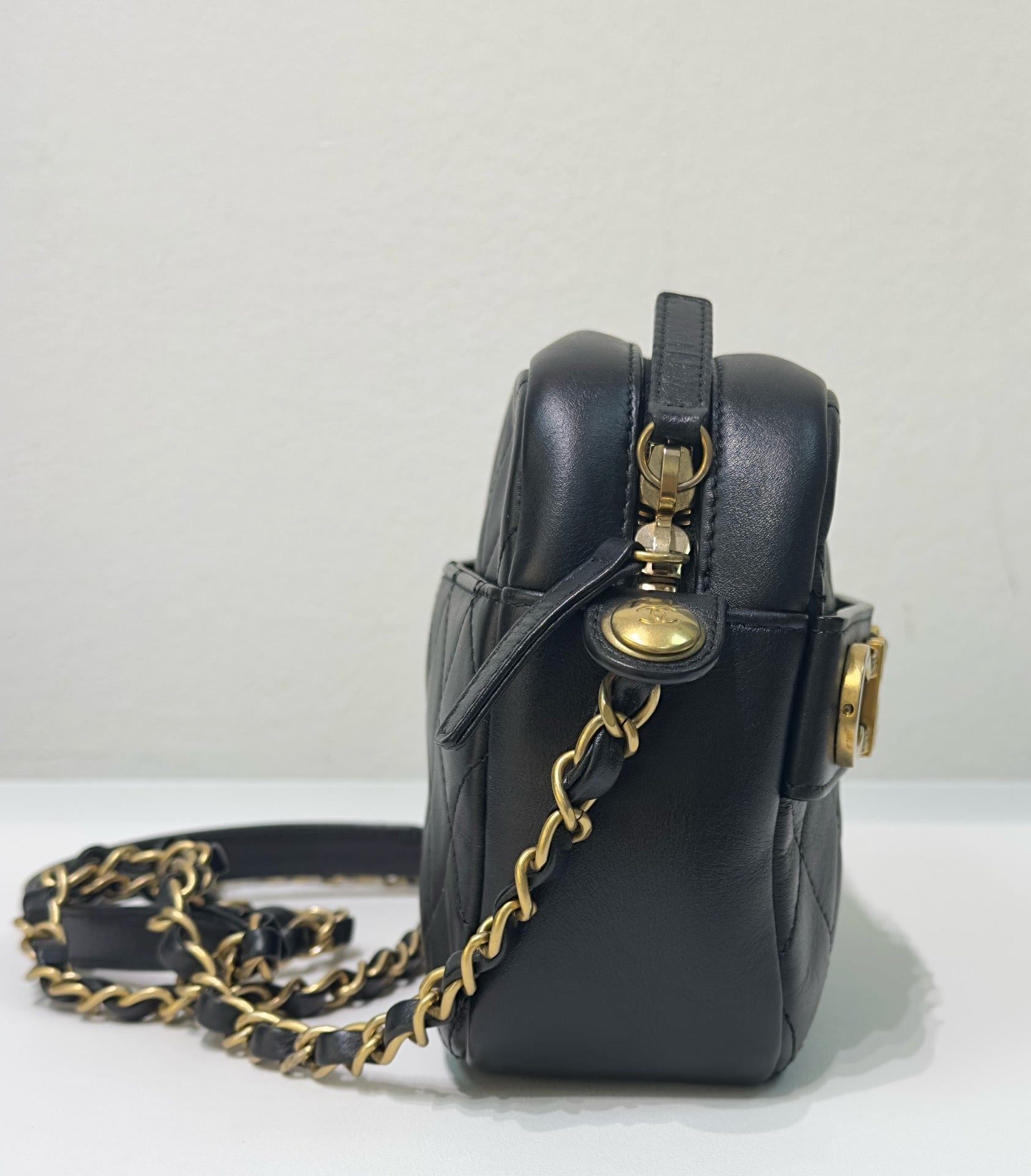 Chanel Calfskin Quilted Enchained Camera Case Bag Black