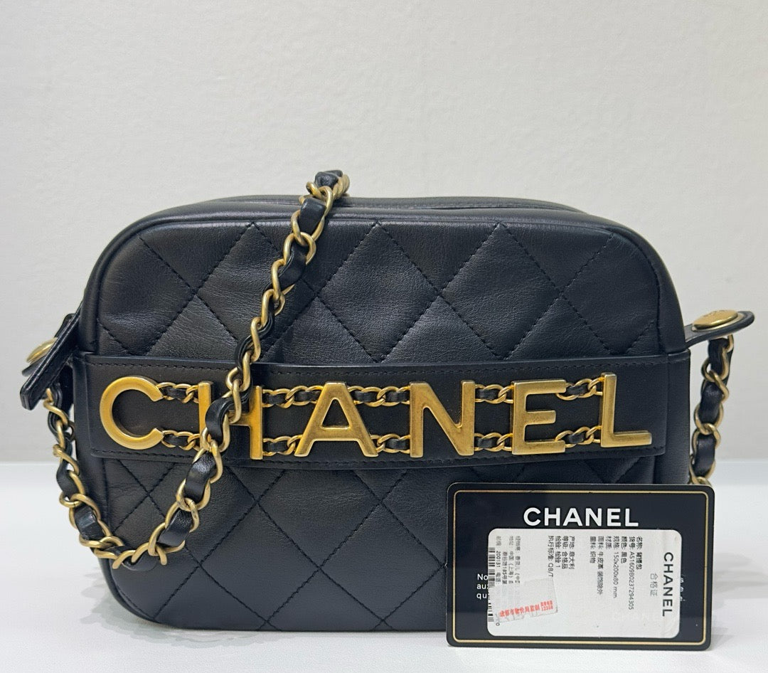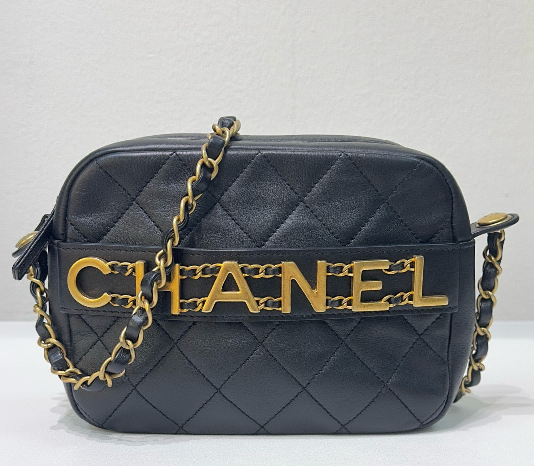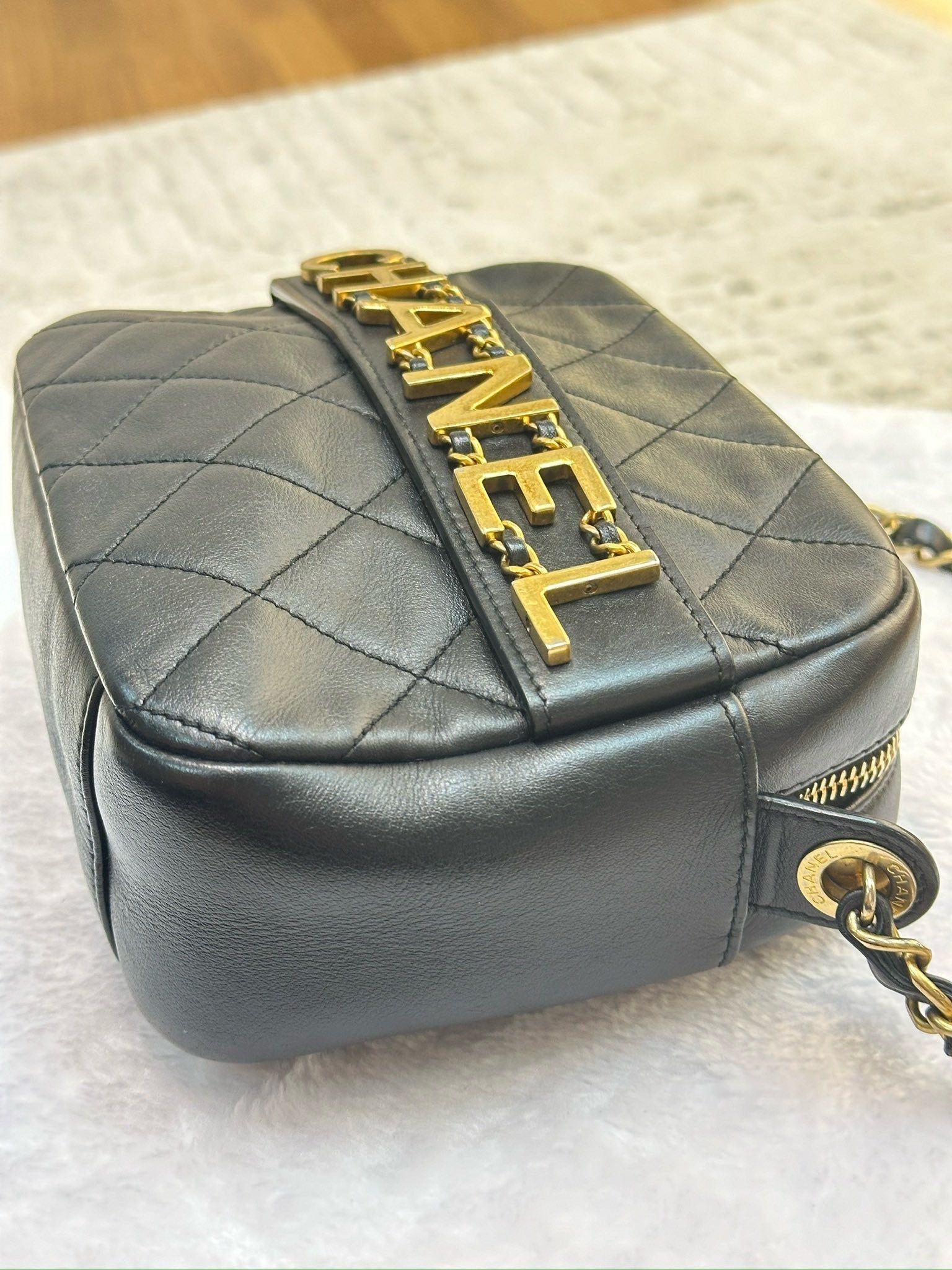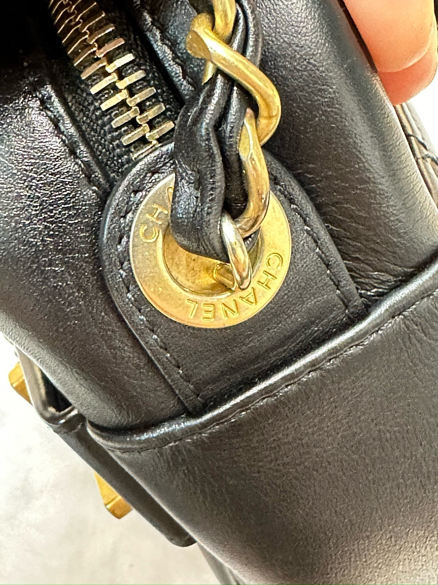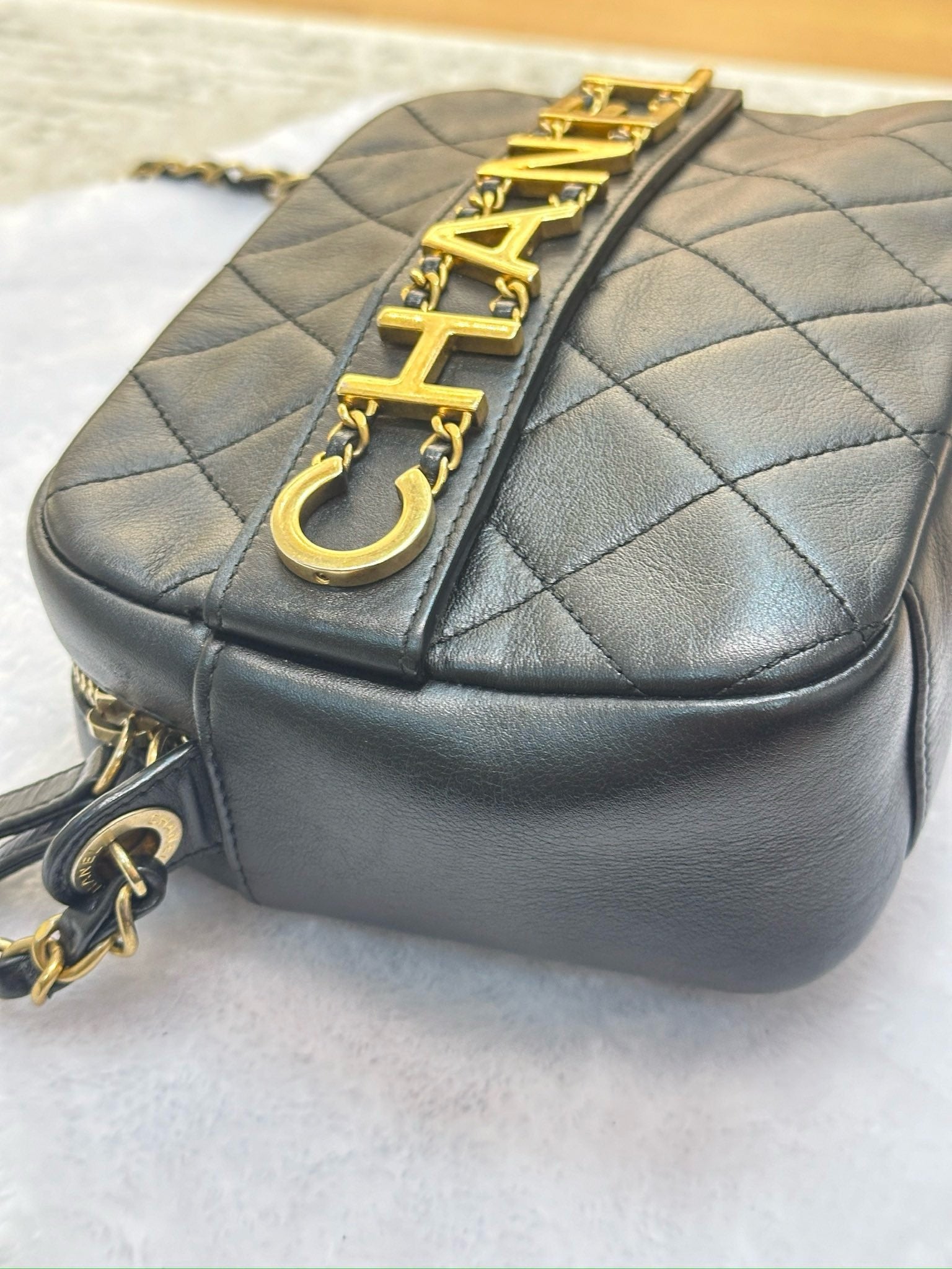 Chanel Calfskin Quilted Enchained Camera Case Bag Black