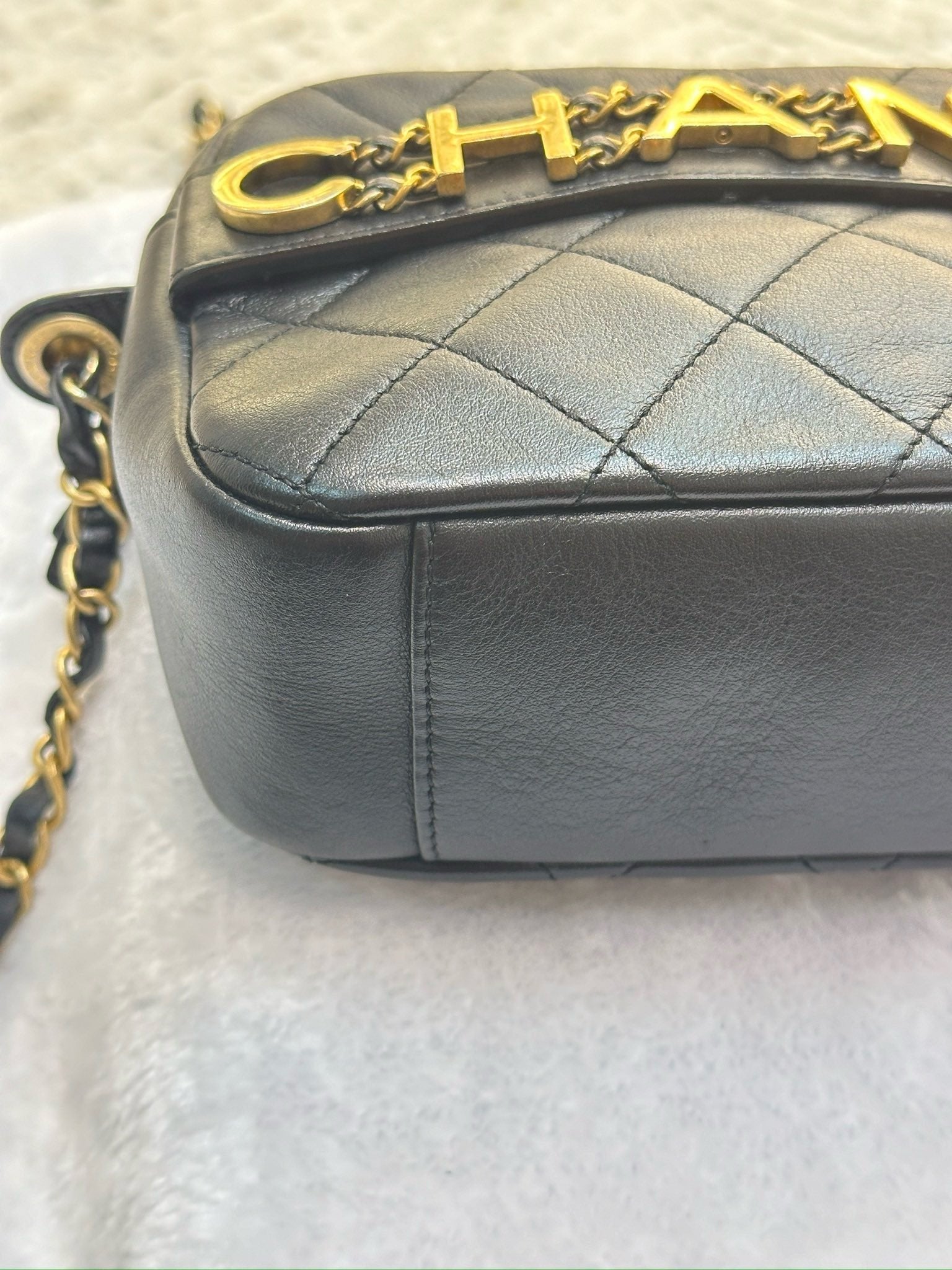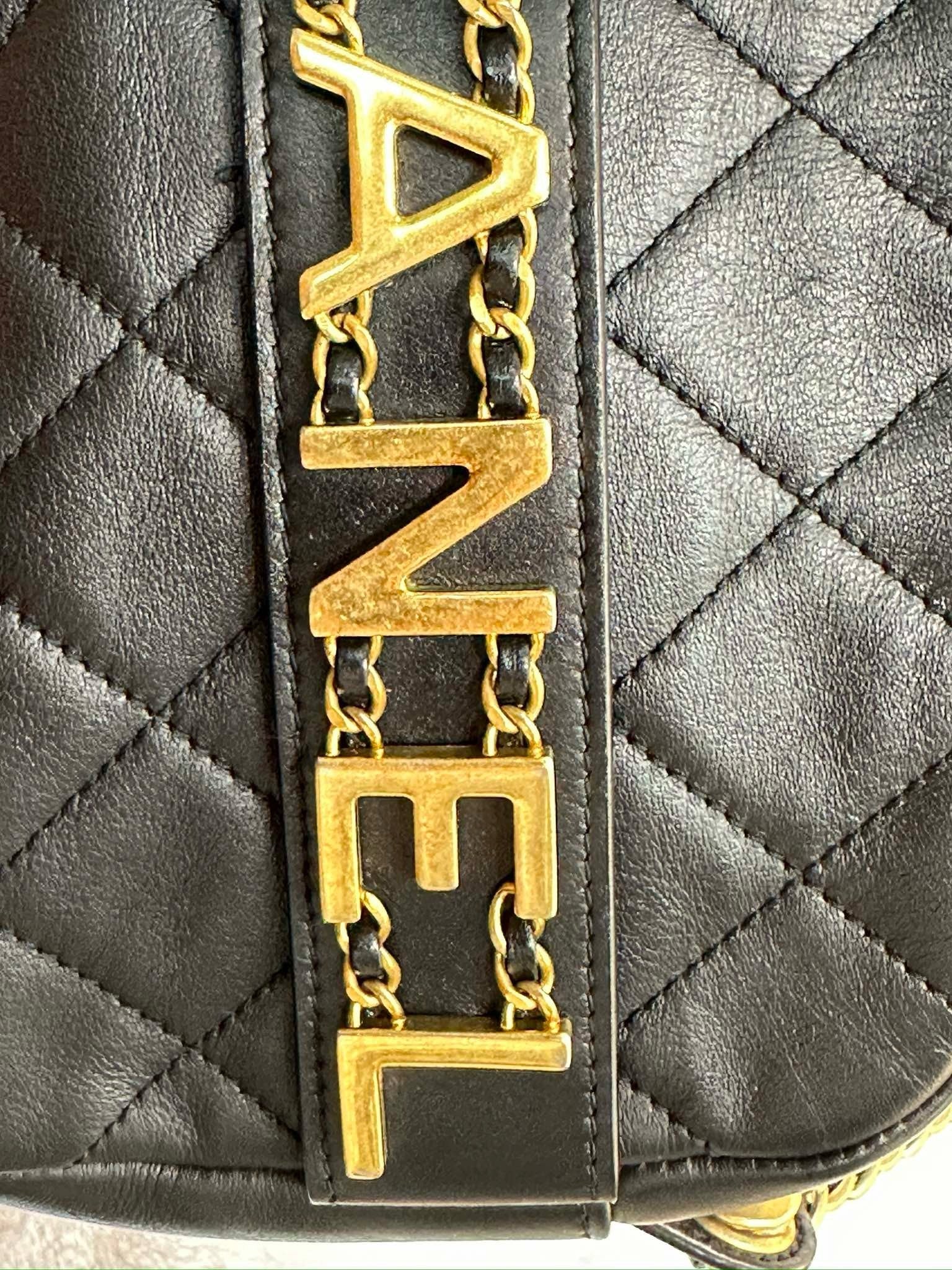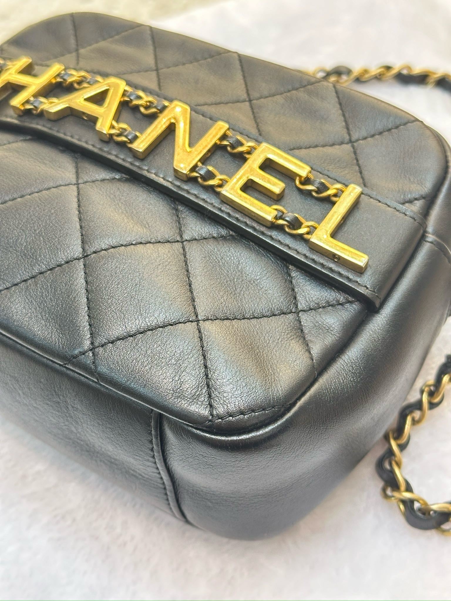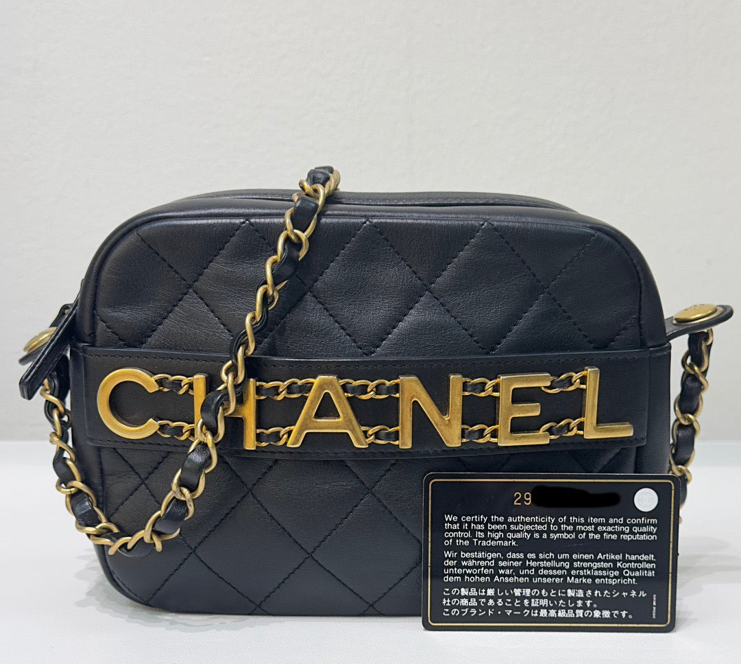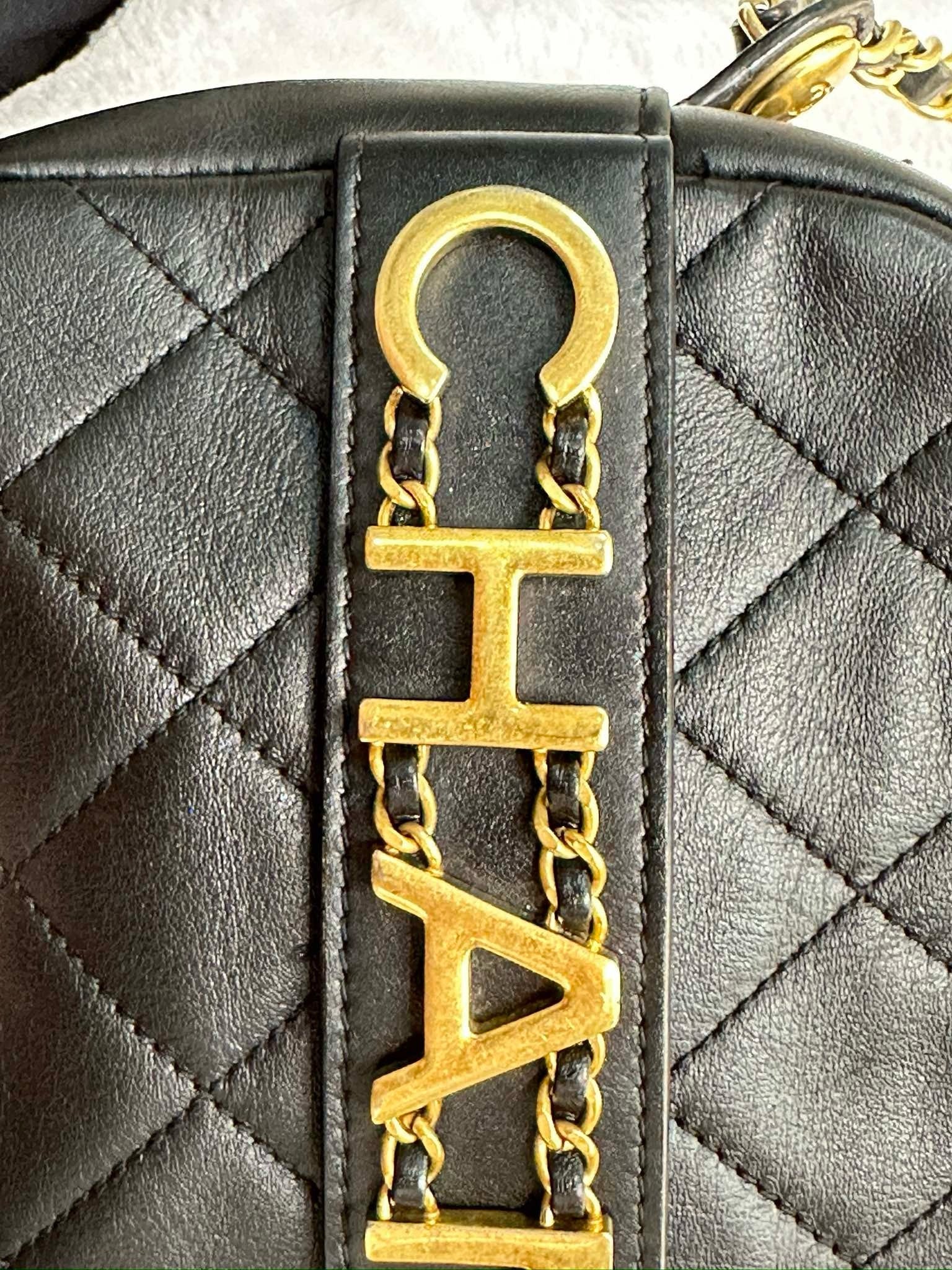 Chanel Calfskin Quilted Enchained Camera Case Bag Black