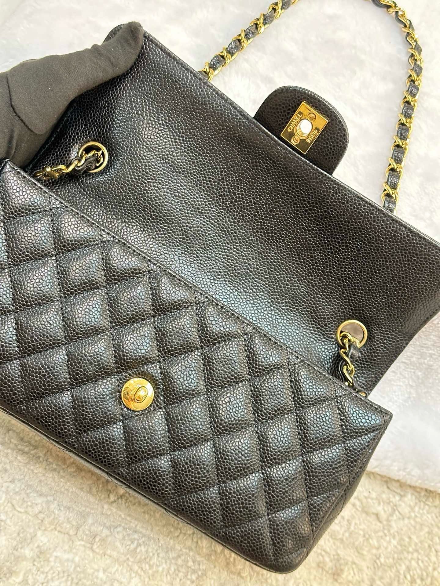 Chanel Caviar East West Flap Bag Black GHW