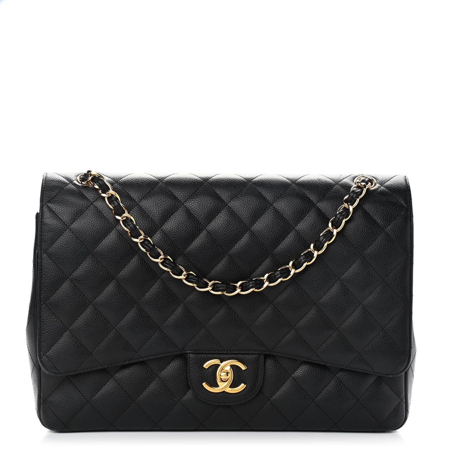 CHANEL CAVIAR QUILTED JUMBO DOUBLE FLAP BAG BLACK
