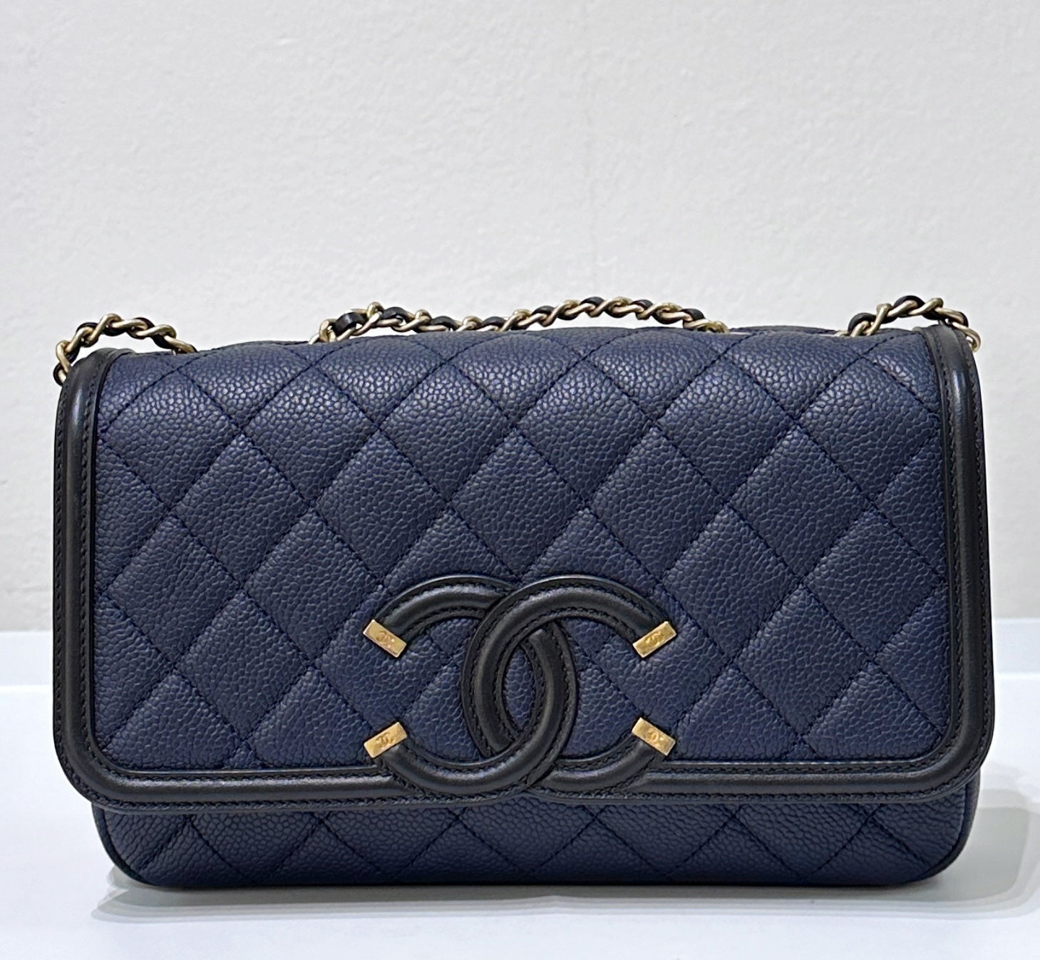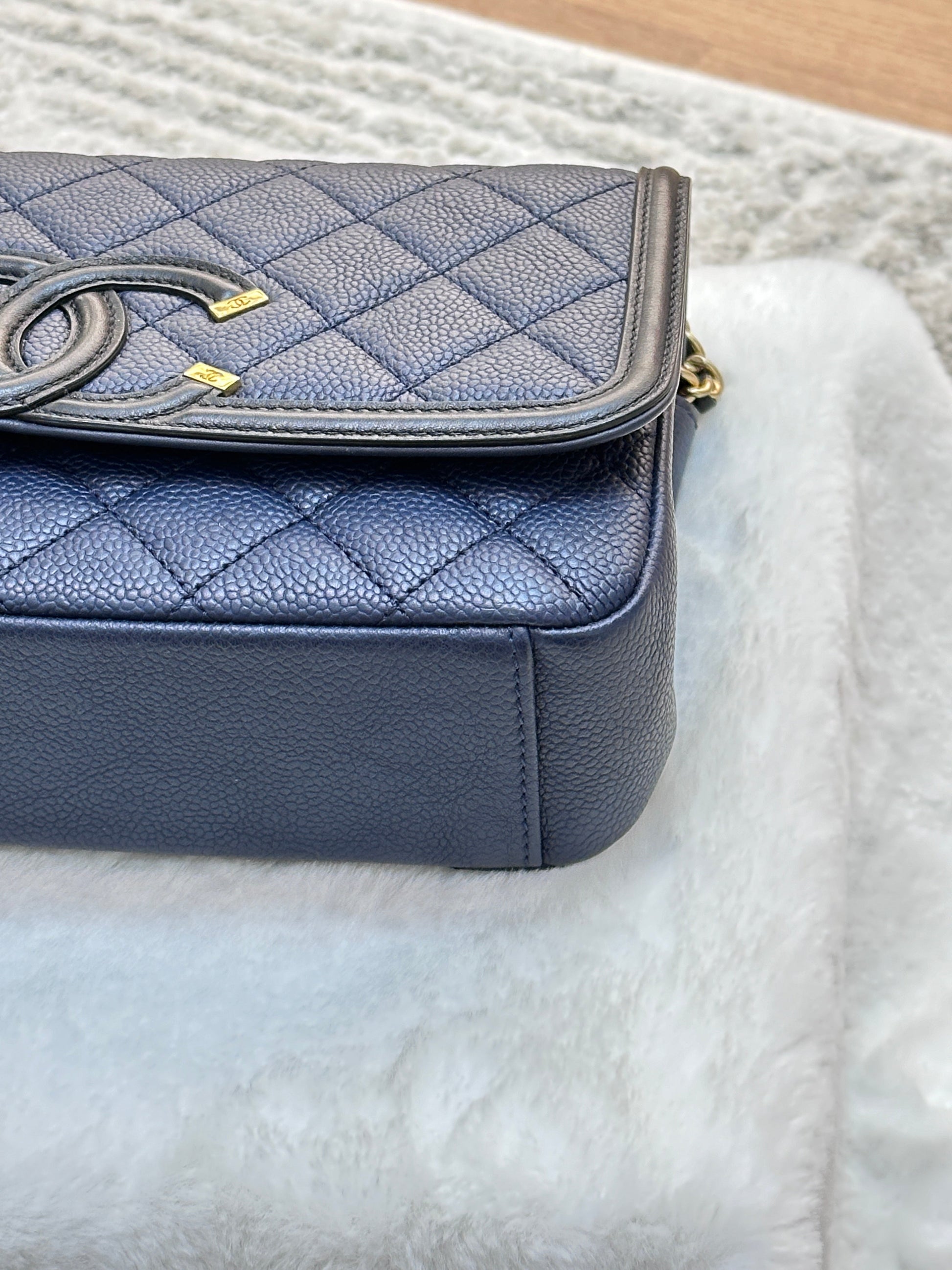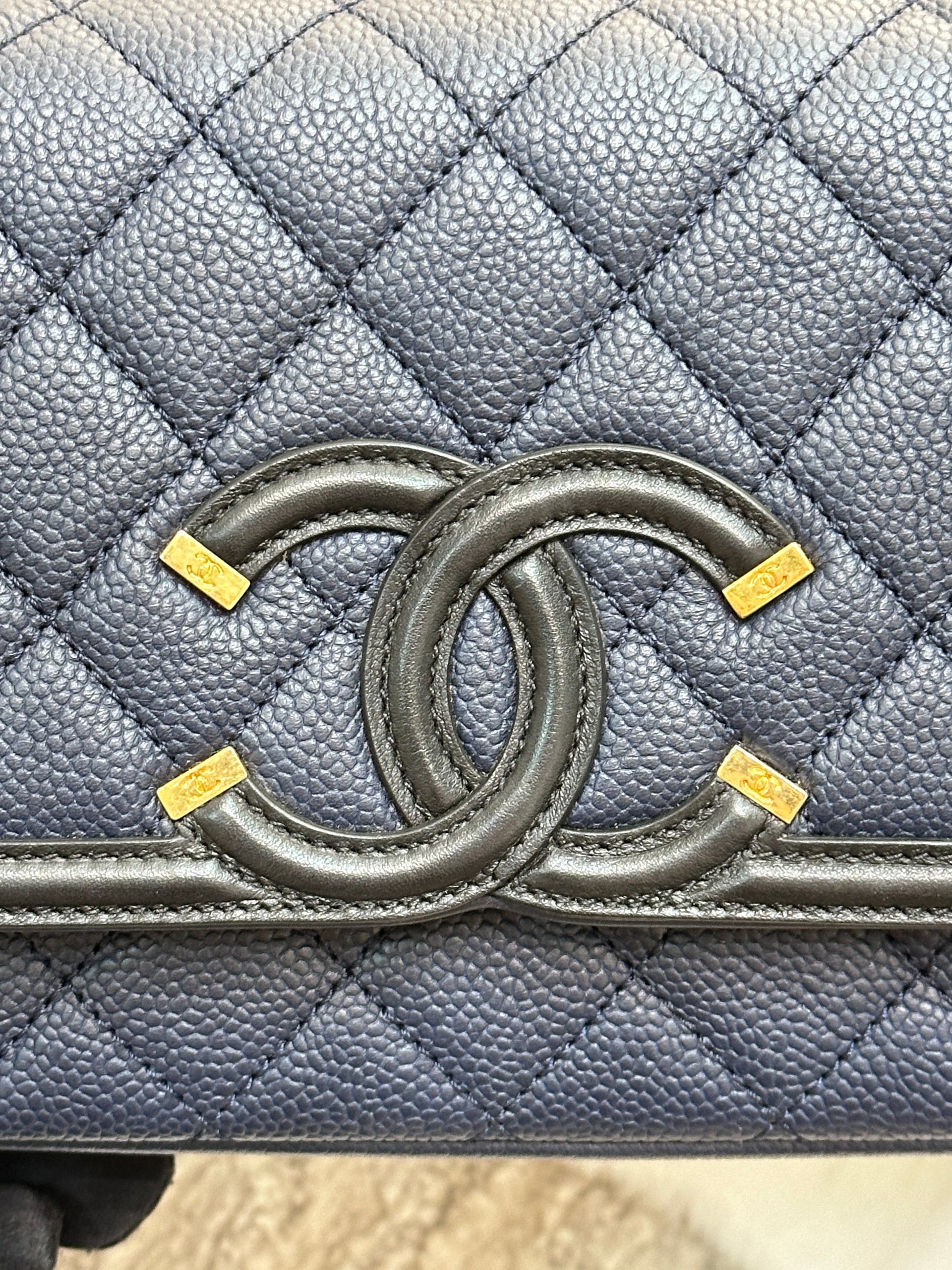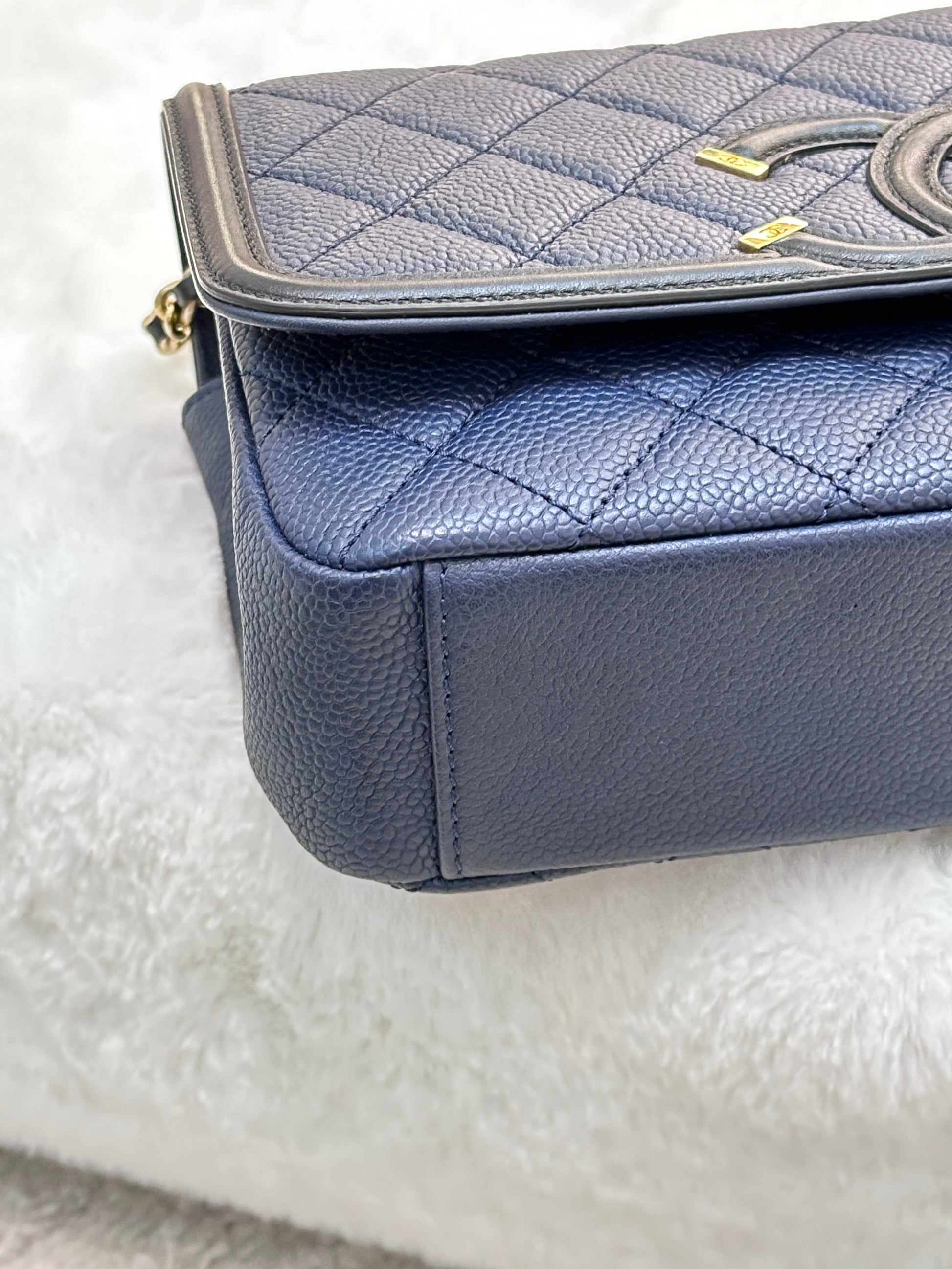 Chanel Caviar Quilted Small CC Filigree Flap Navy Black