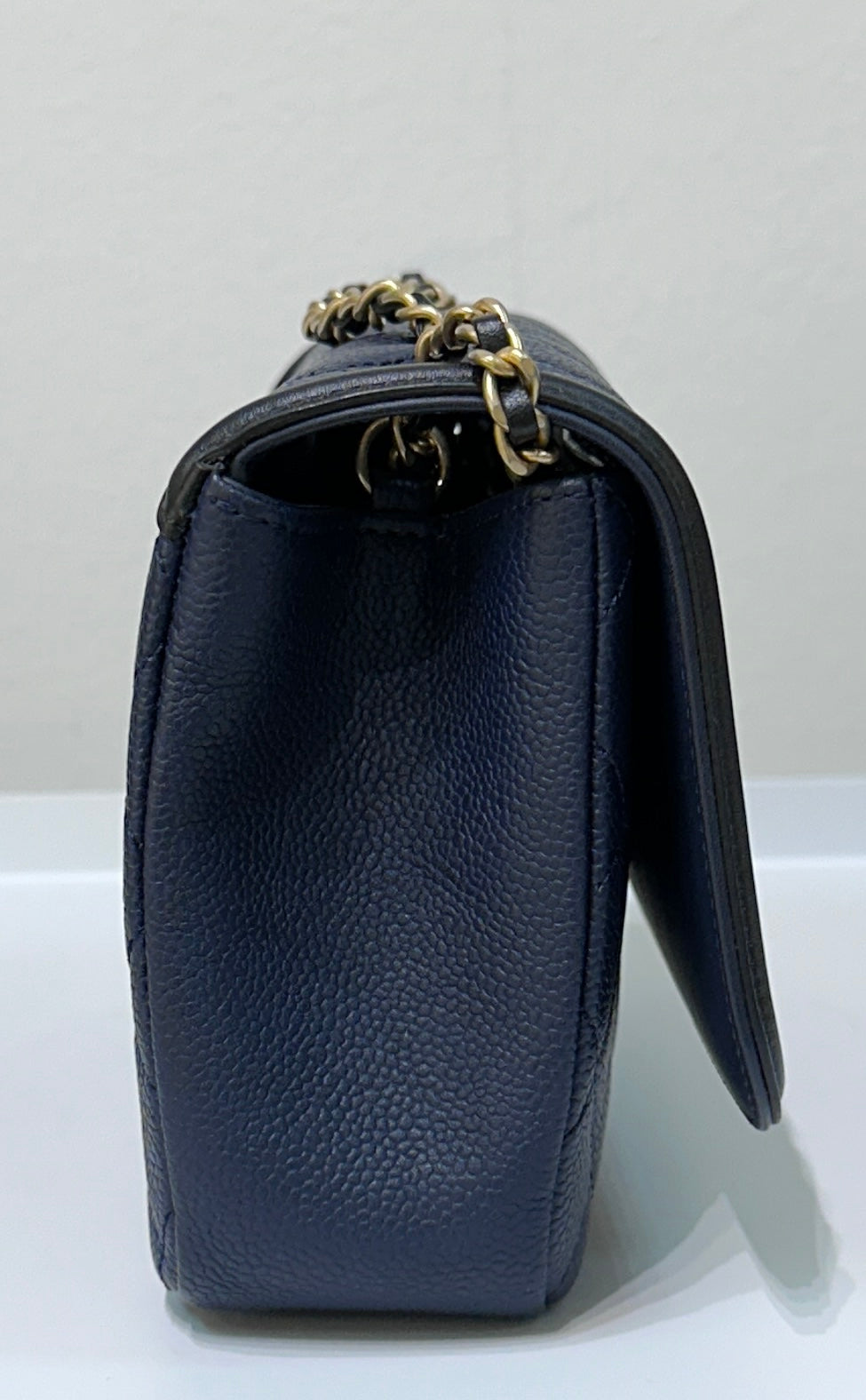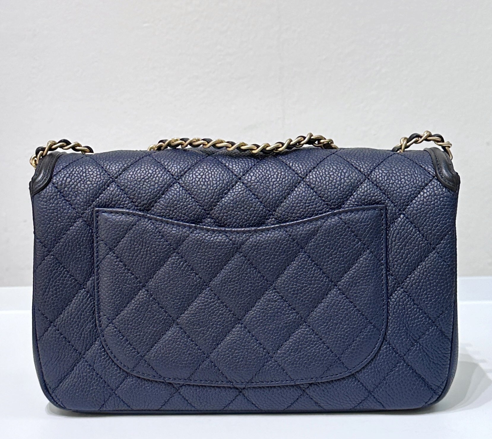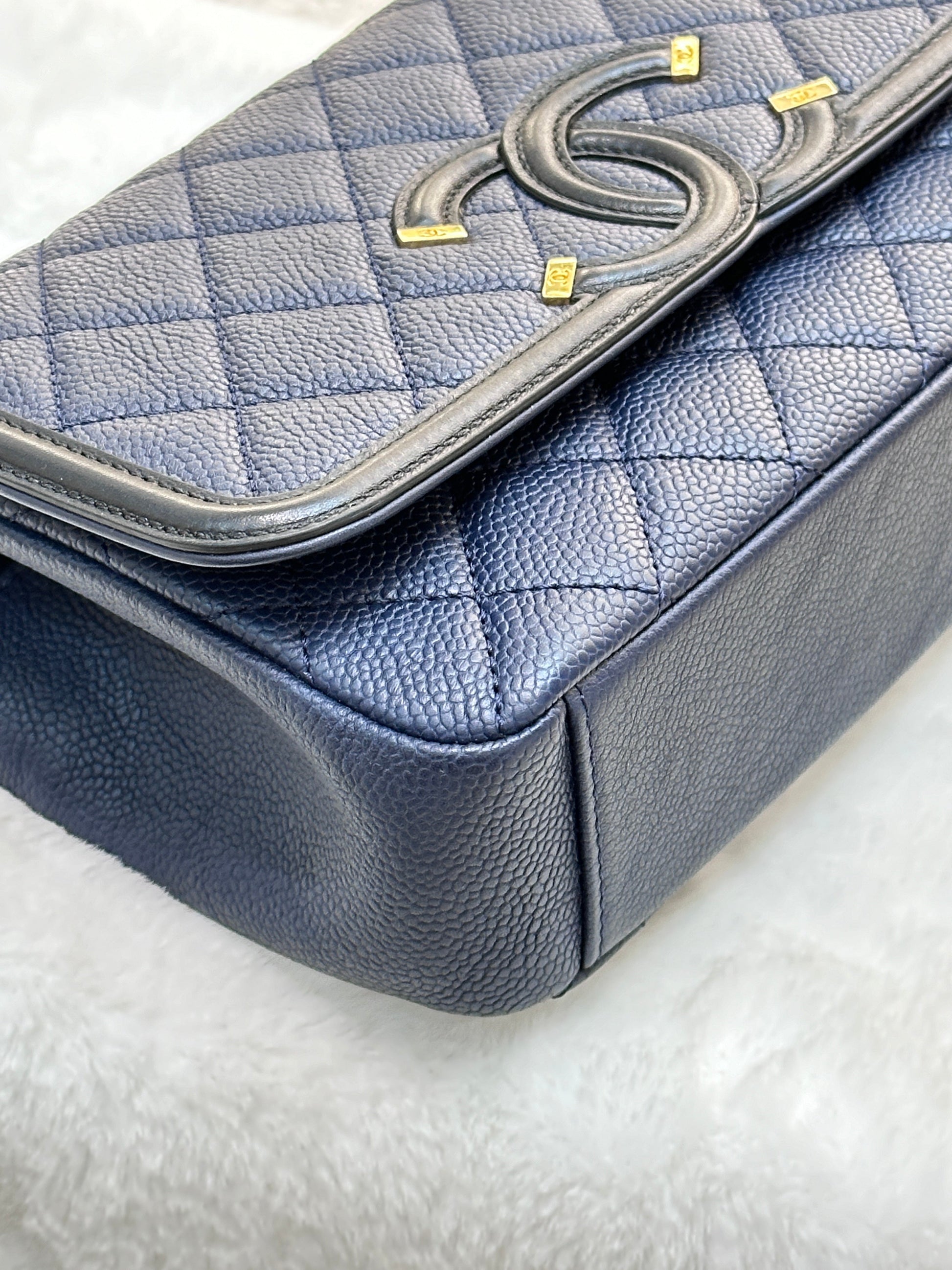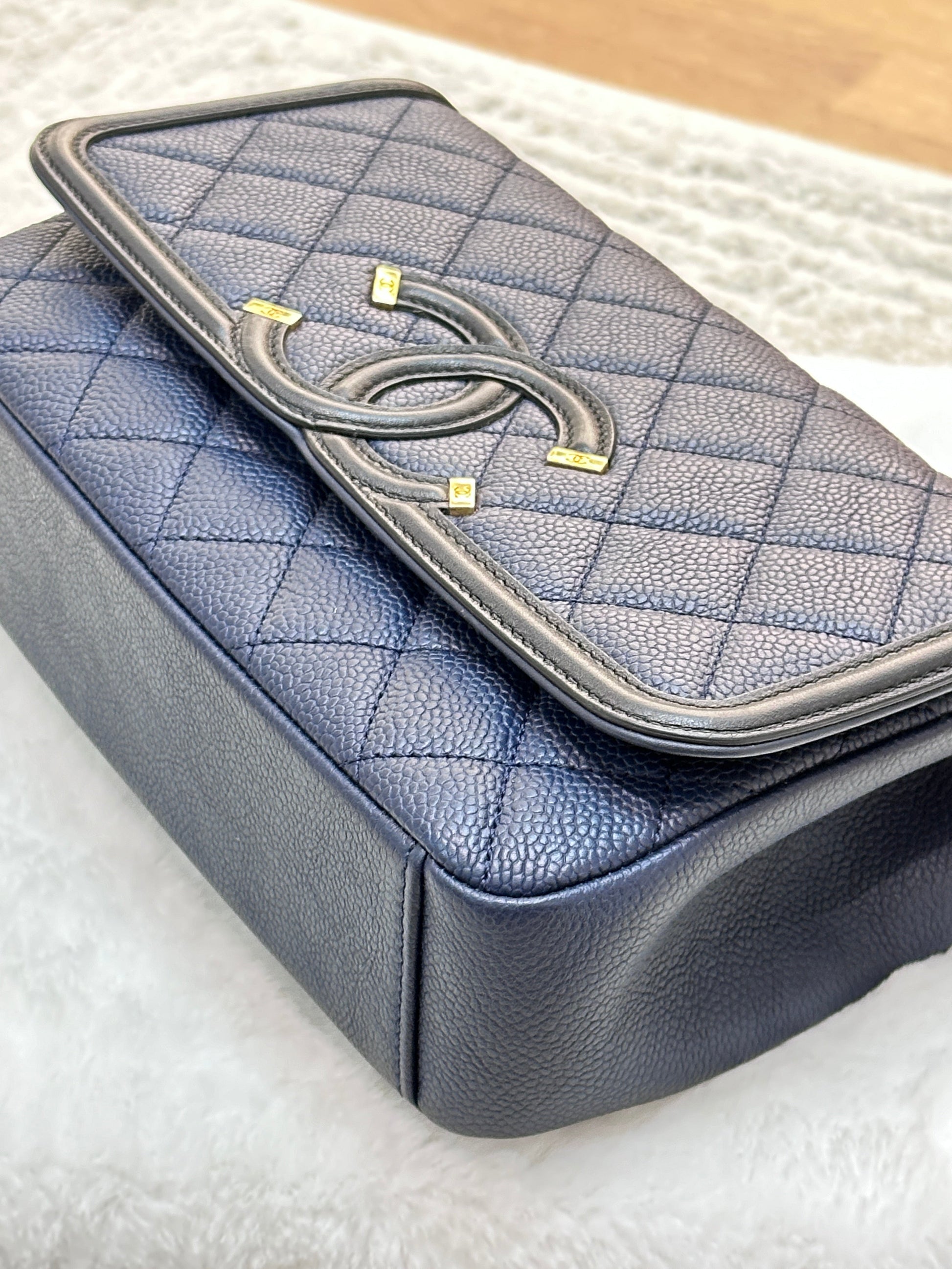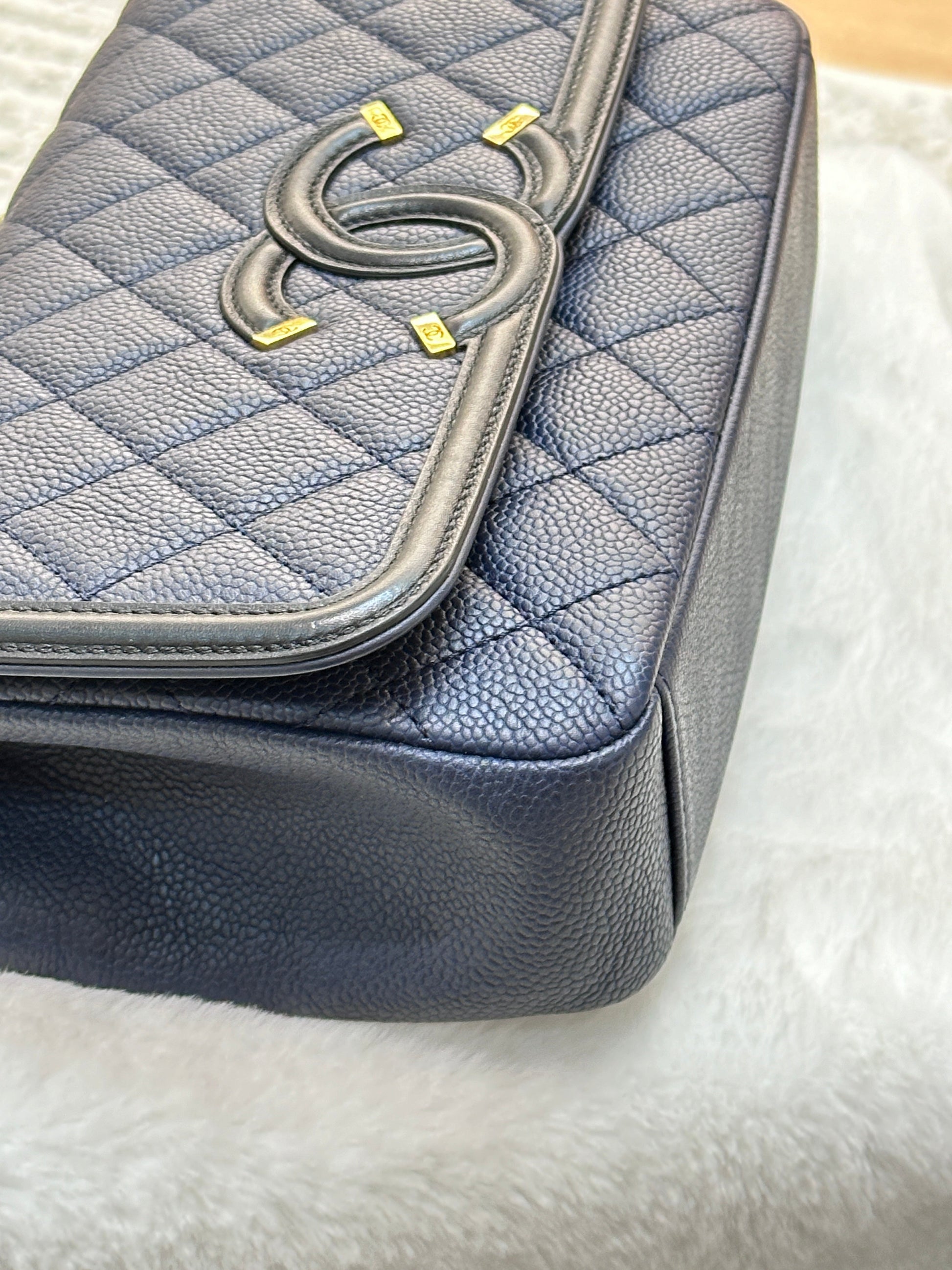 Chanel Caviar Quilted Small CC Filigree Flap Navy Black