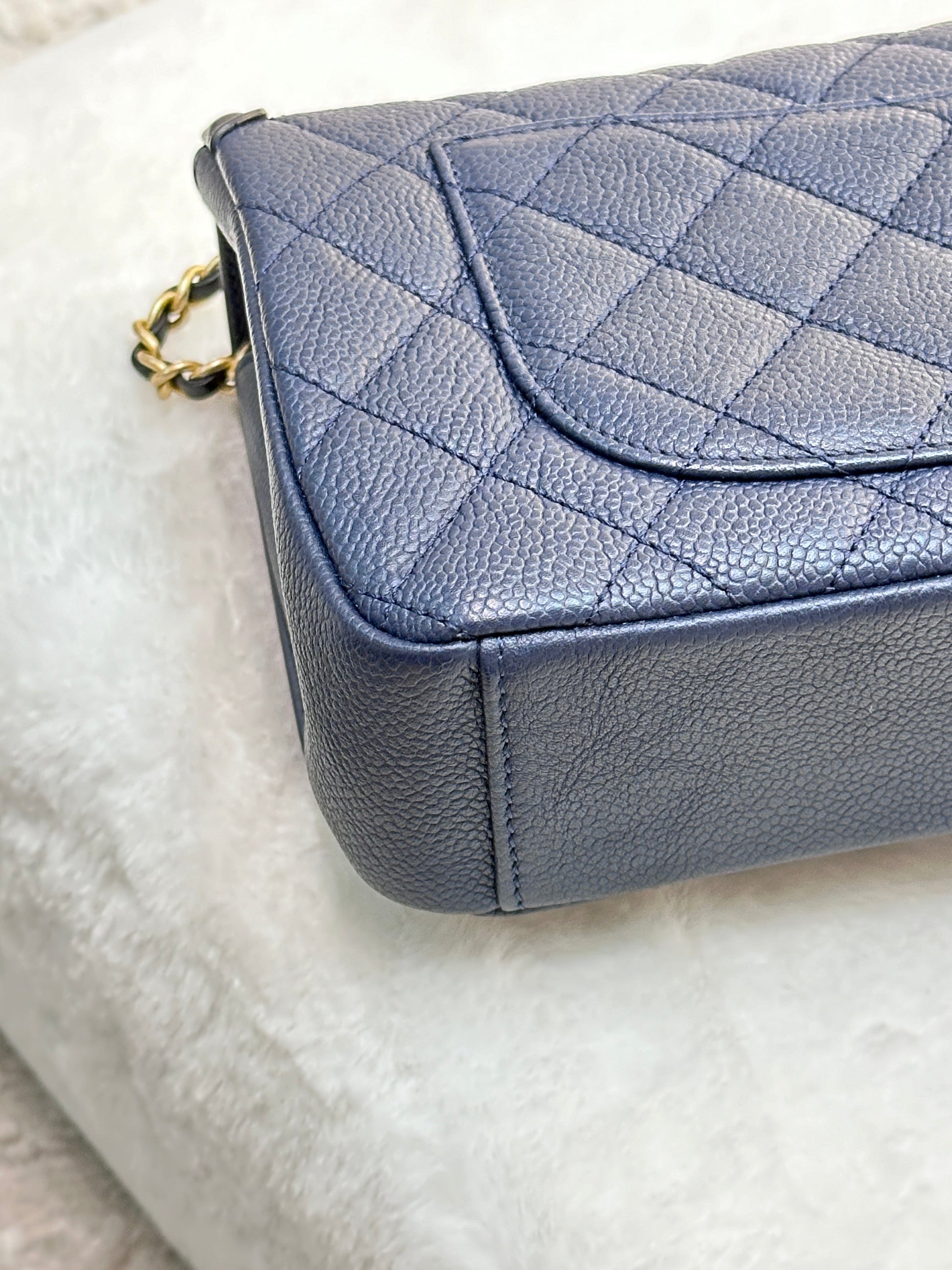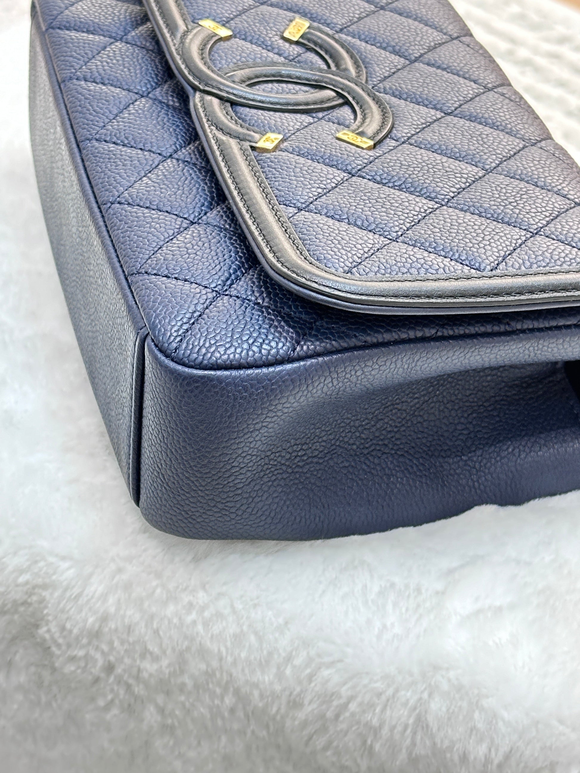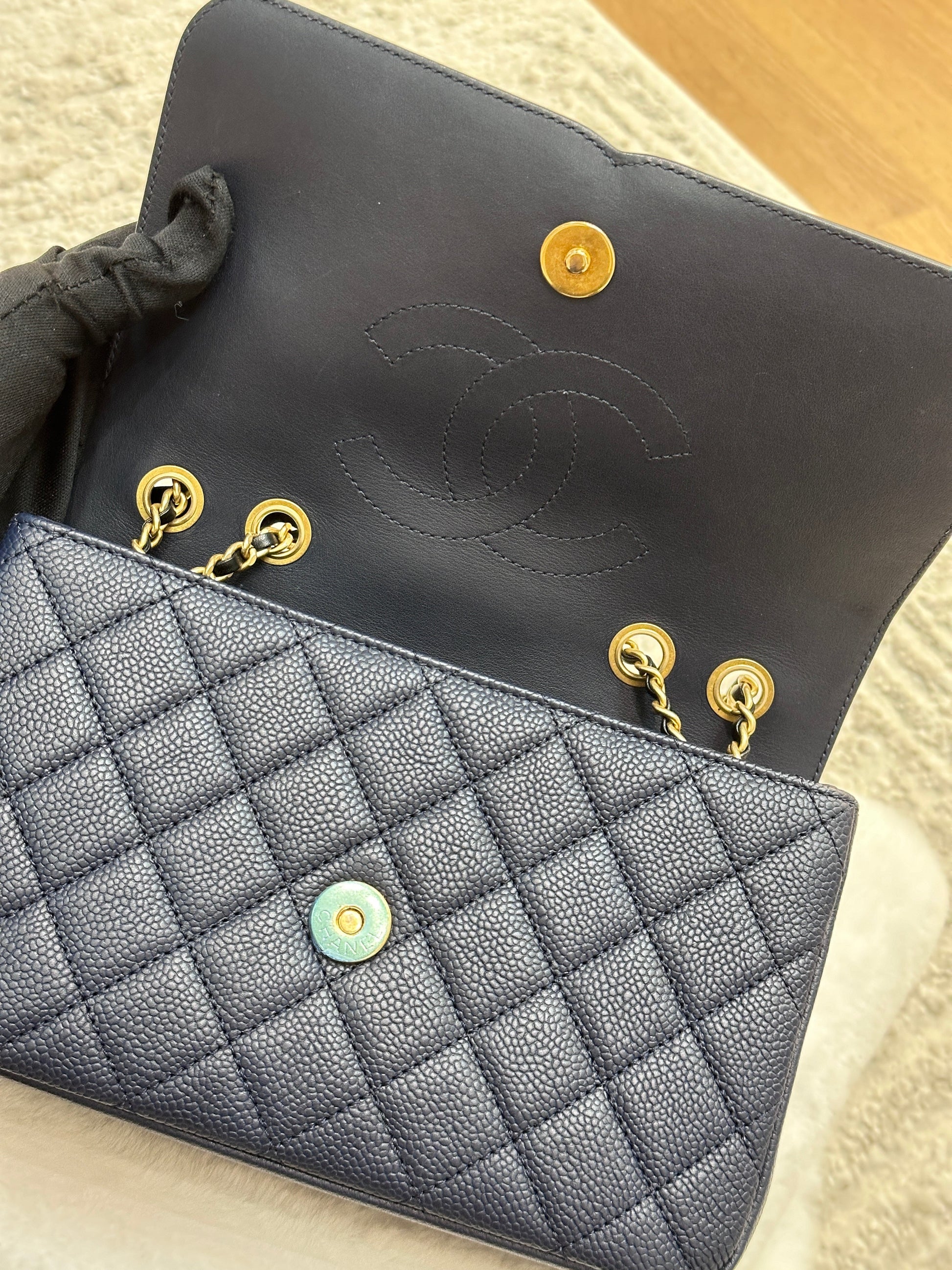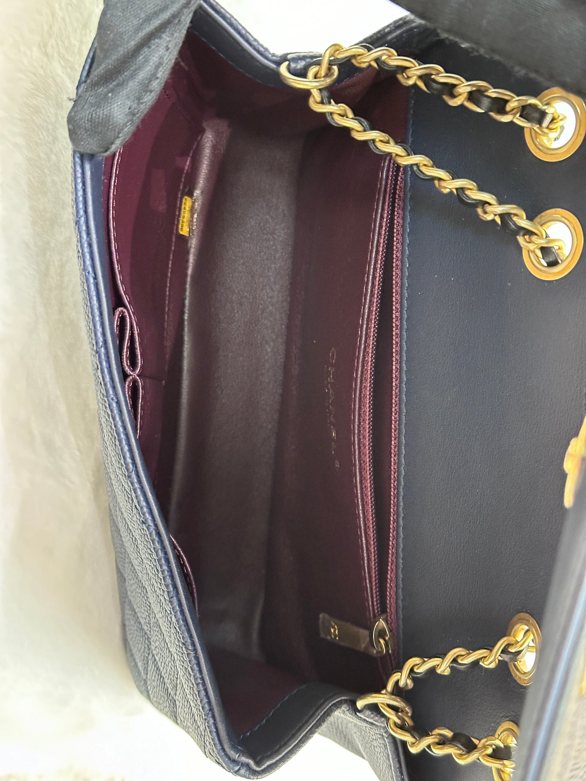 Chanel Caviar Quilted Small CC Filigree Flap Navy Black