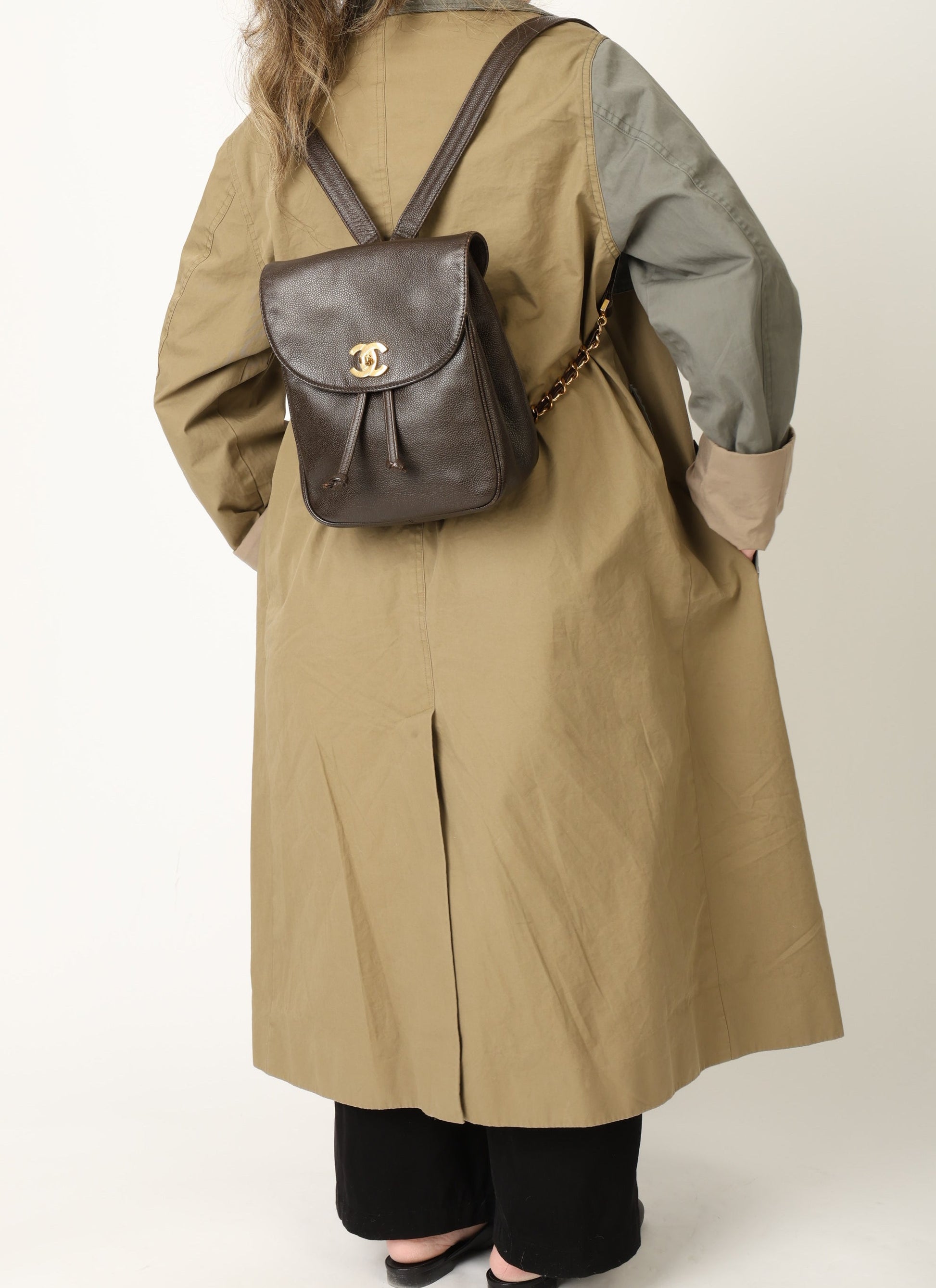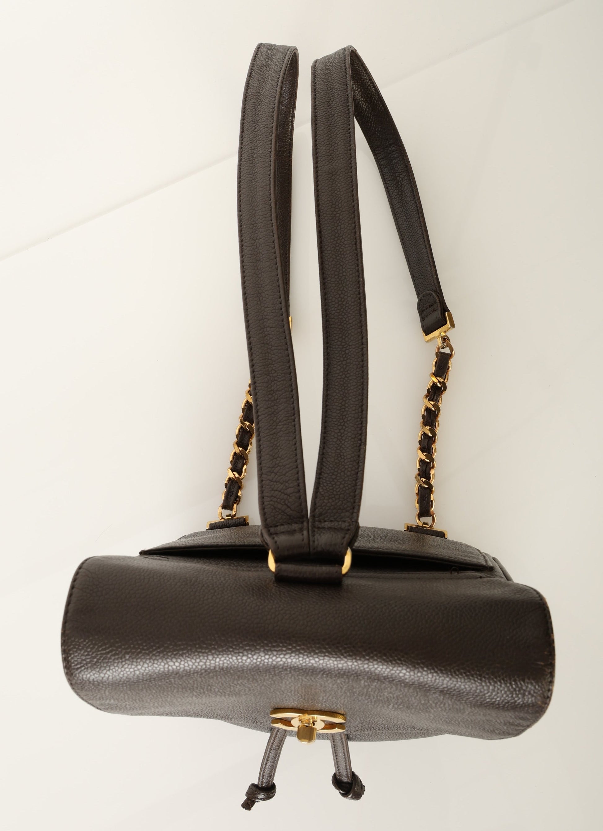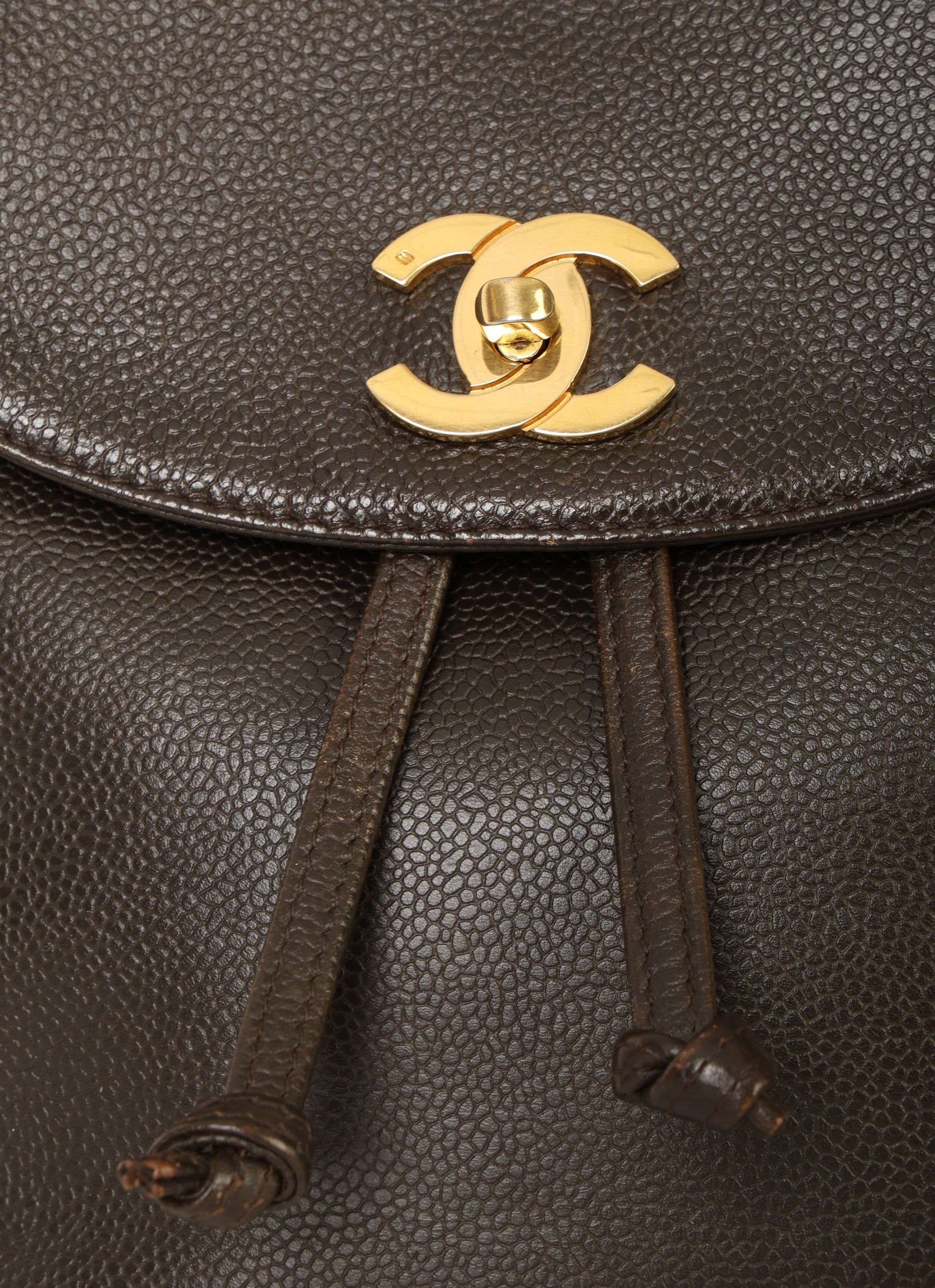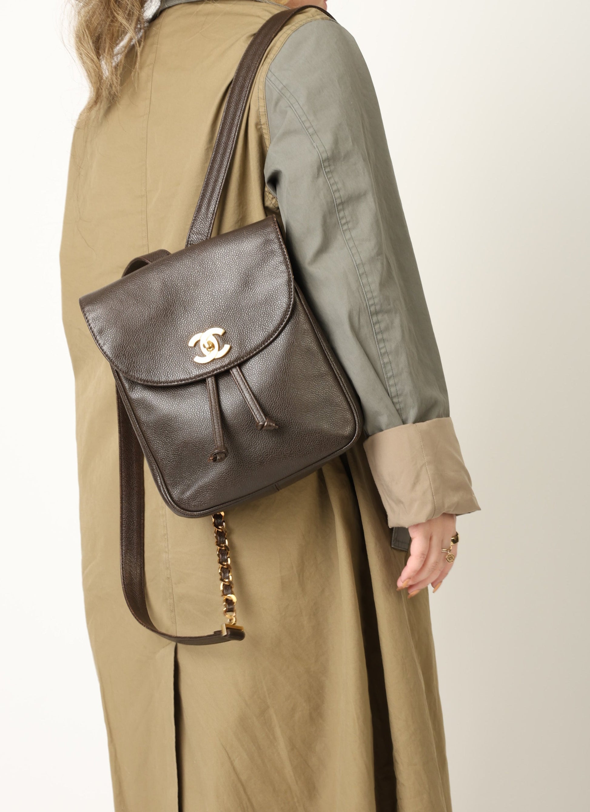 Dropping in the shop is a stunning Chanel Caviar Turnlock Backpack in a deep brown with 24k gold plated hardware.?ÿPerfect for travel or festival season! Features a drawstring closure and CC turnlock for added security. You can fit?ÿyour iPad Mini/Kindle and the rest of your daily essentials.?ÿ