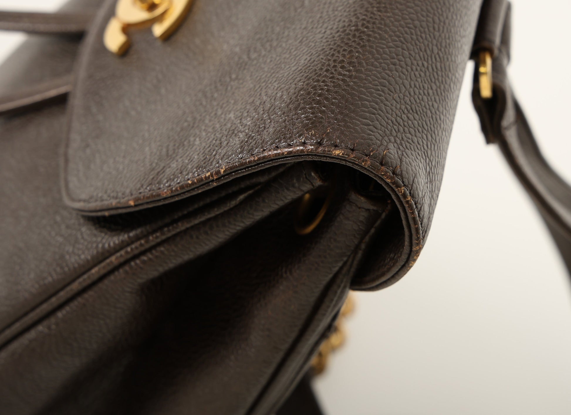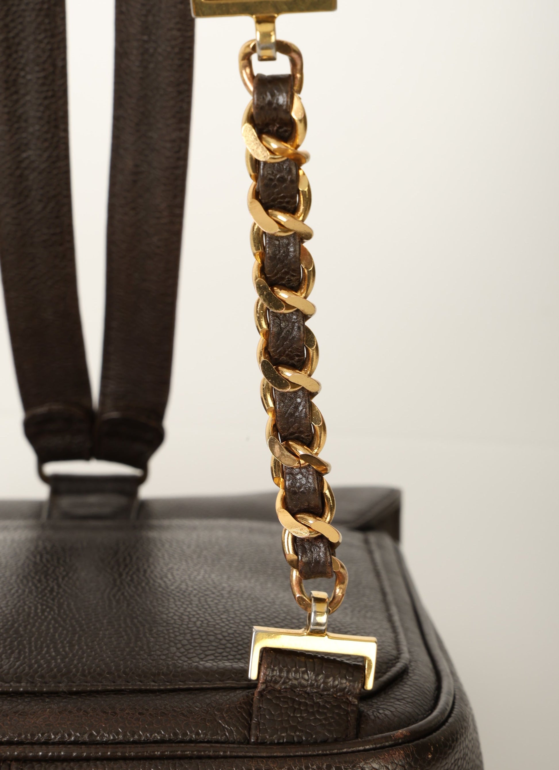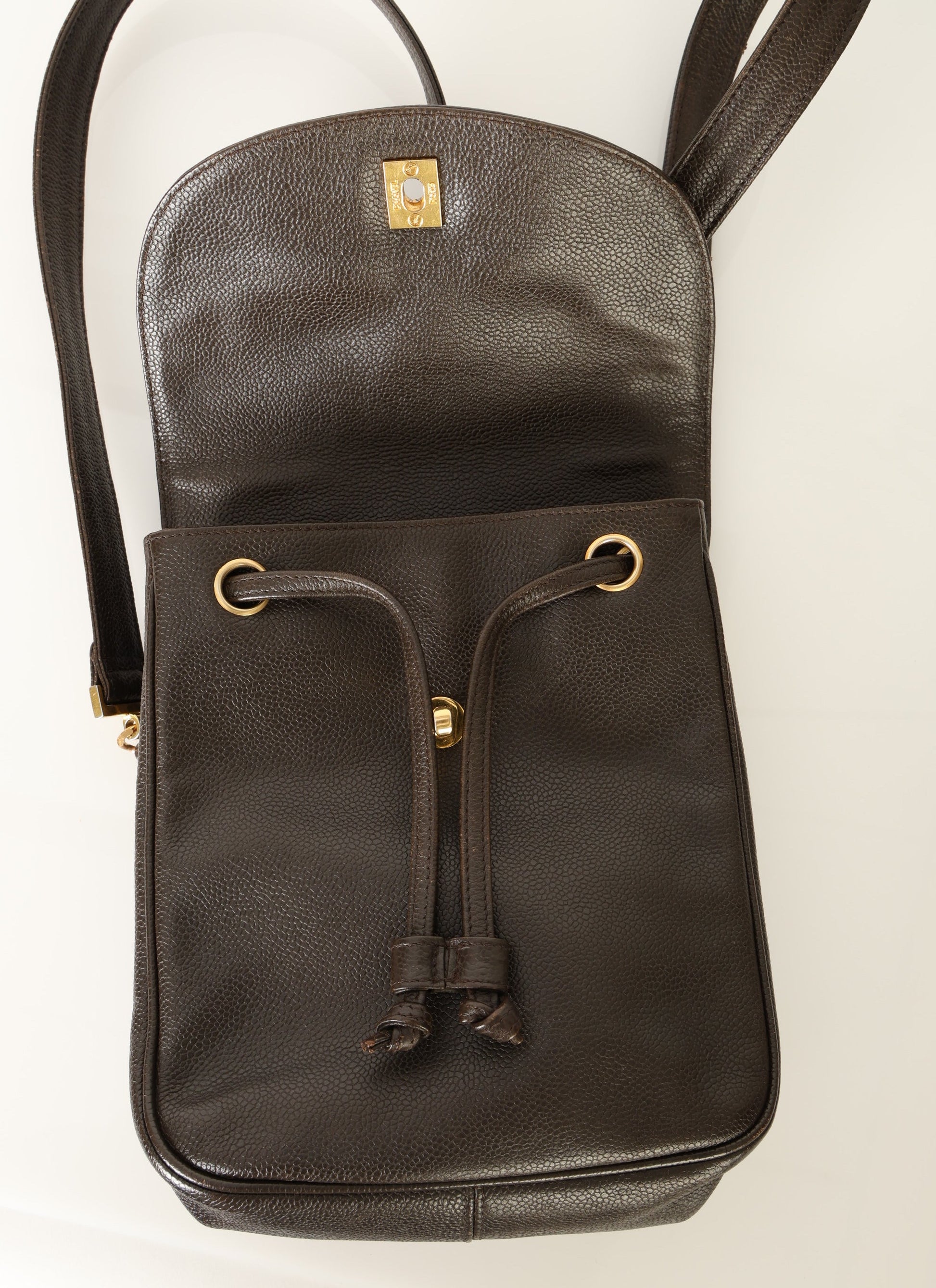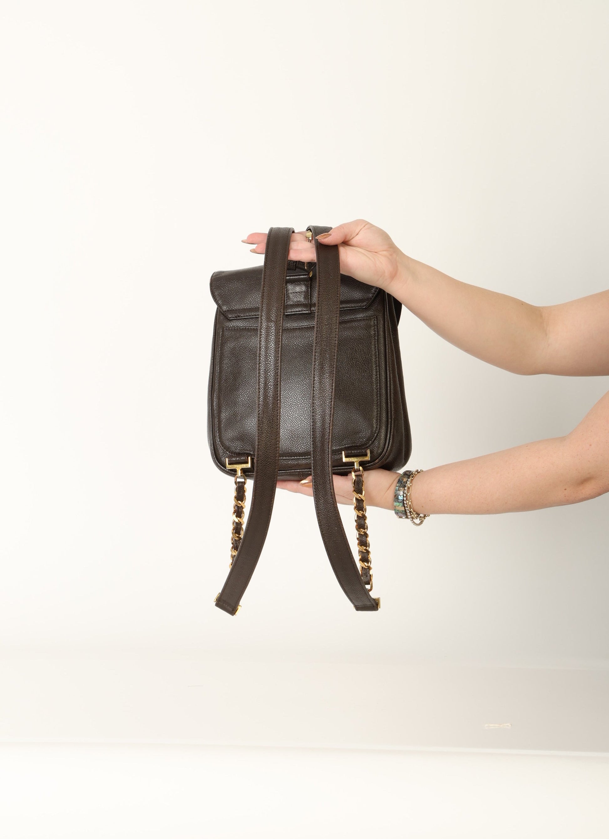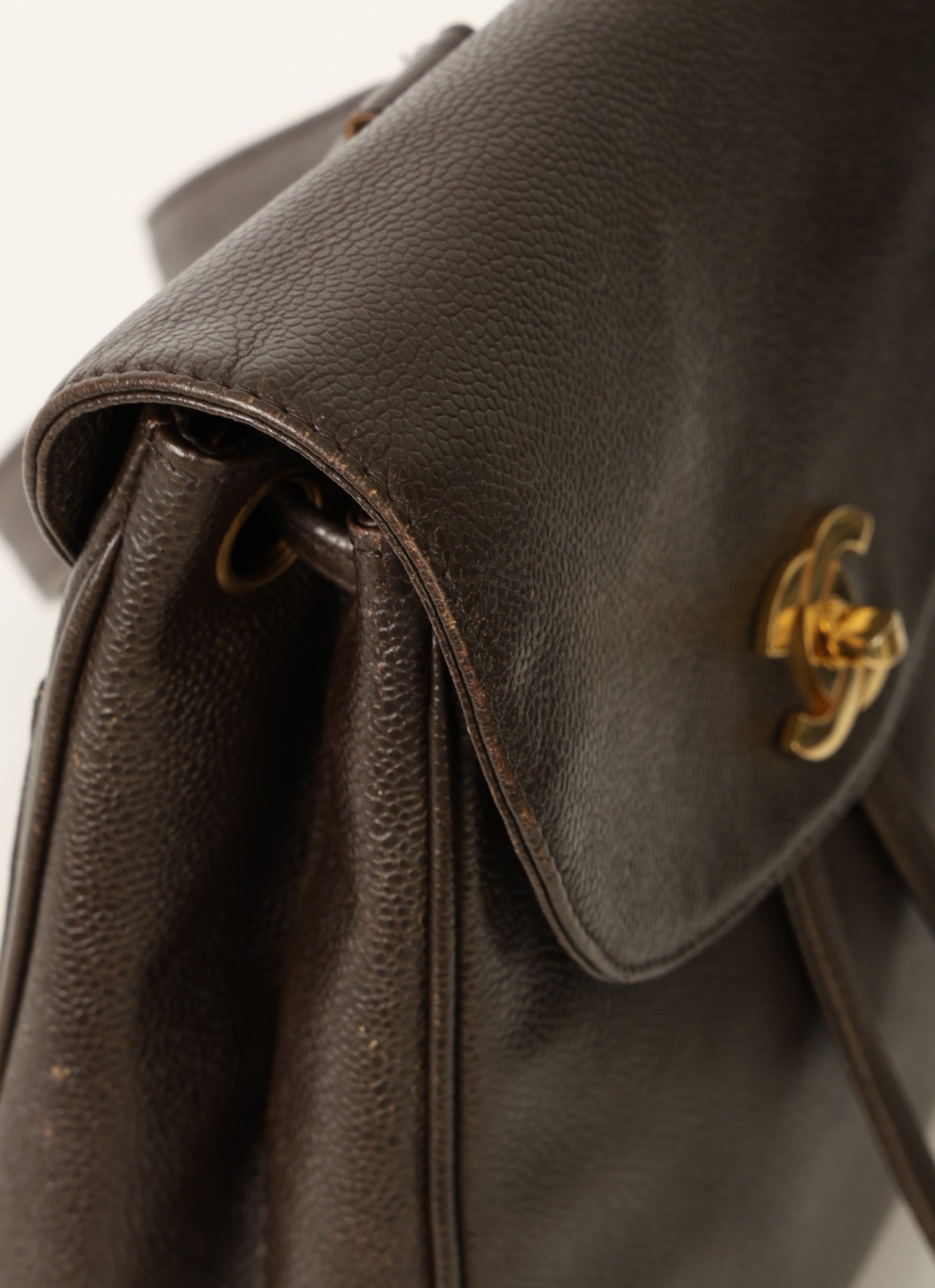 Dropping in the shop is a stunning Chanel Caviar Turnlock Backpack in a deep brown with 24k gold plated hardware.?ÿPerfect for travel or festival season! Features a drawstring closure and CC turnlock for added security. You can fit?ÿyour iPad Mini/Kindle and the rest of your daily essentials.?ÿ