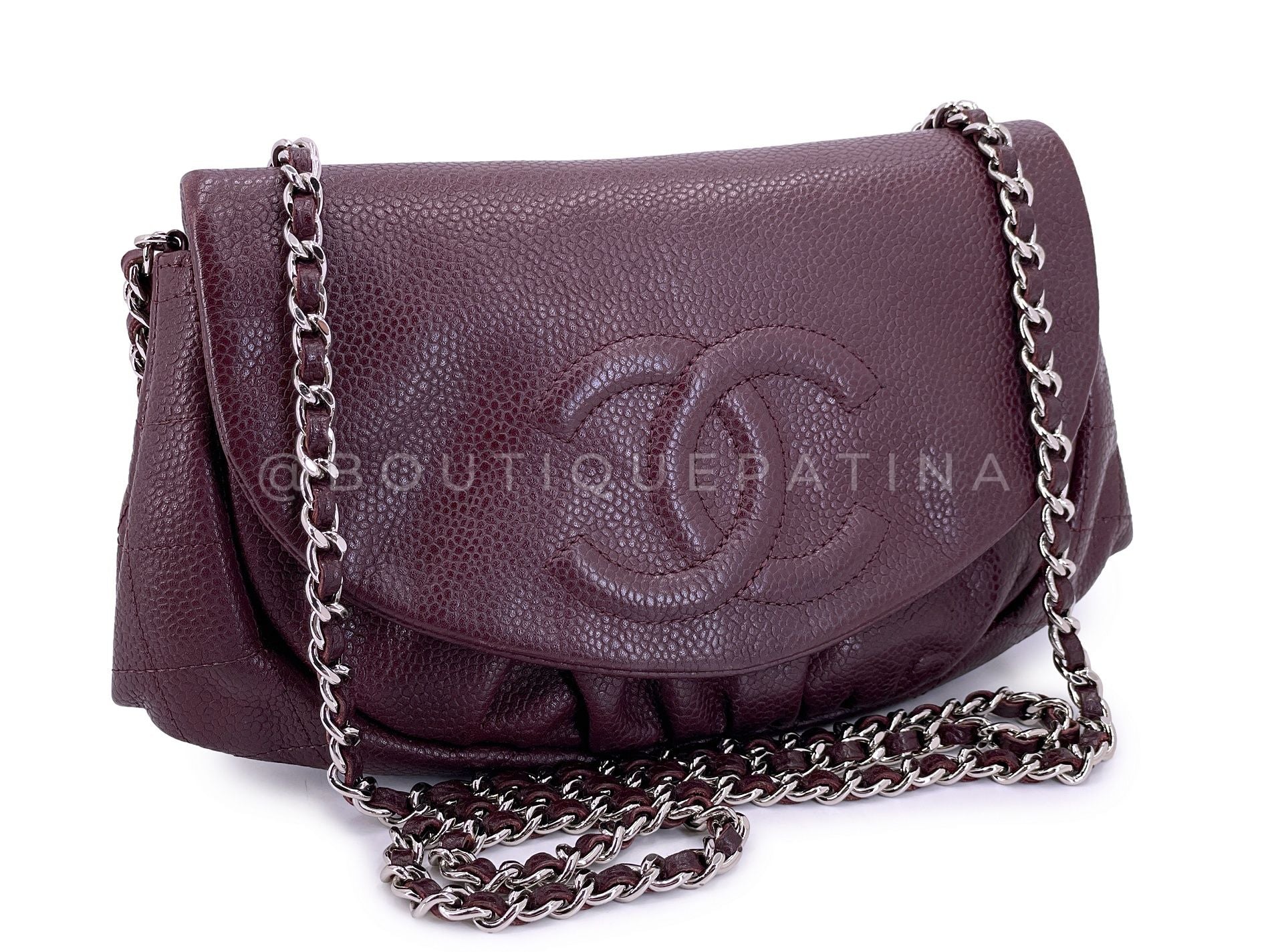 Chanel Caviar Wine Burgundy Half Moon WOC Wallet on Chain Flap Bag B34