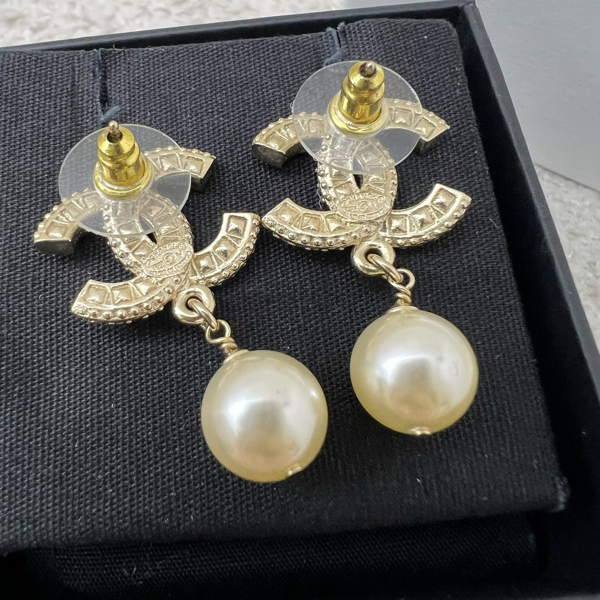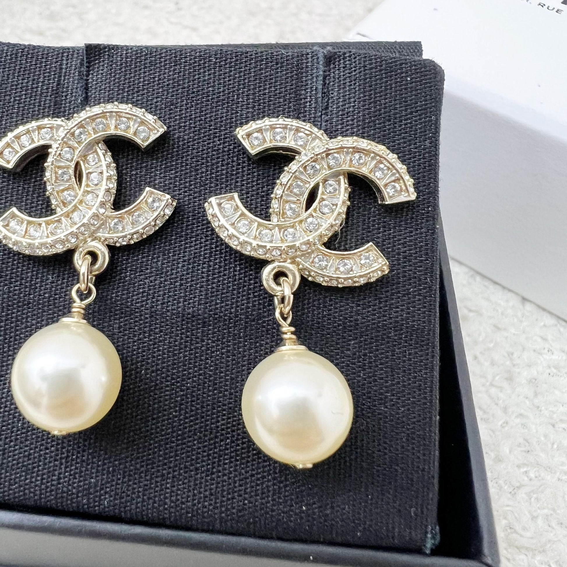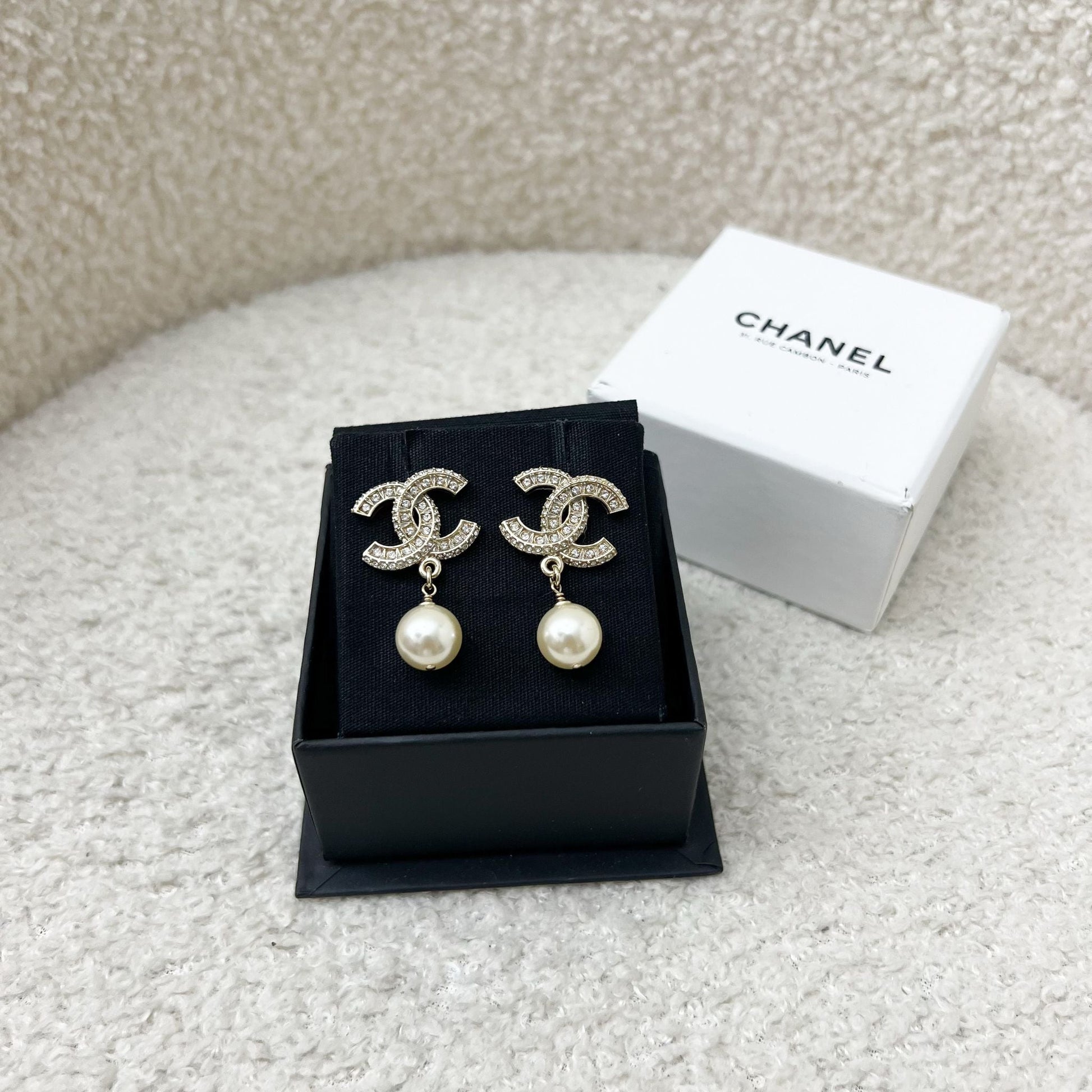 Chanel Classic CC Logo Dangling Earrings with Crystals and Pearls LGHW