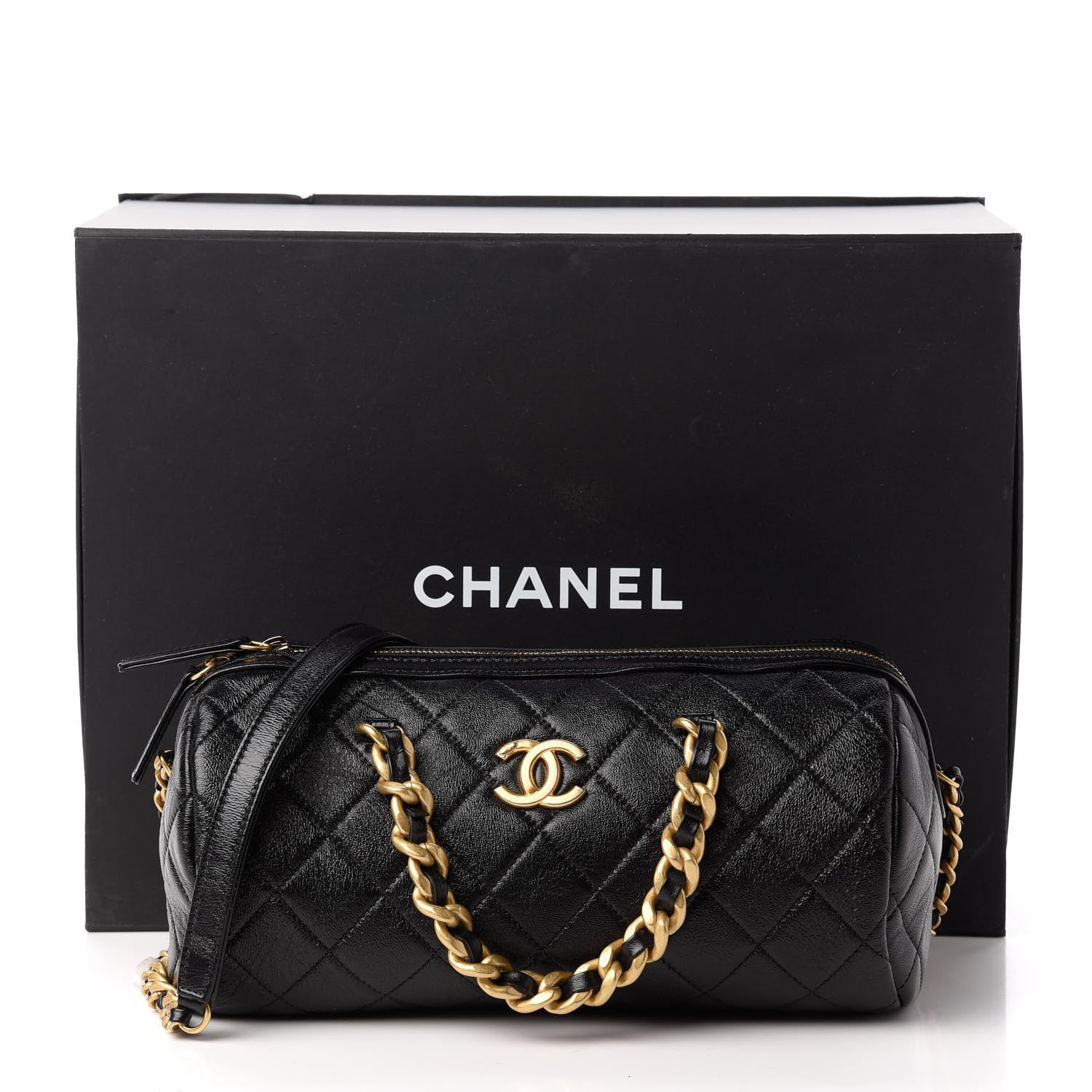 CHANEL CC SHINY QUILTED LAMBSKIN MINI BOWLING BAG
