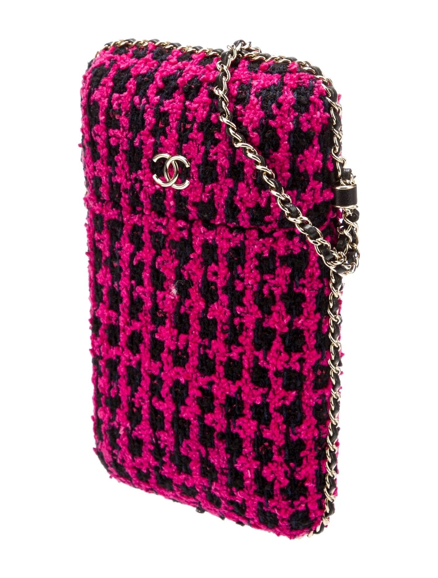 CHANEL CC TWEED PHONE CASE CHAIN BAG