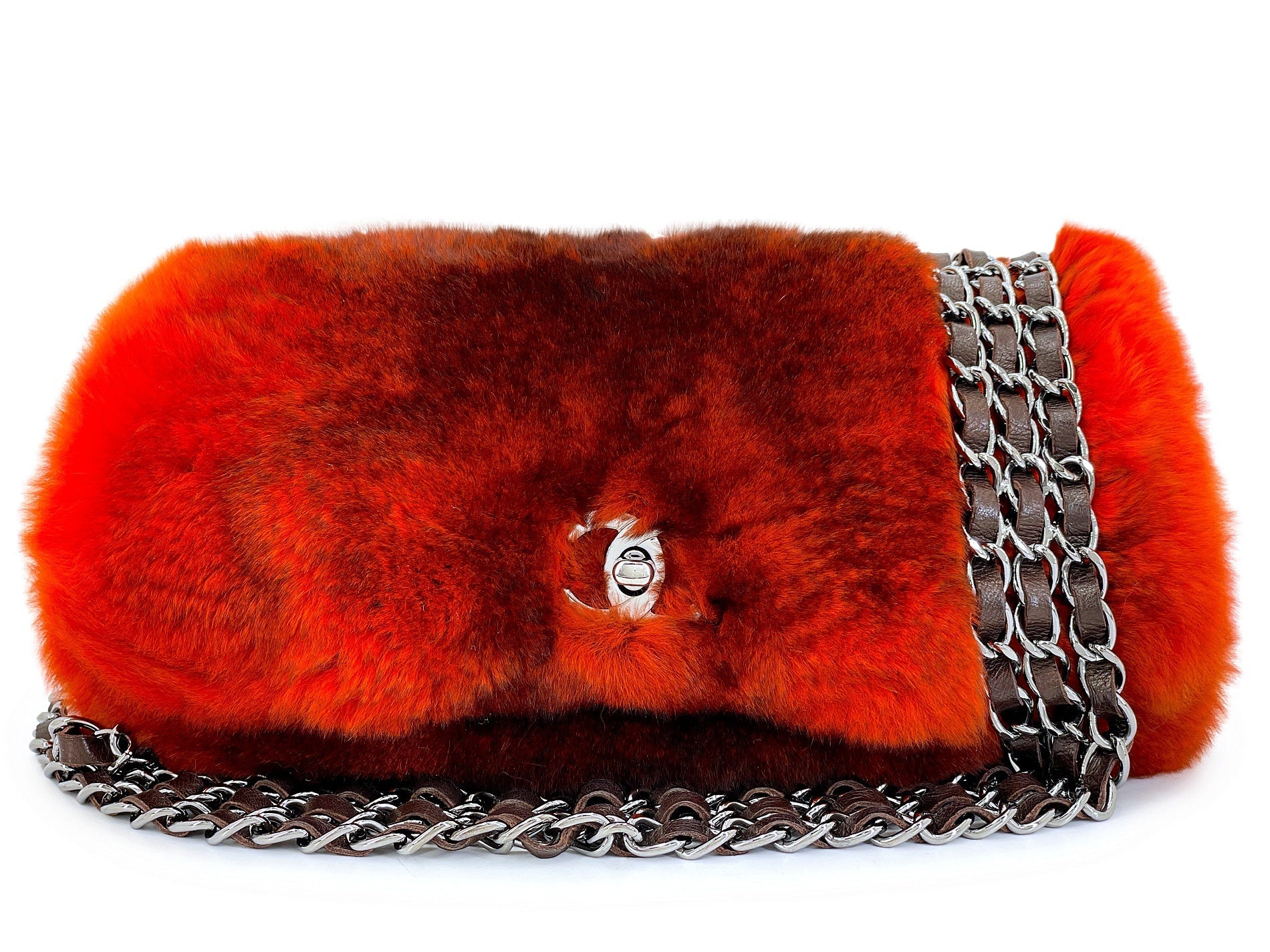 Chanel Chinchilla Orylag Triple Chain Fur Flap Bag RHW Z2C