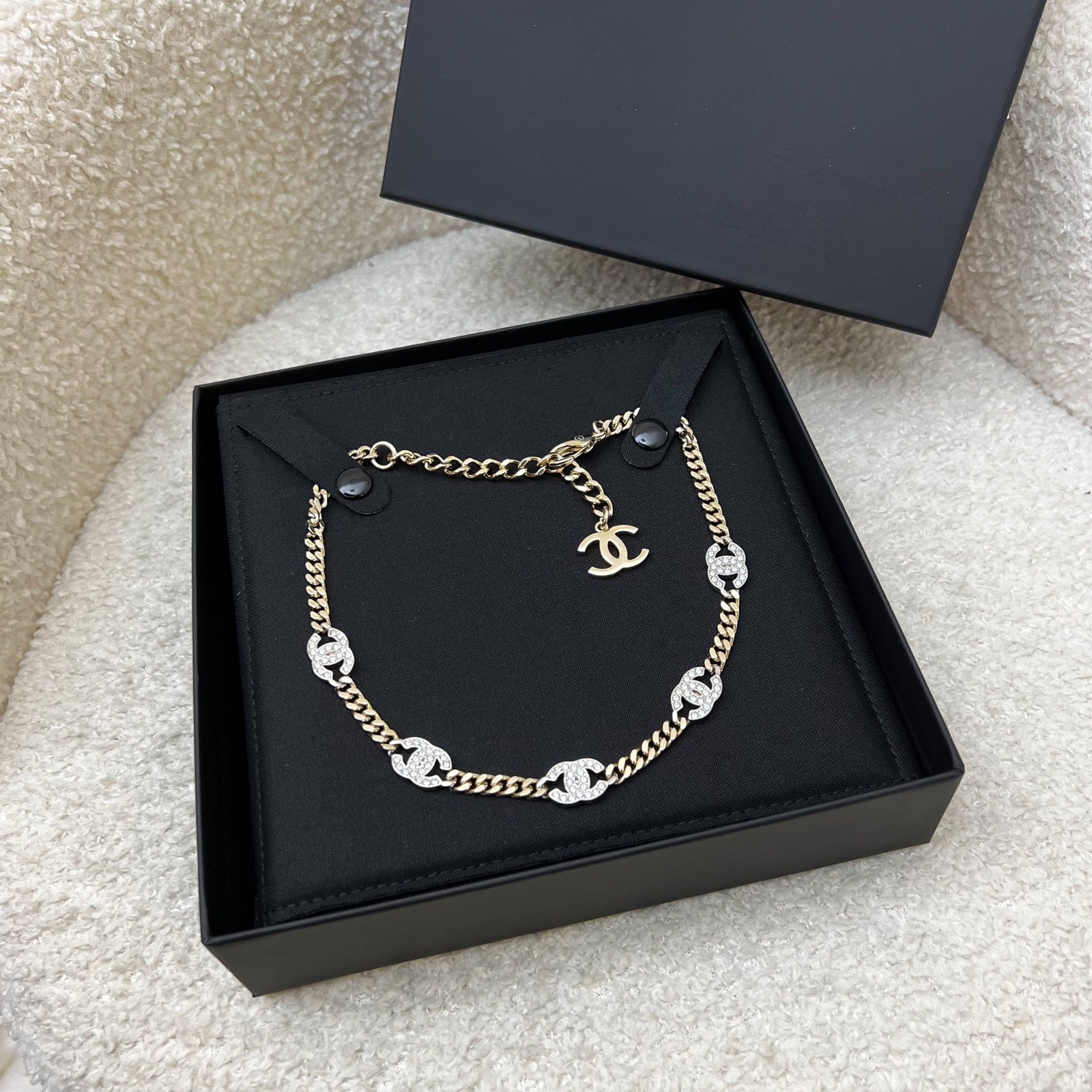 Chanel Diamantes Studded CC Motif Choker Necklace in LGHW (Model: AB6444)