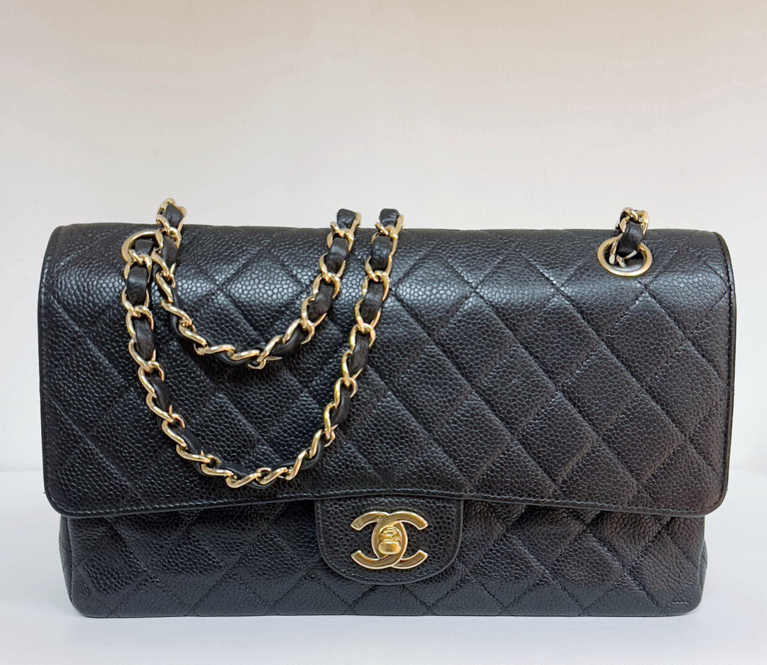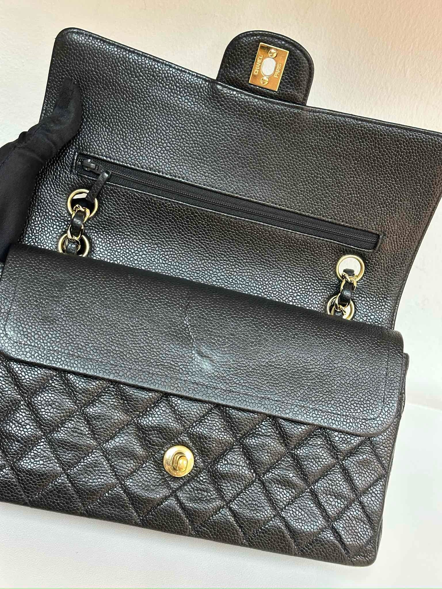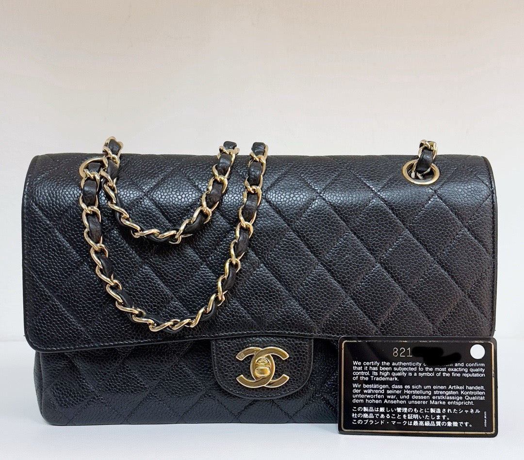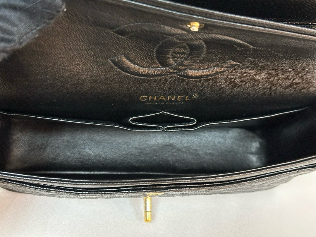 CHANEL Classic Double Flap Medium Shoulder Bag Black Caviar 24k