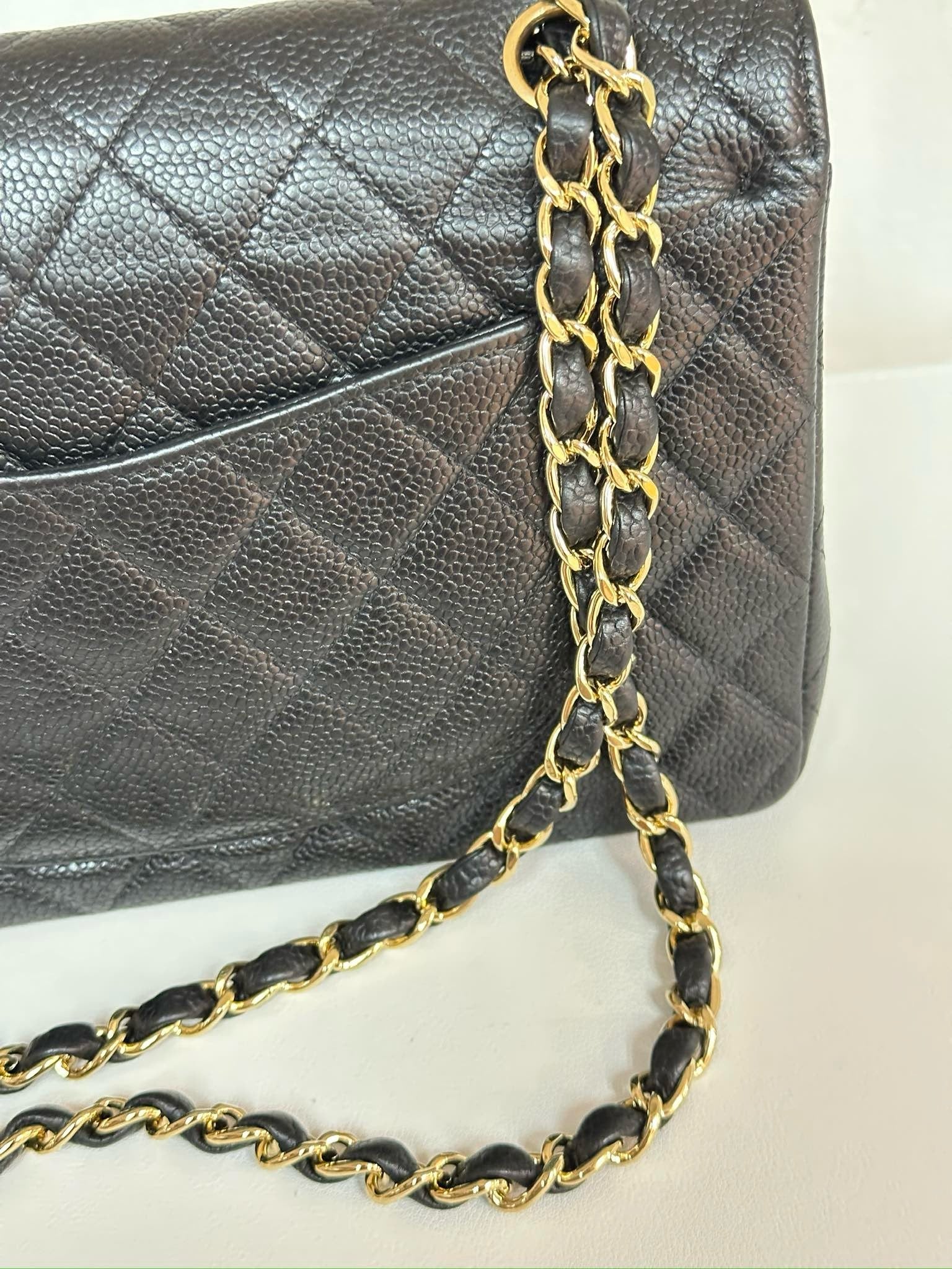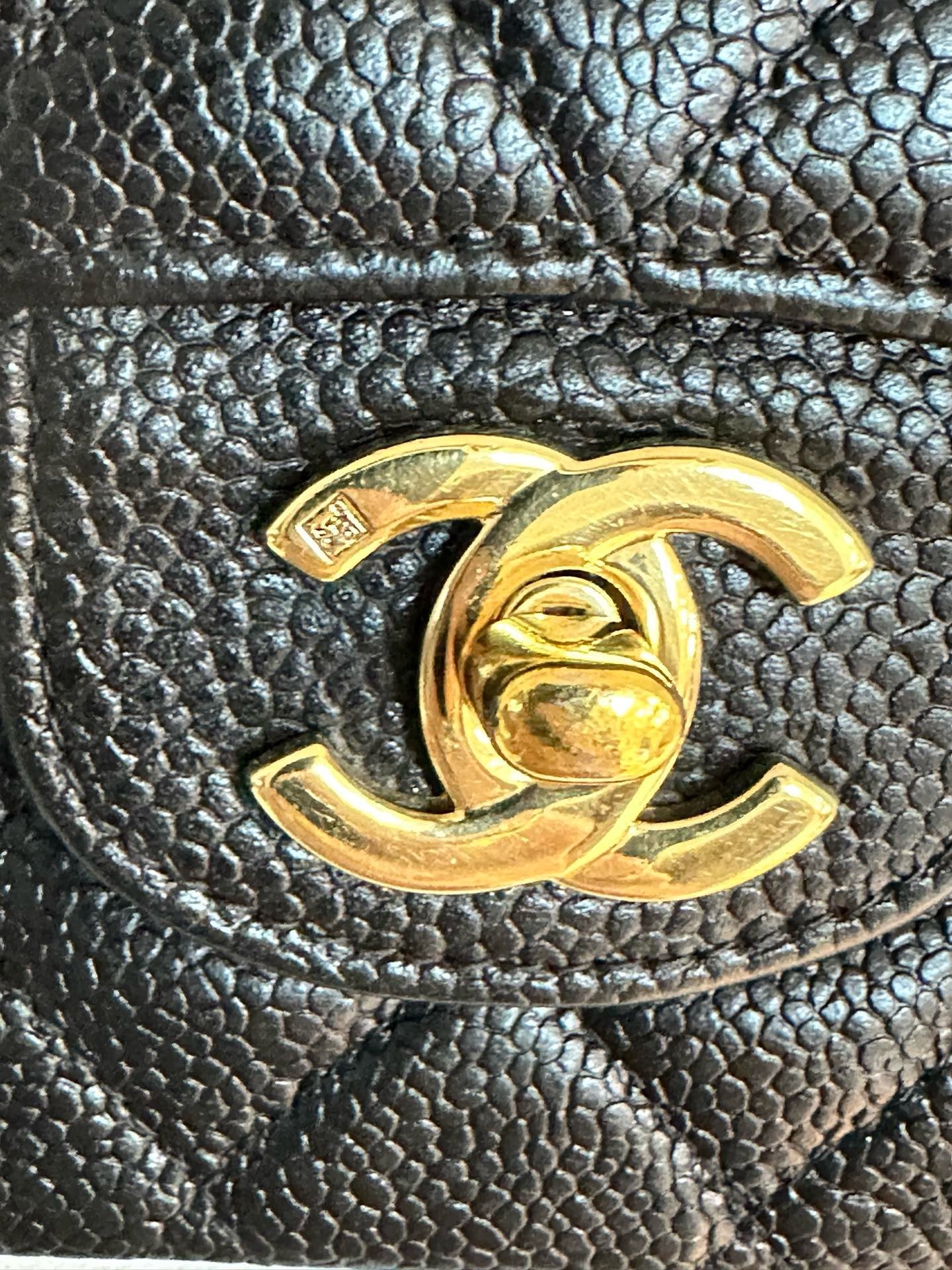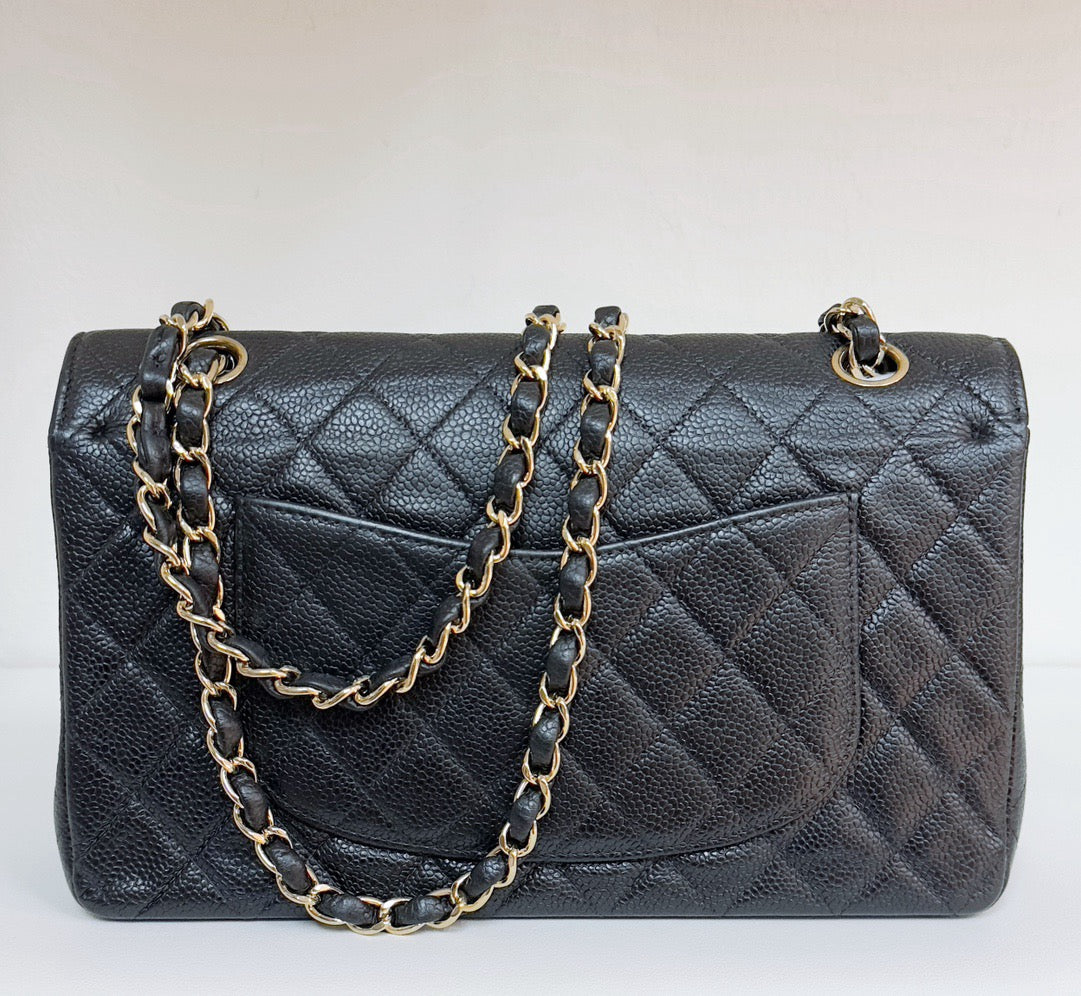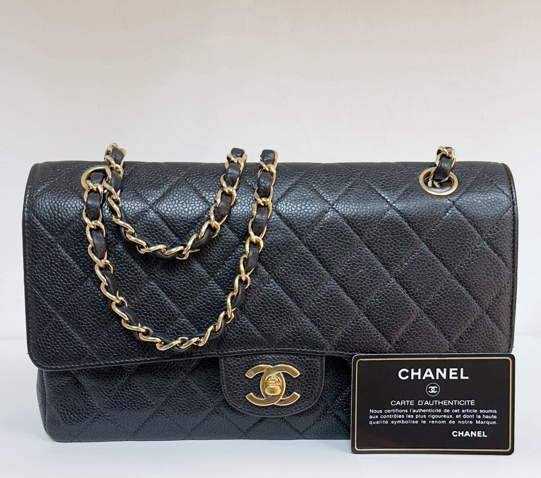 CHANEL Classic Double Flap Medium Shoulder Bag Black Caviar 24k
