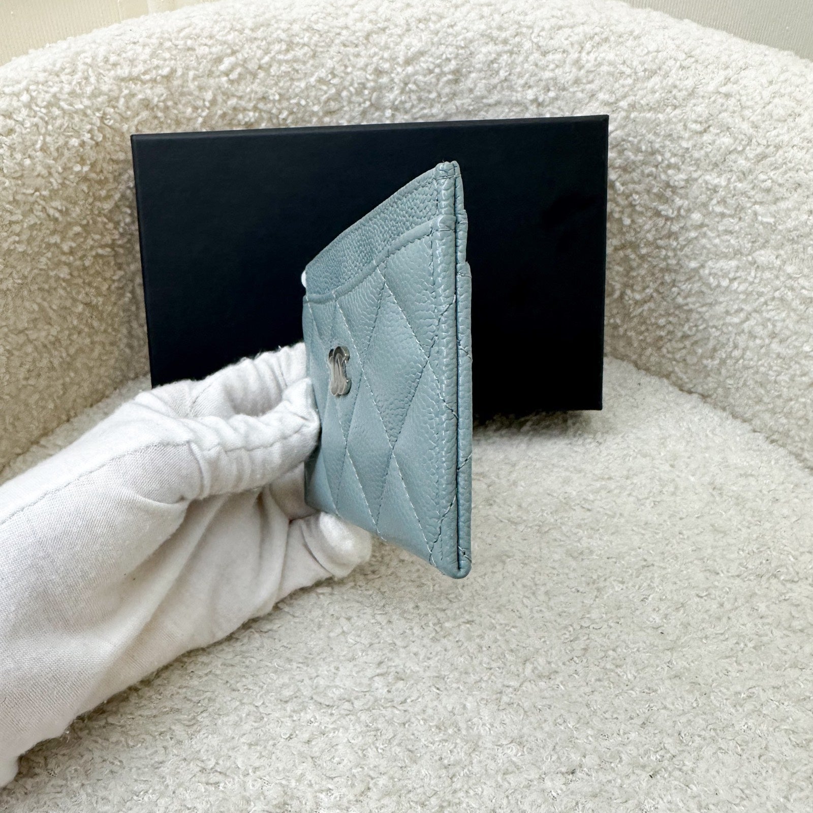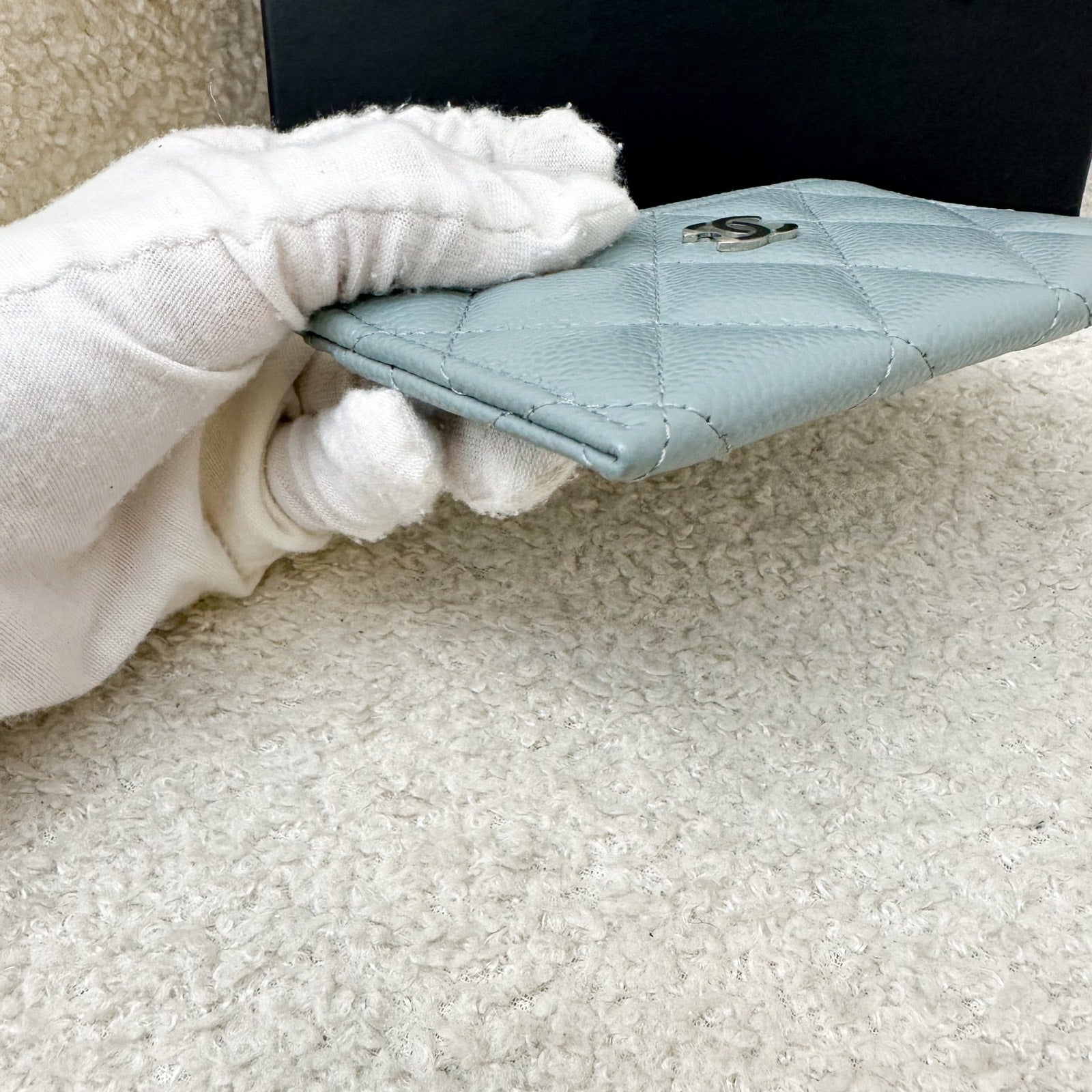 Chanel Classic Flat Card Holder in Seafoam Green / Grey Caviar and SHW