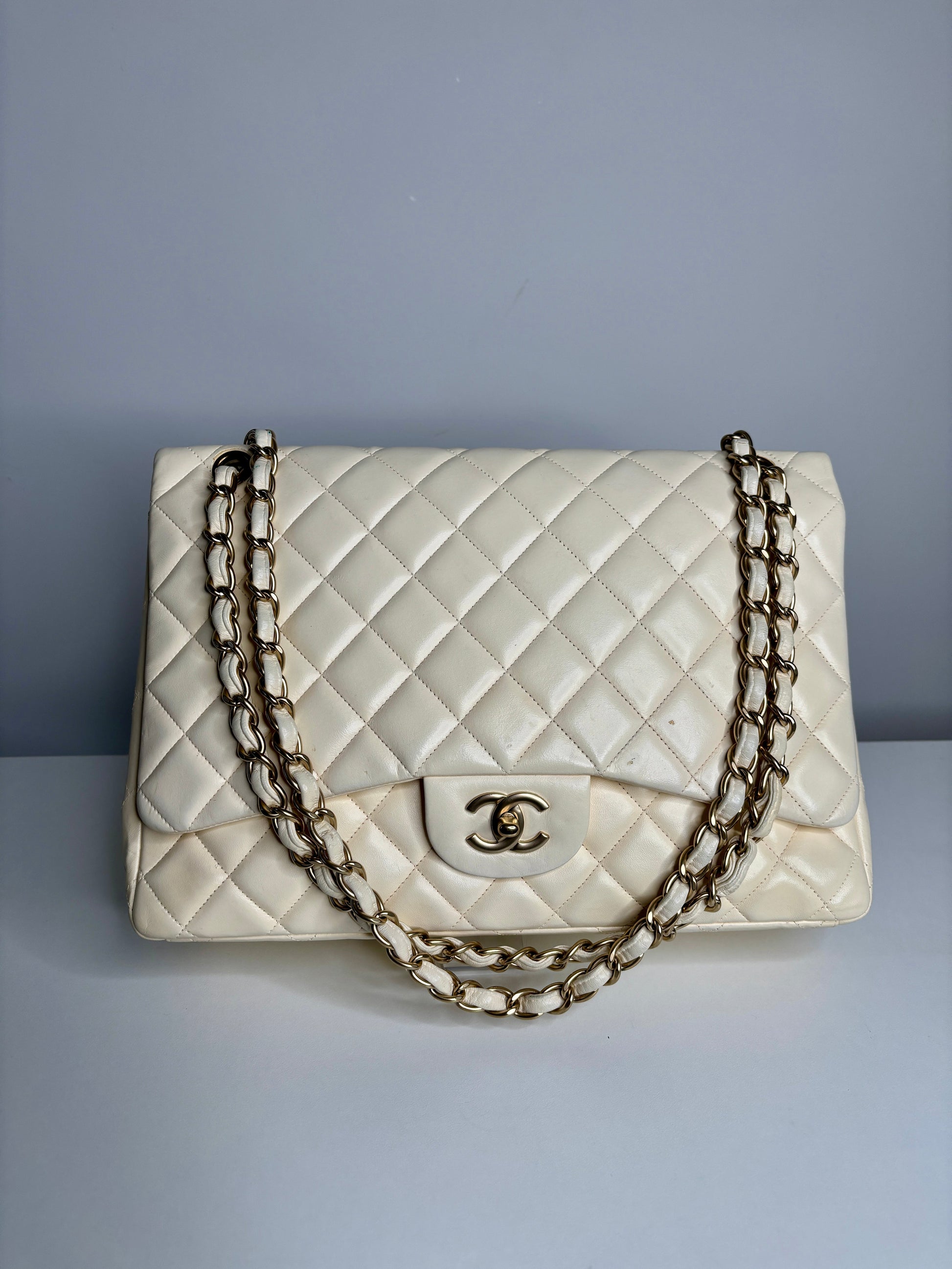 Chanel Classic Maxi Cream Calfskin Shoulder Flap Bag - Preloved