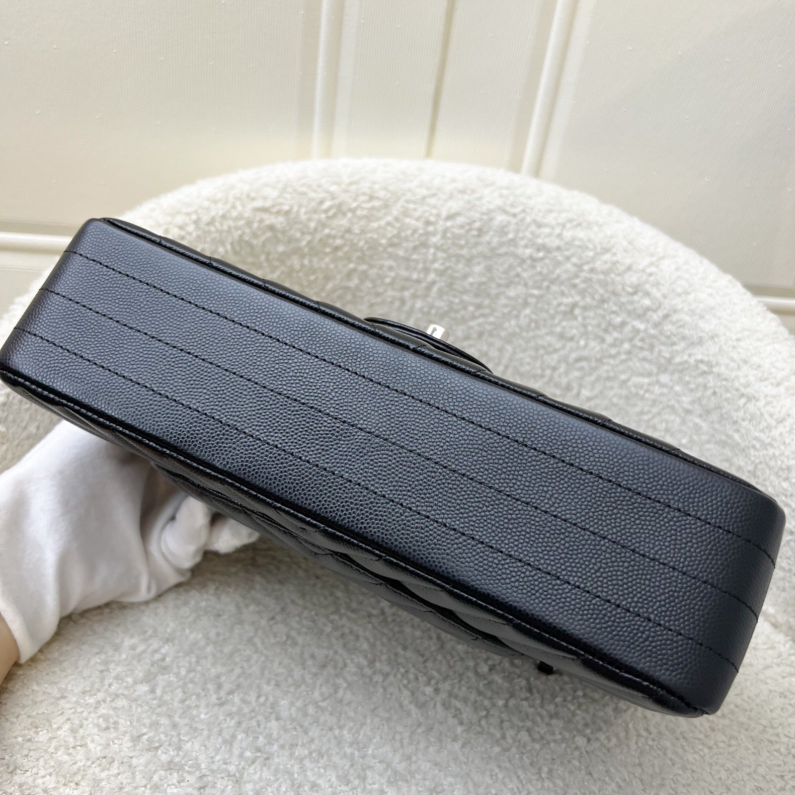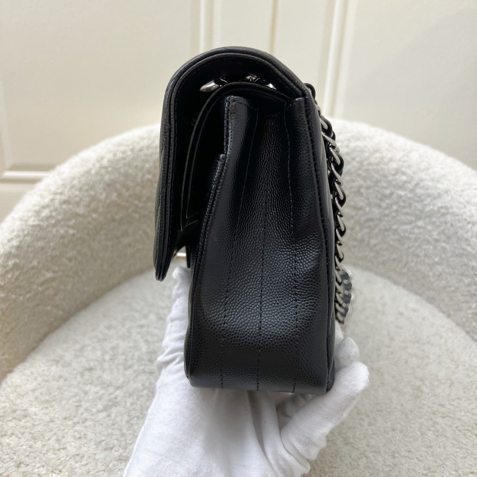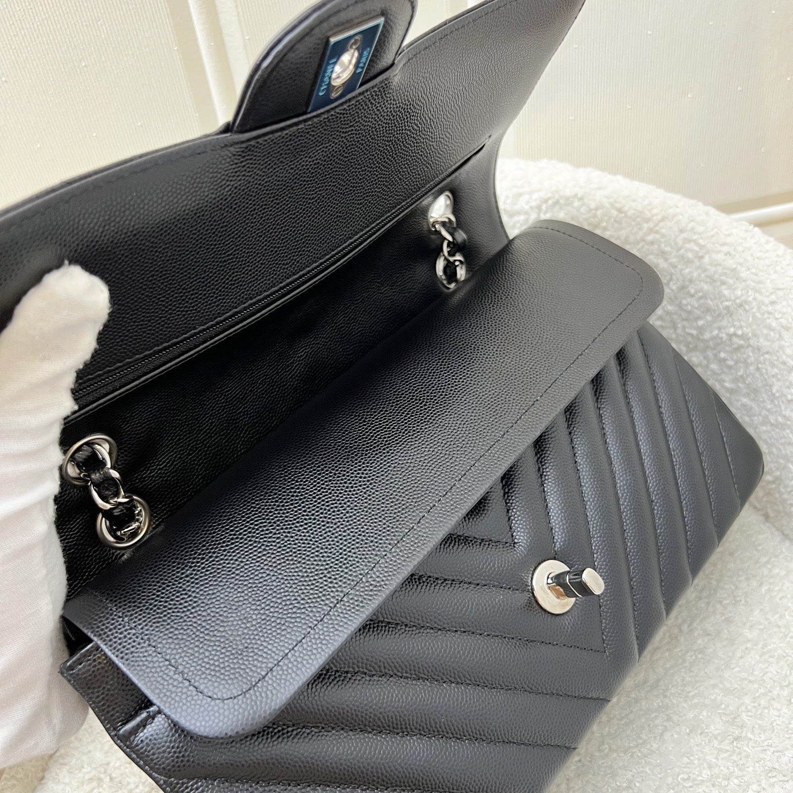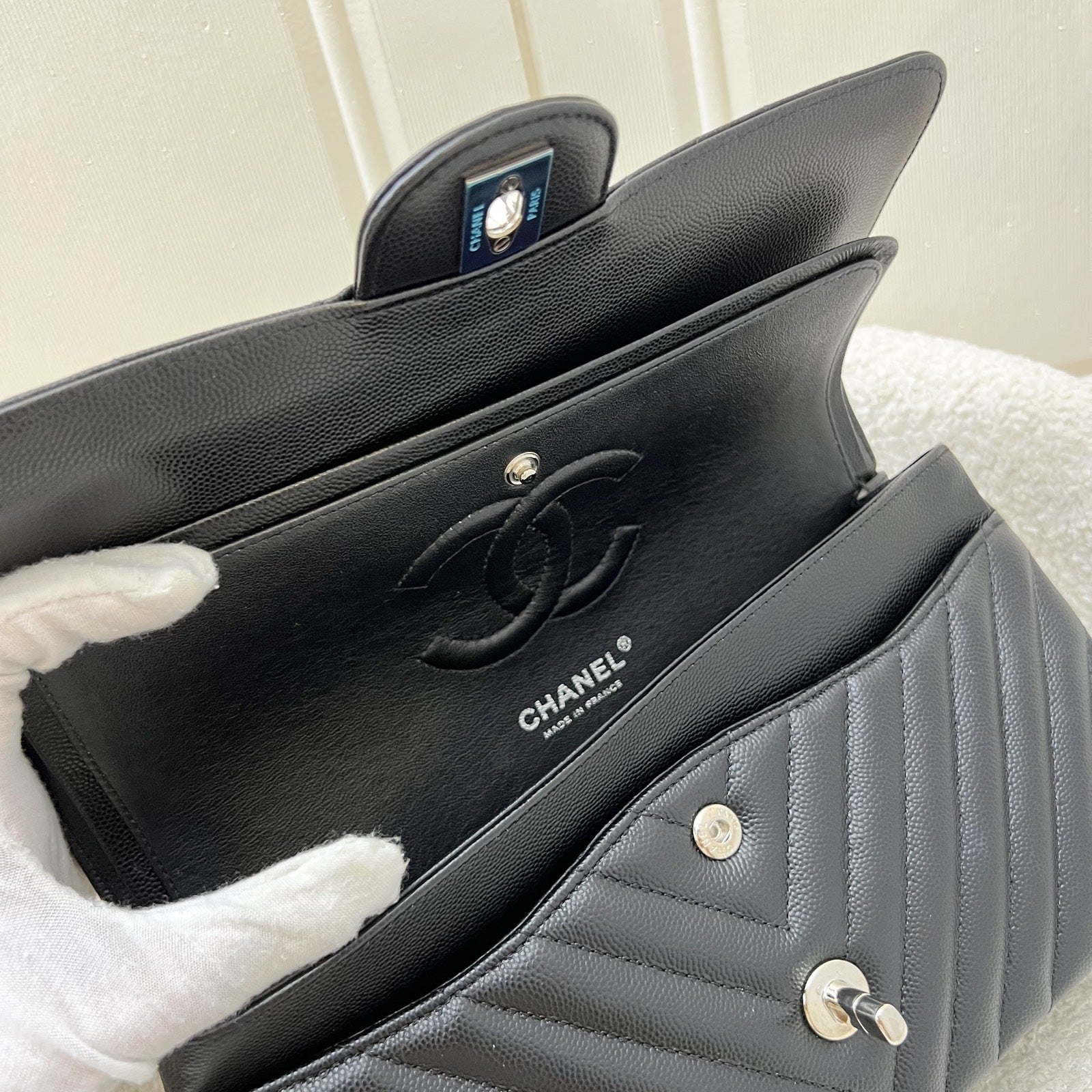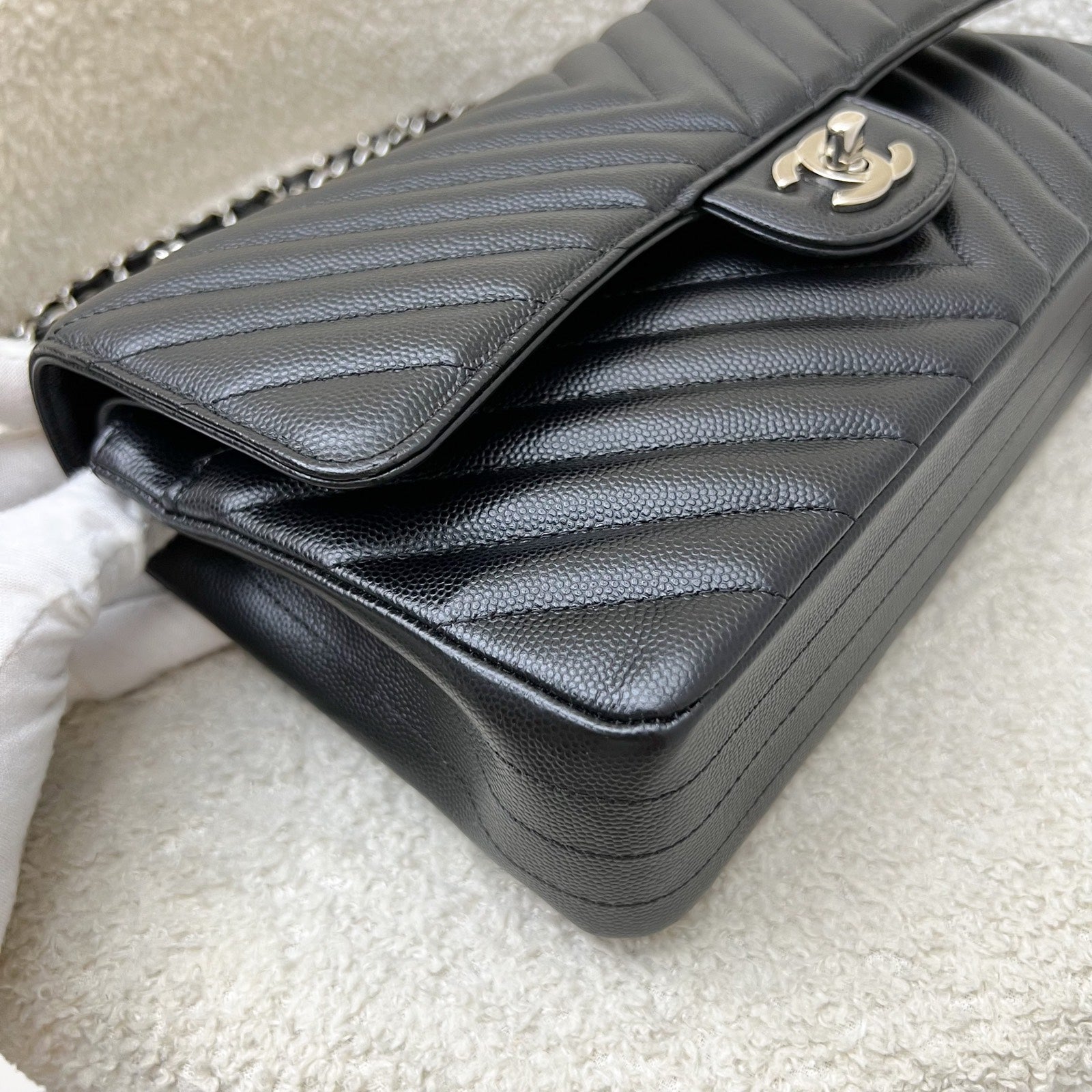 Chanel Medium Classic Flap CF in Chevron Quilted Black Caviar and SHW (Model: A01112)