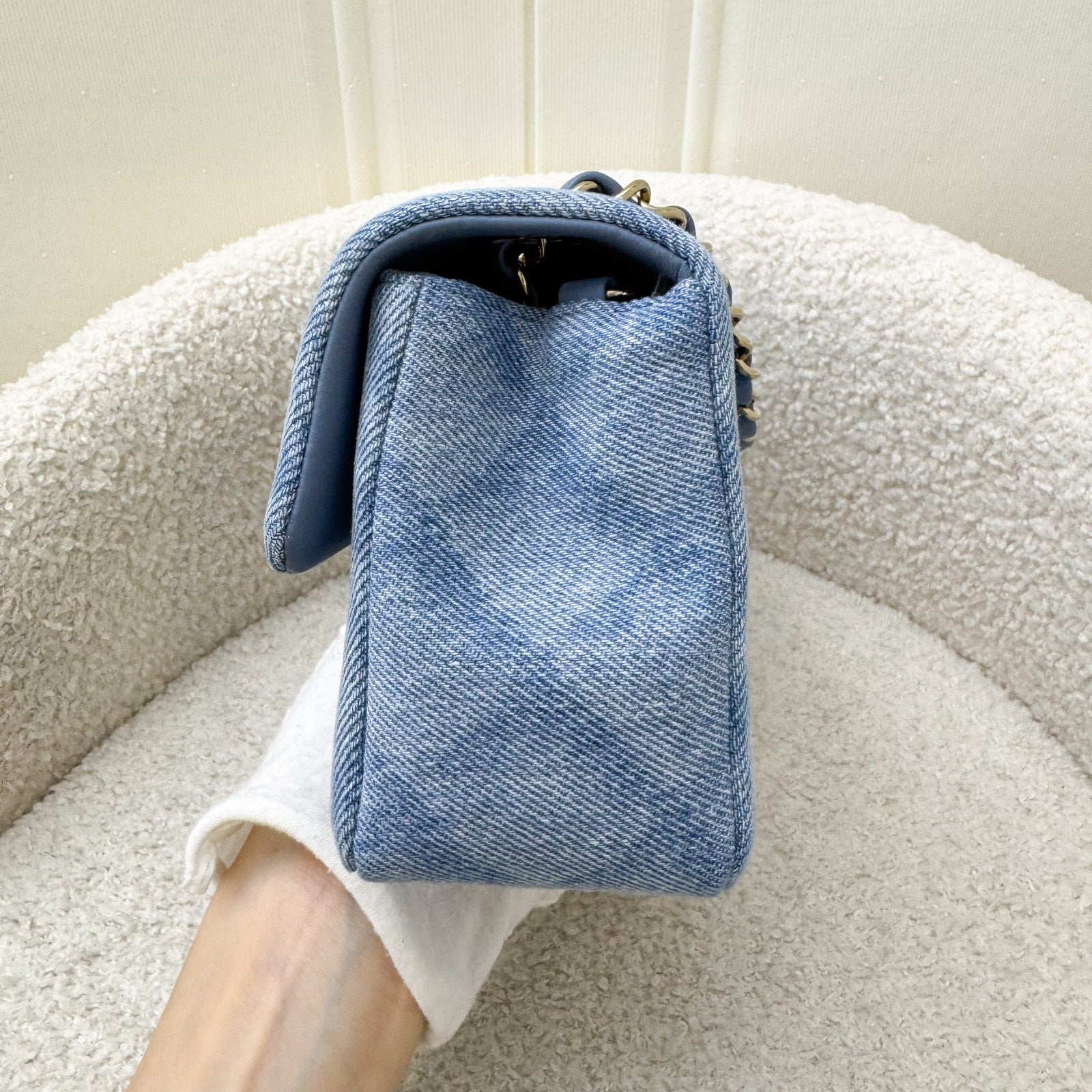 Chanel Classic Mini Rectangular Flap in 22B Light Blue Shadow Denim and LGHW (Model: A69900)
