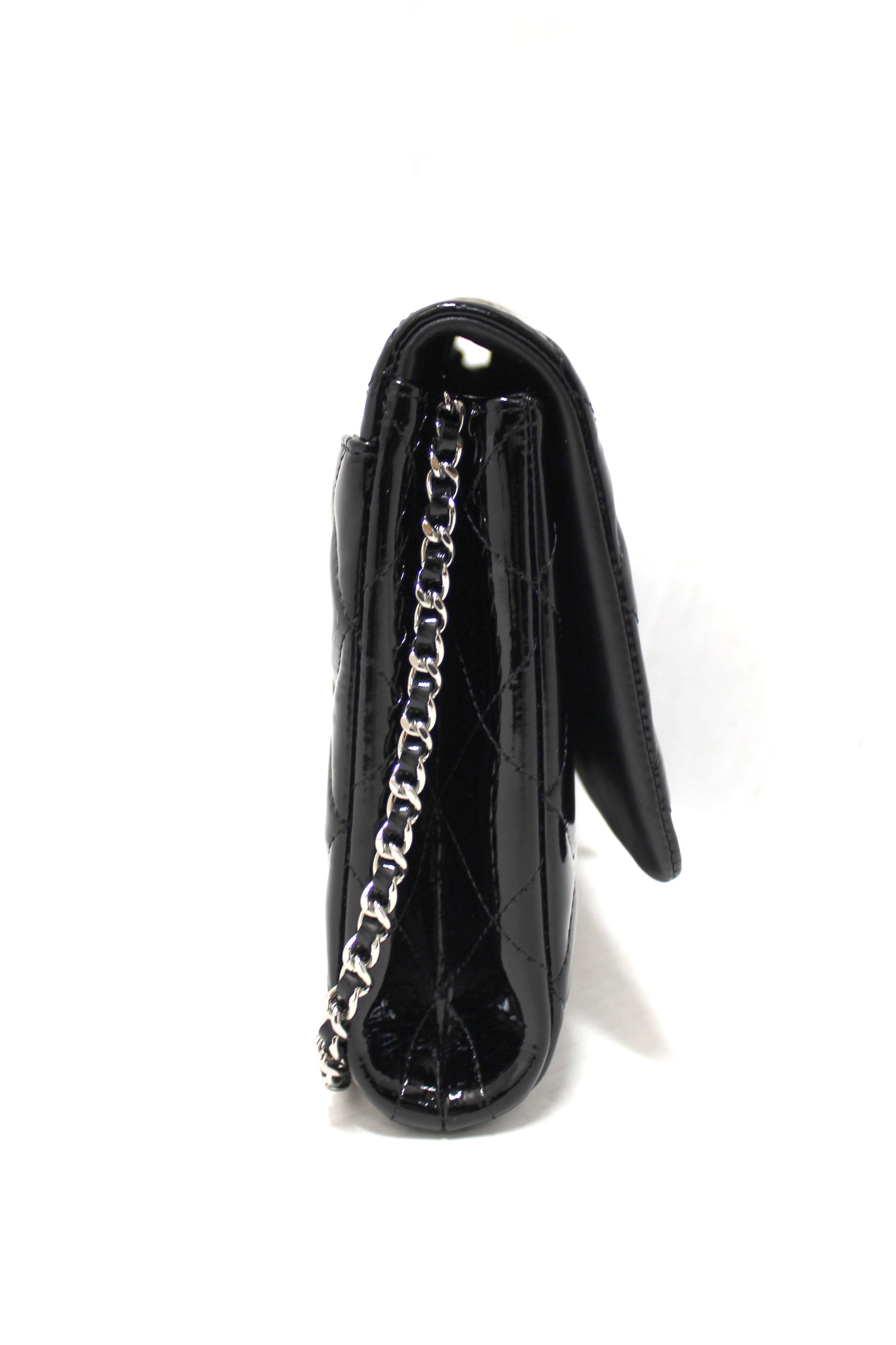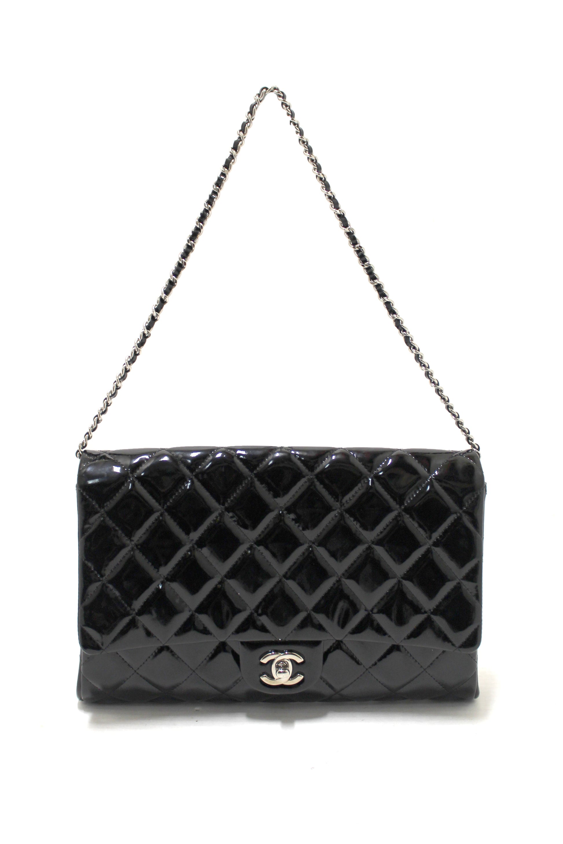 Chanel Classic Quilted Black Patent Leather Flap Shoulder Clutch Bag