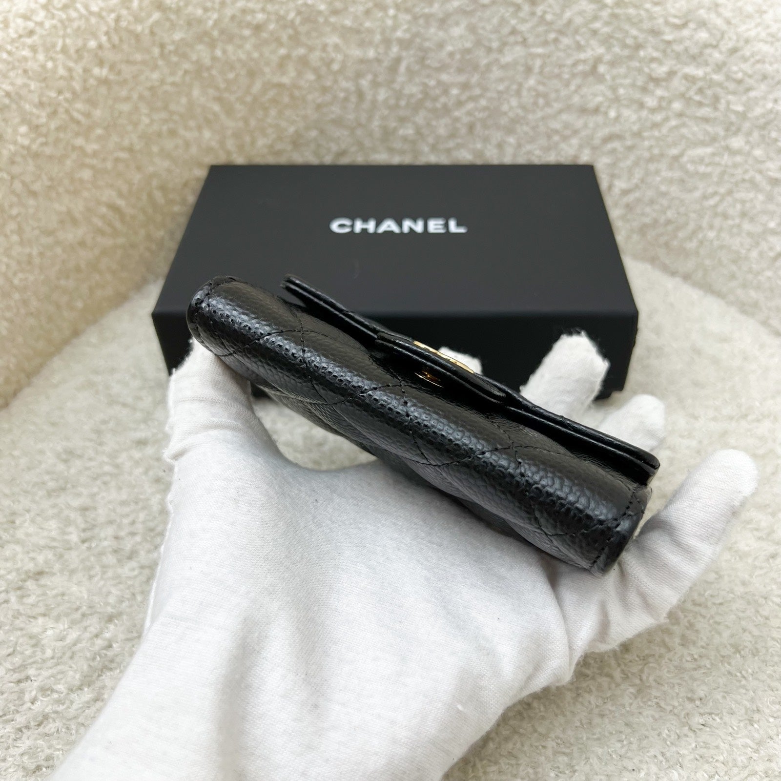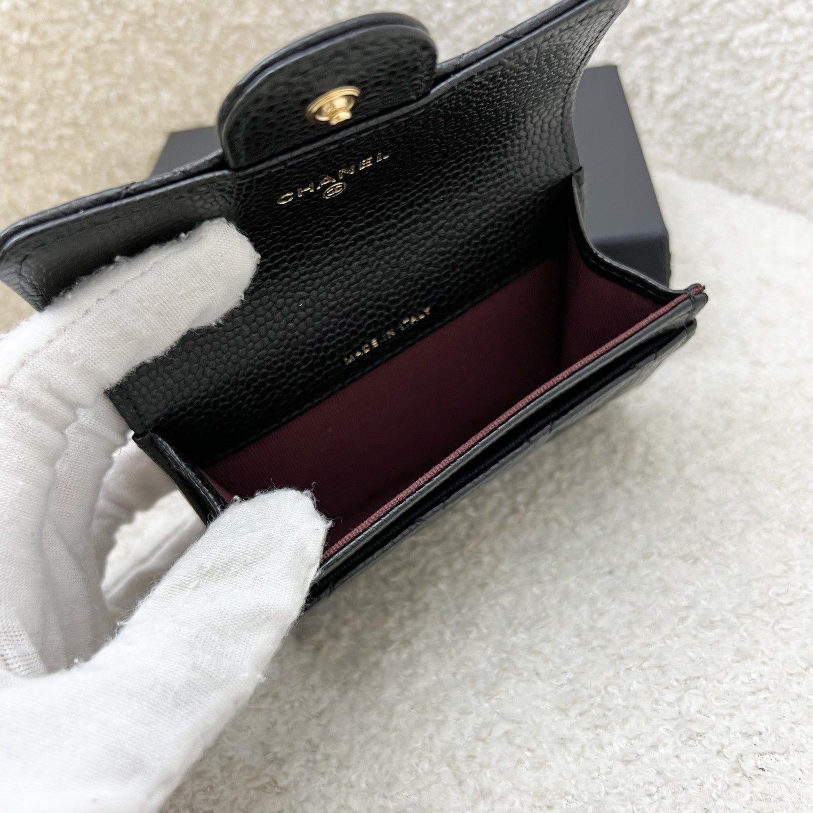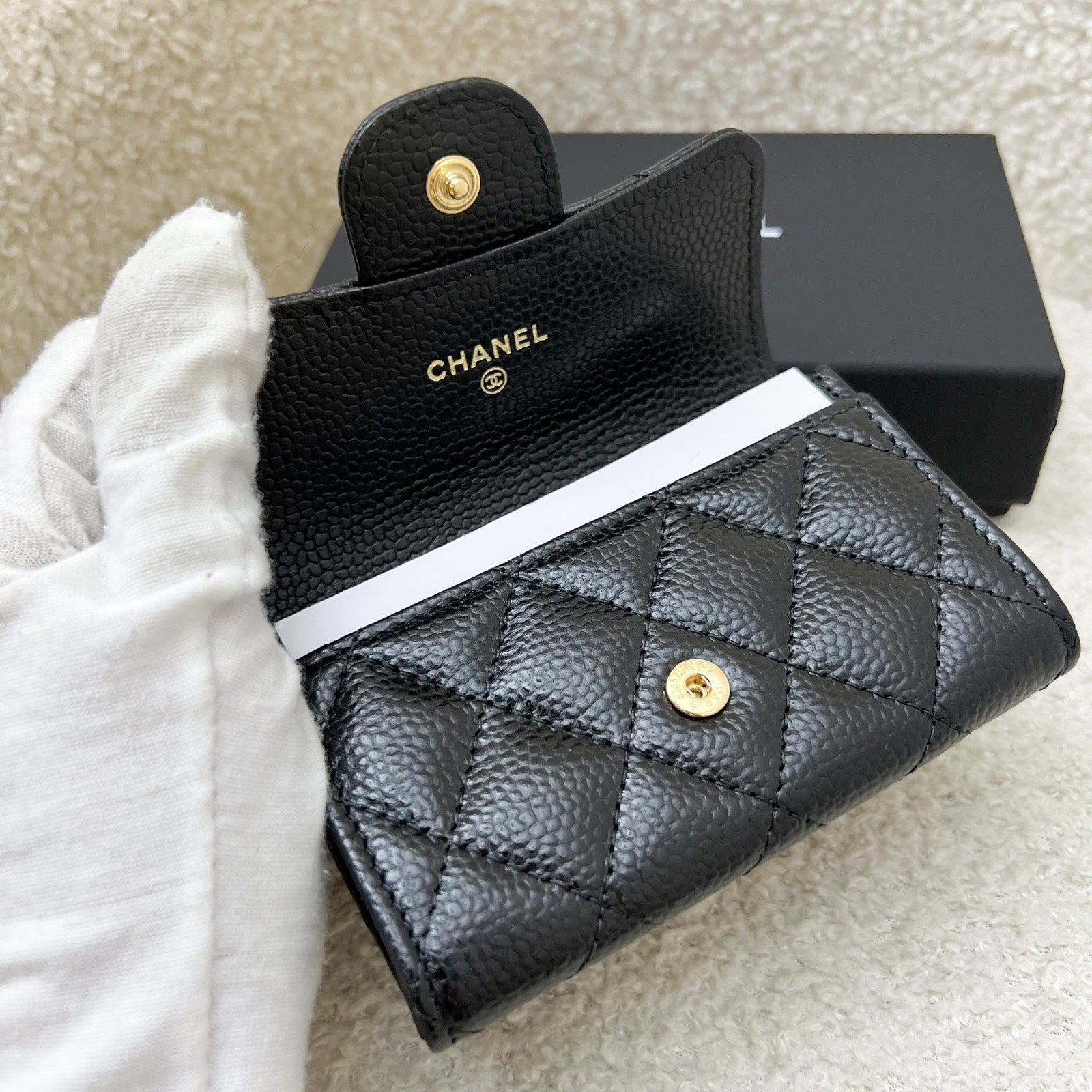 Chanel Classic Snap Card Holder in Black Caviar and GHW