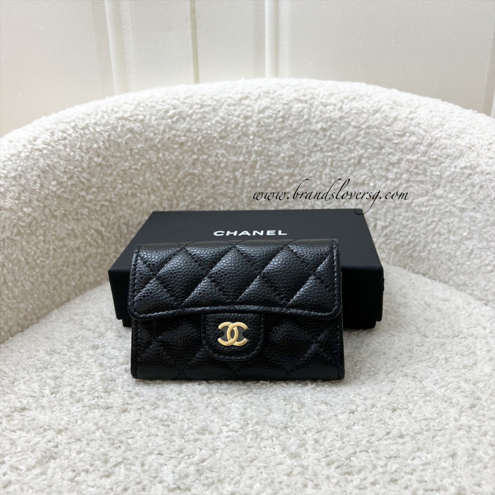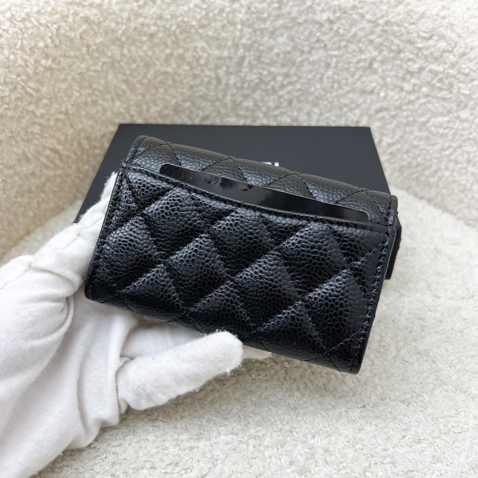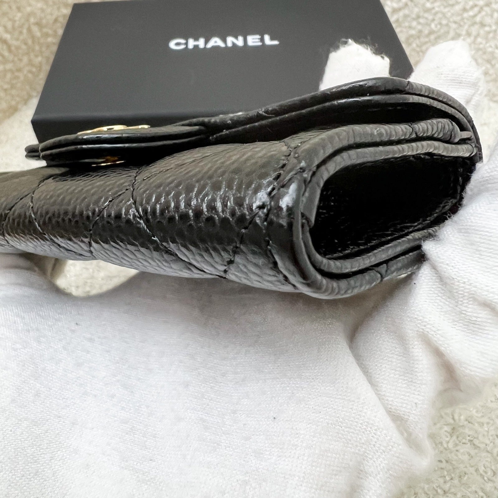 Chanel Classic Snap Card Holder in Black Caviar and GHW