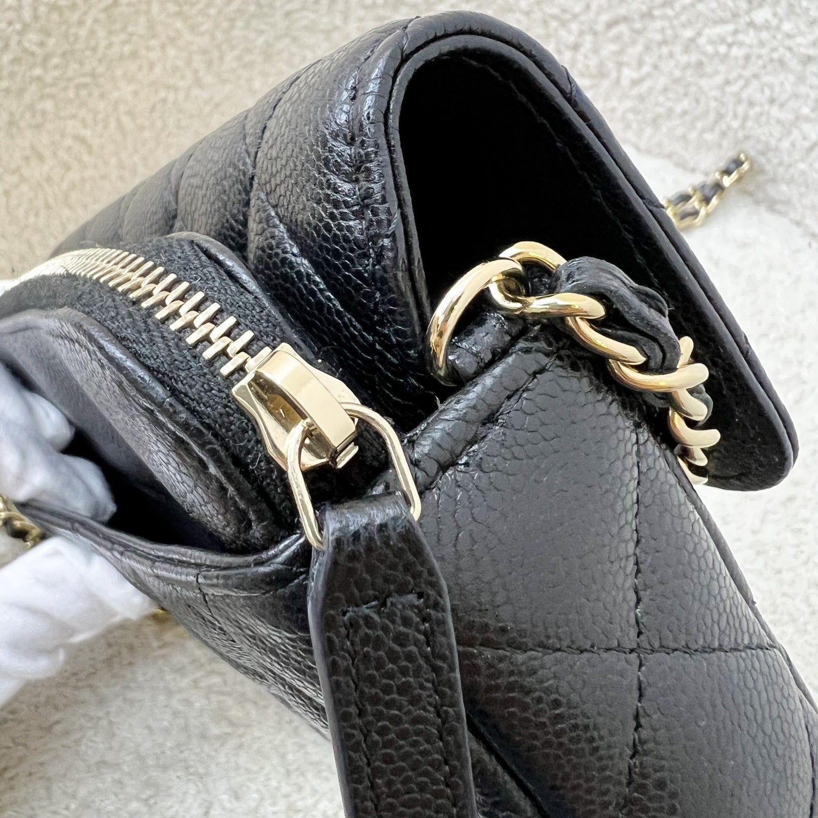 Chanel Phone Holder / Wallet On Chain WOC in Black Caviar and LGHW (Model: AP2096)