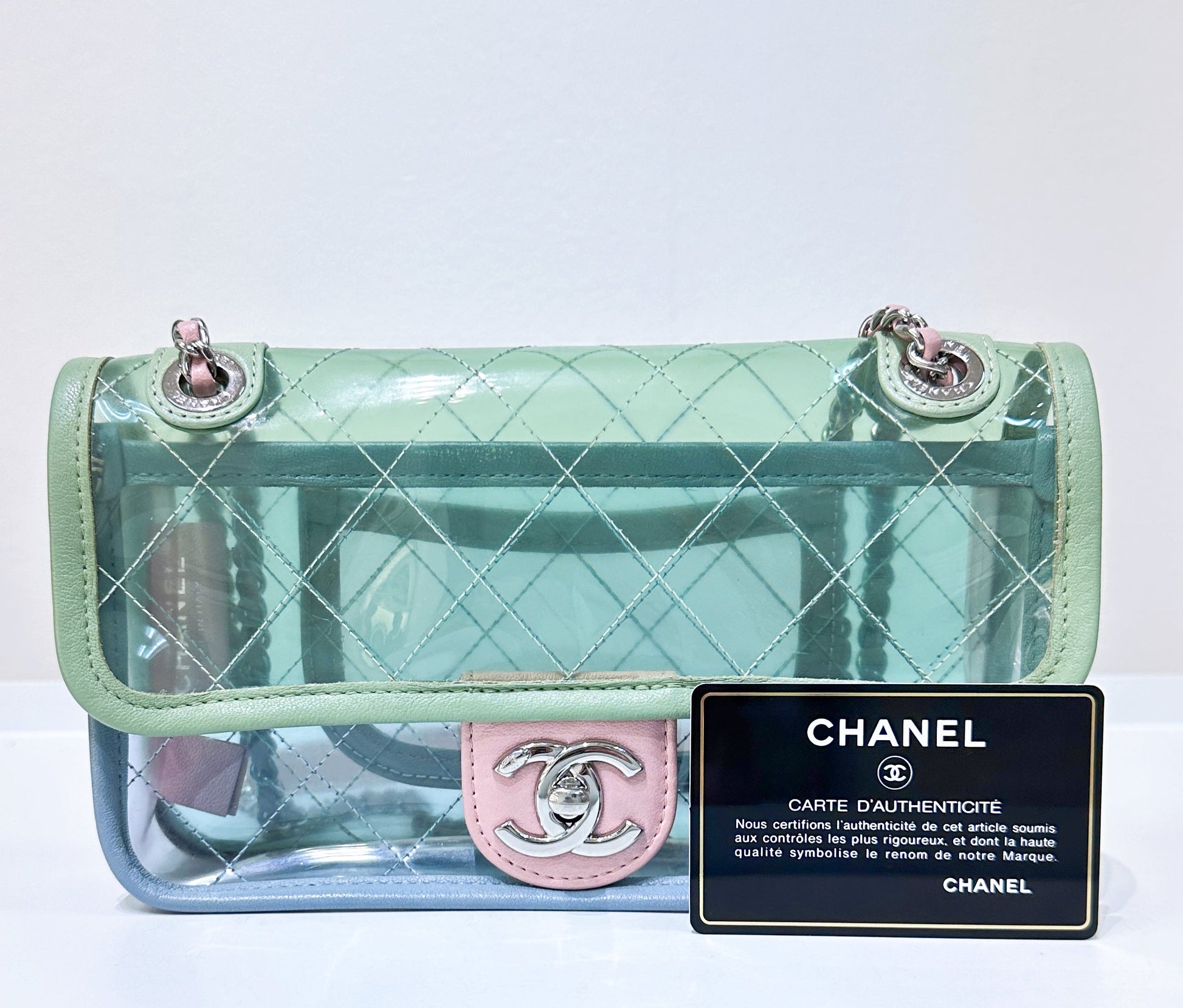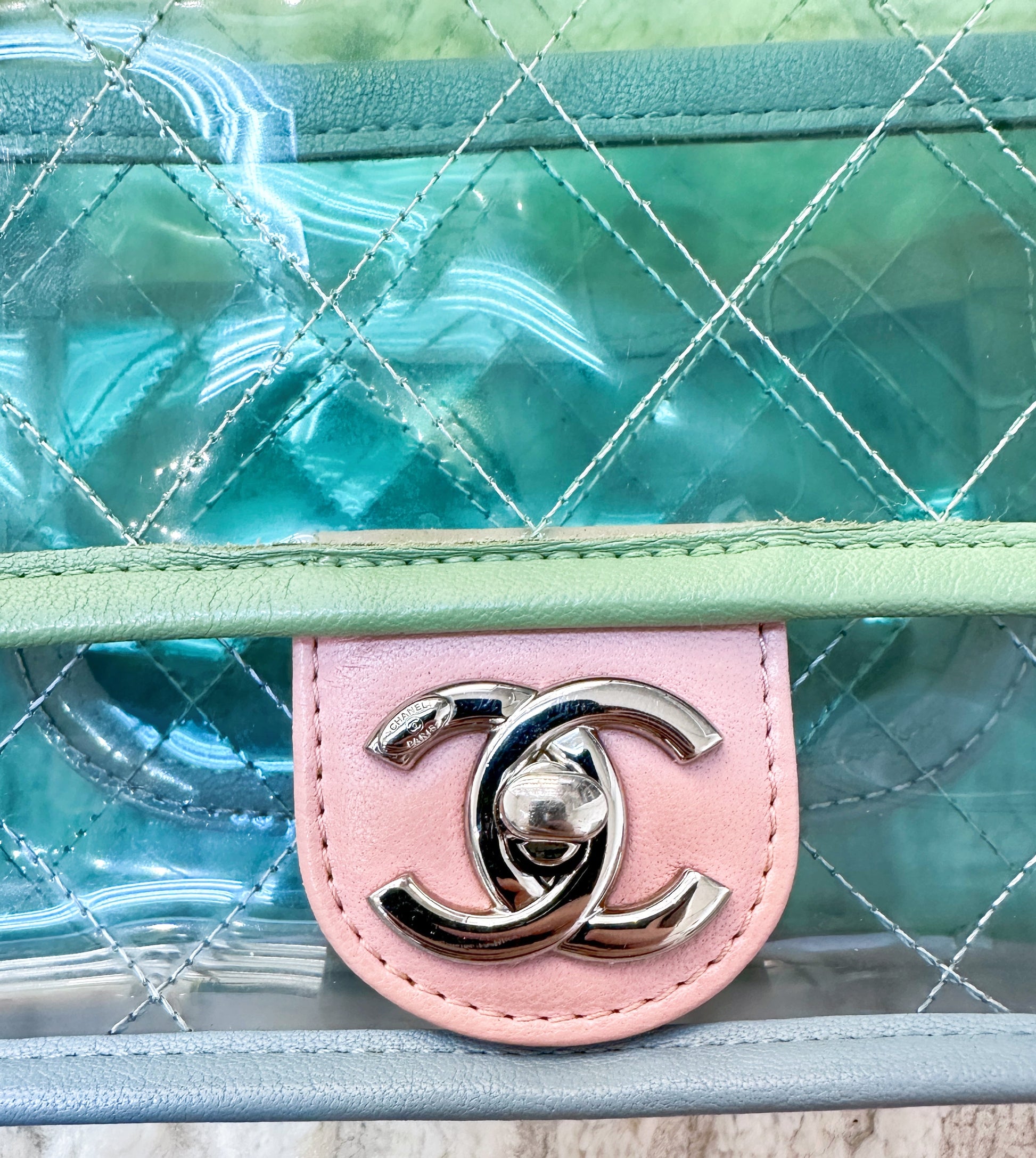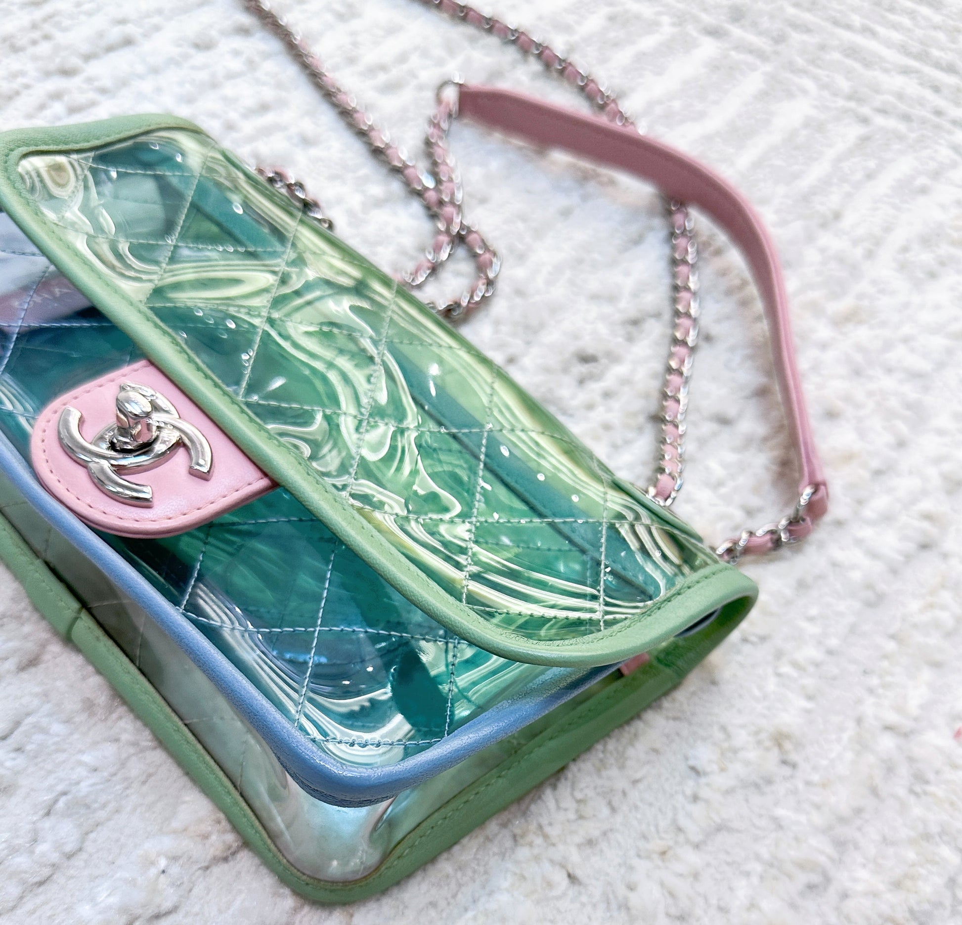 Chanel Coco Splash PVC Mini Flap Bag Blue/Green/Pink Silver Hardware
