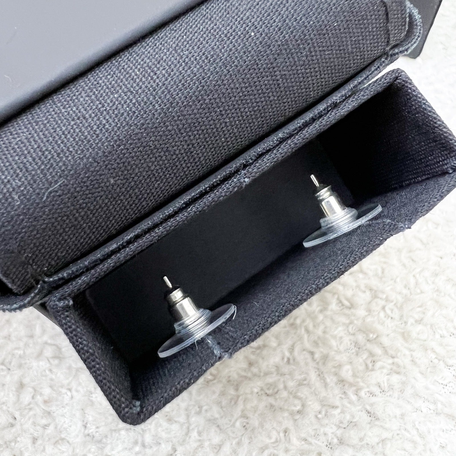 Chanel Classic CC Logo Small Earrings with Crystals in SHW (Model: ABE100)