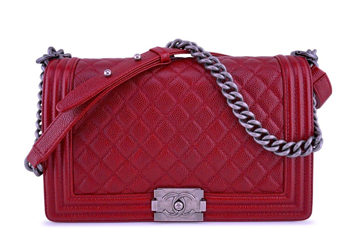 - Signature Chanel quilted caviar calfskin in Dark Red