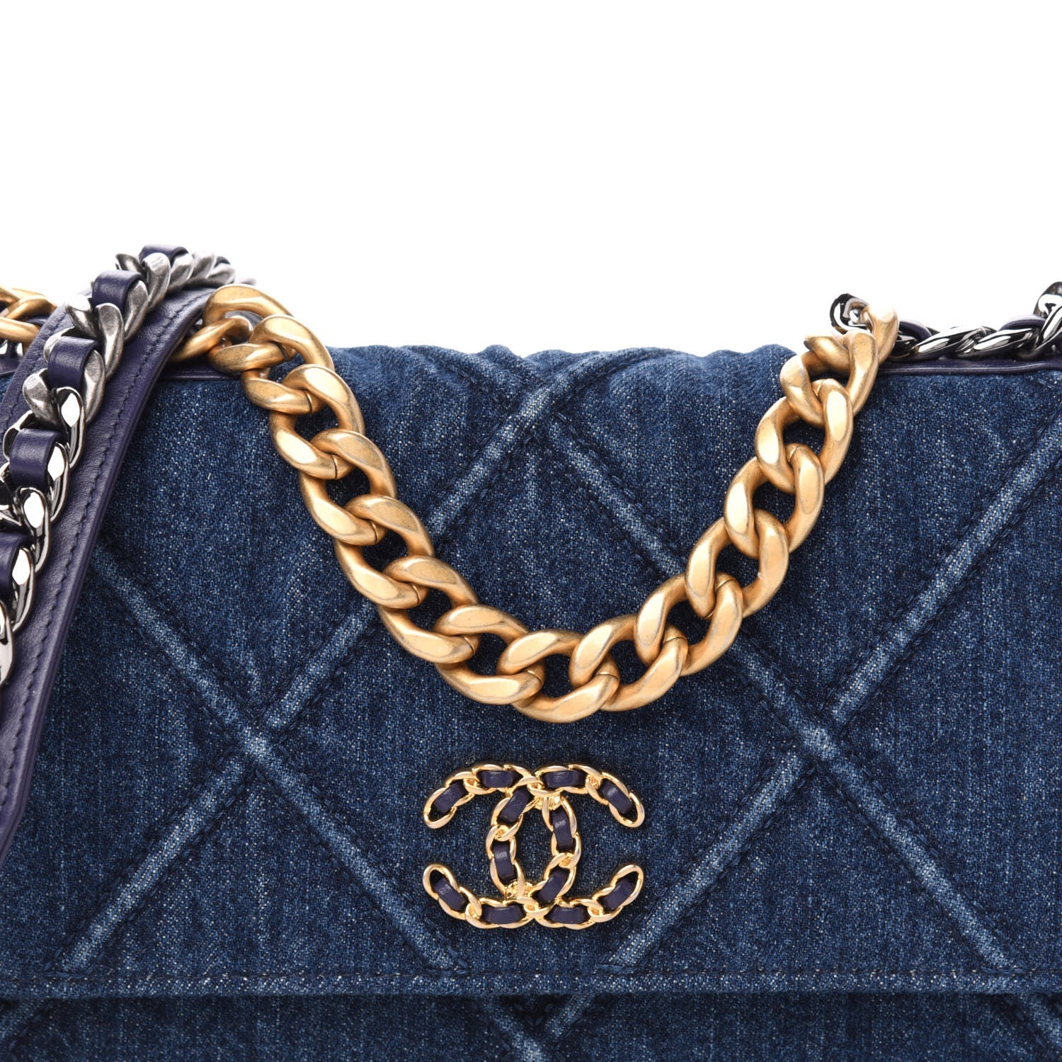 CHANEL DENIM QUILTED CHANEL 19 WALLET ON CHAIN