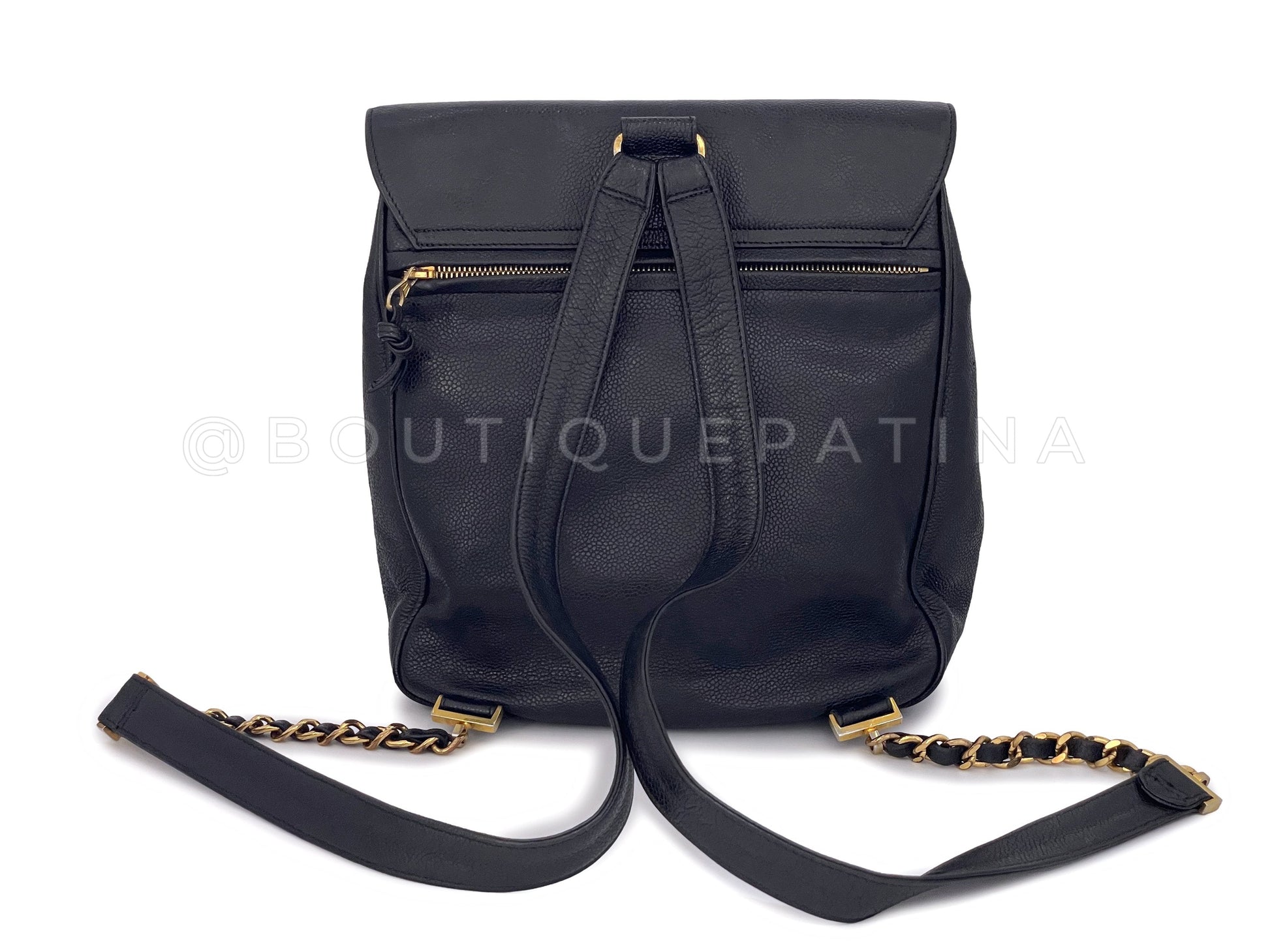 Chanel Early 90s Vintage Black Caviar Large CC Backpack Bag 24k GHW KU1