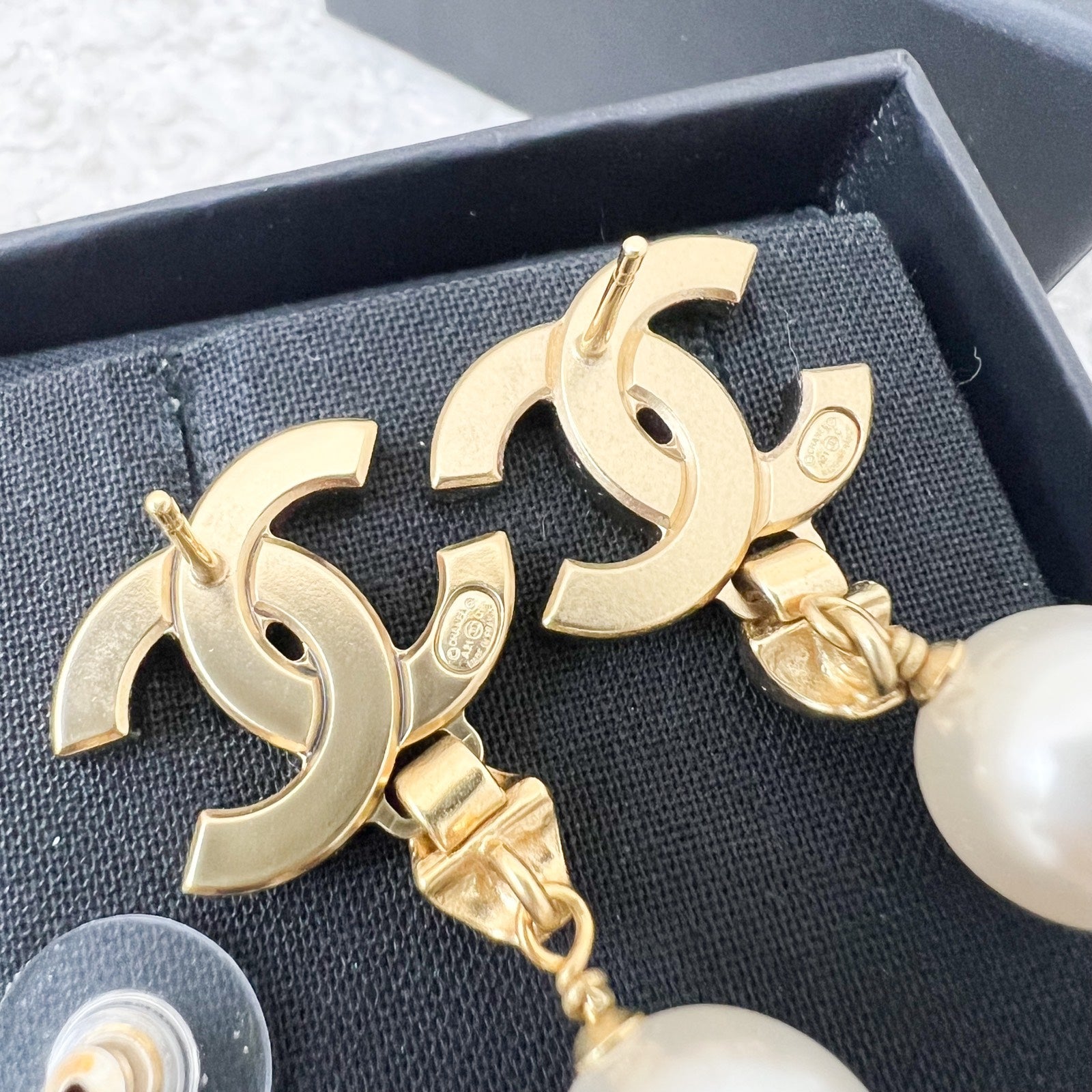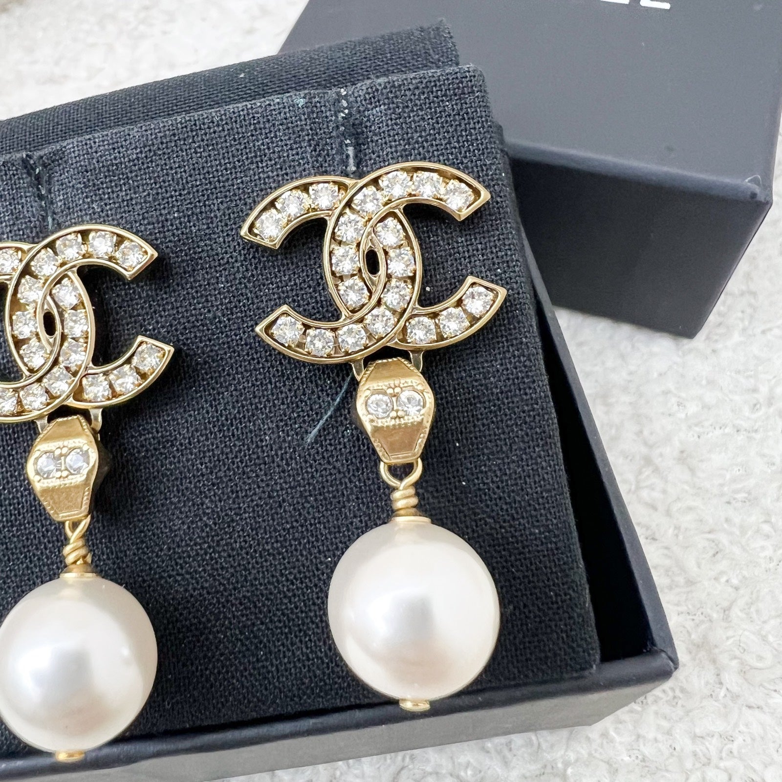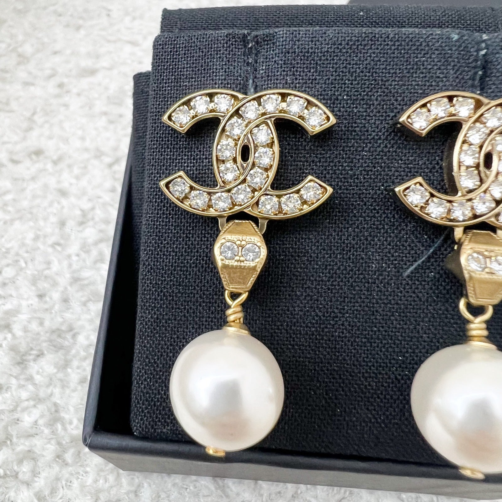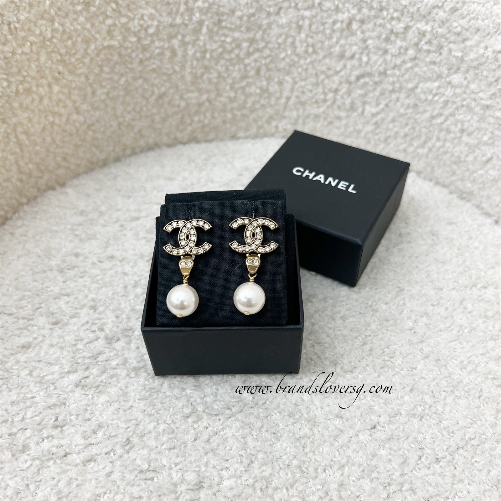 Chanel 18B Dangling Earrings with Crystals, Pearl and AGHW