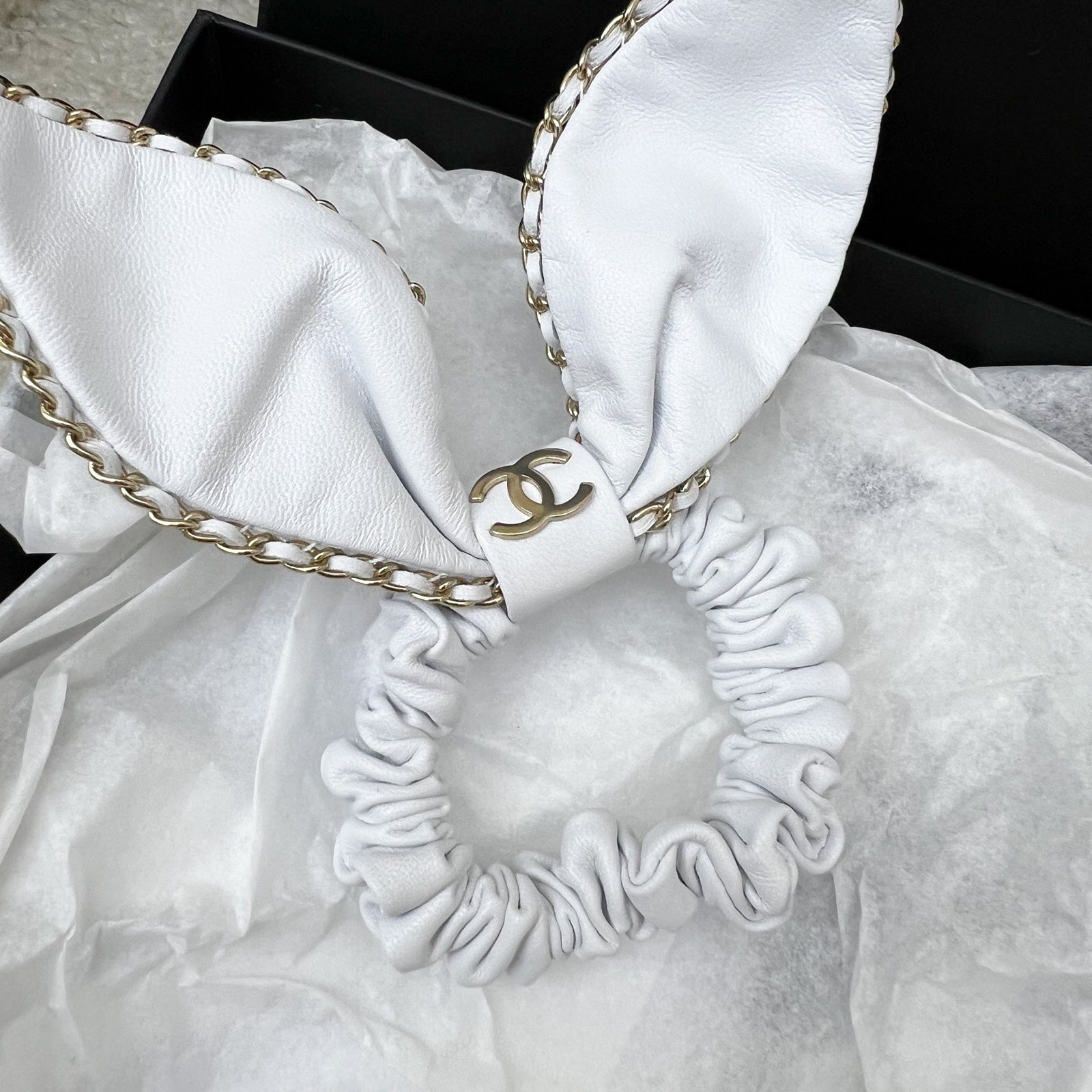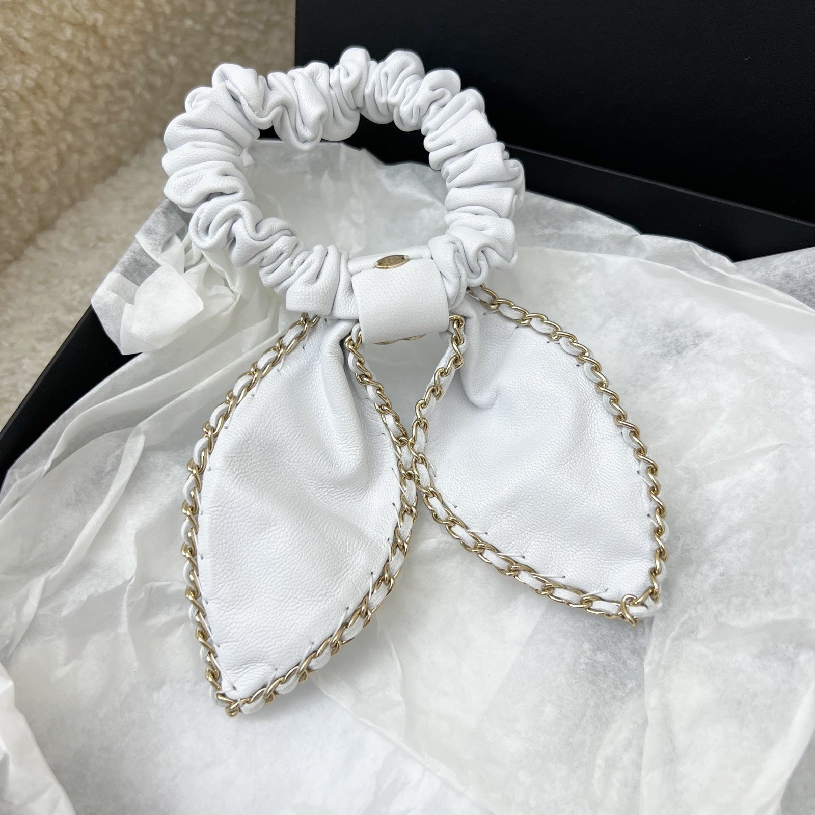 Chanel Hair Scrunchie Tie in White Lambskin and LGHW