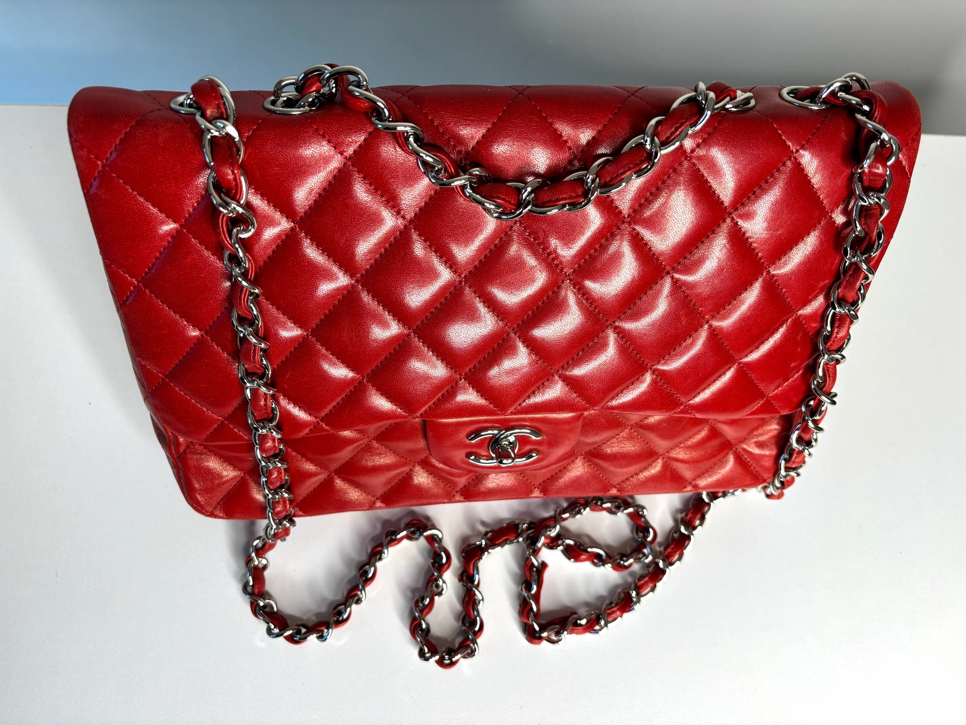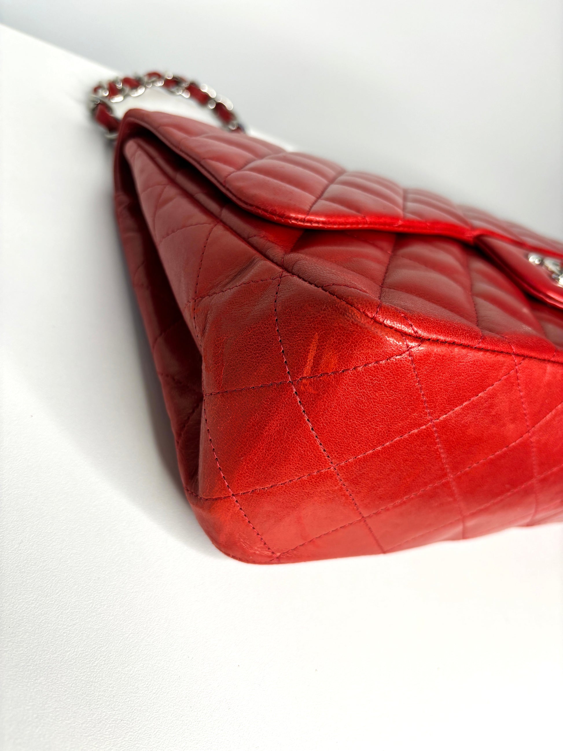 RESERVED for 24 hrs - Chanel Jumbo Red Lambskin Classic Single Flap Shoulder Bag - Preloved