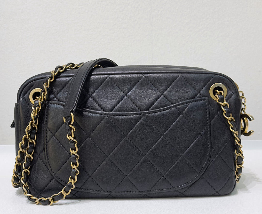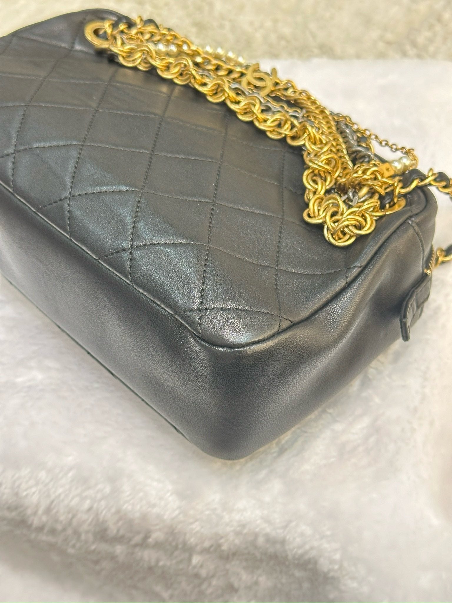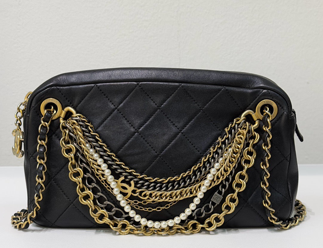 Chanel Lambskin Quilted All About Chains Camera Bag Black