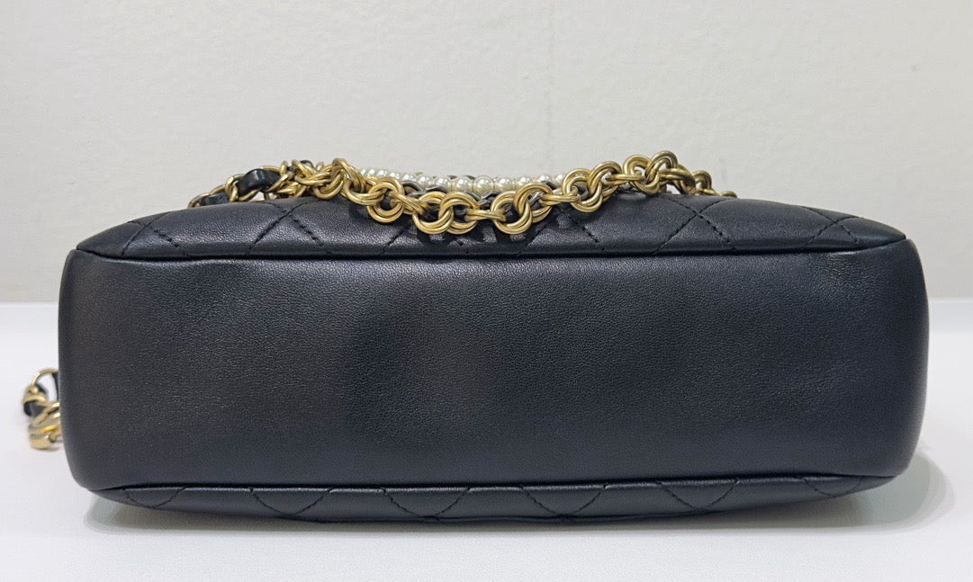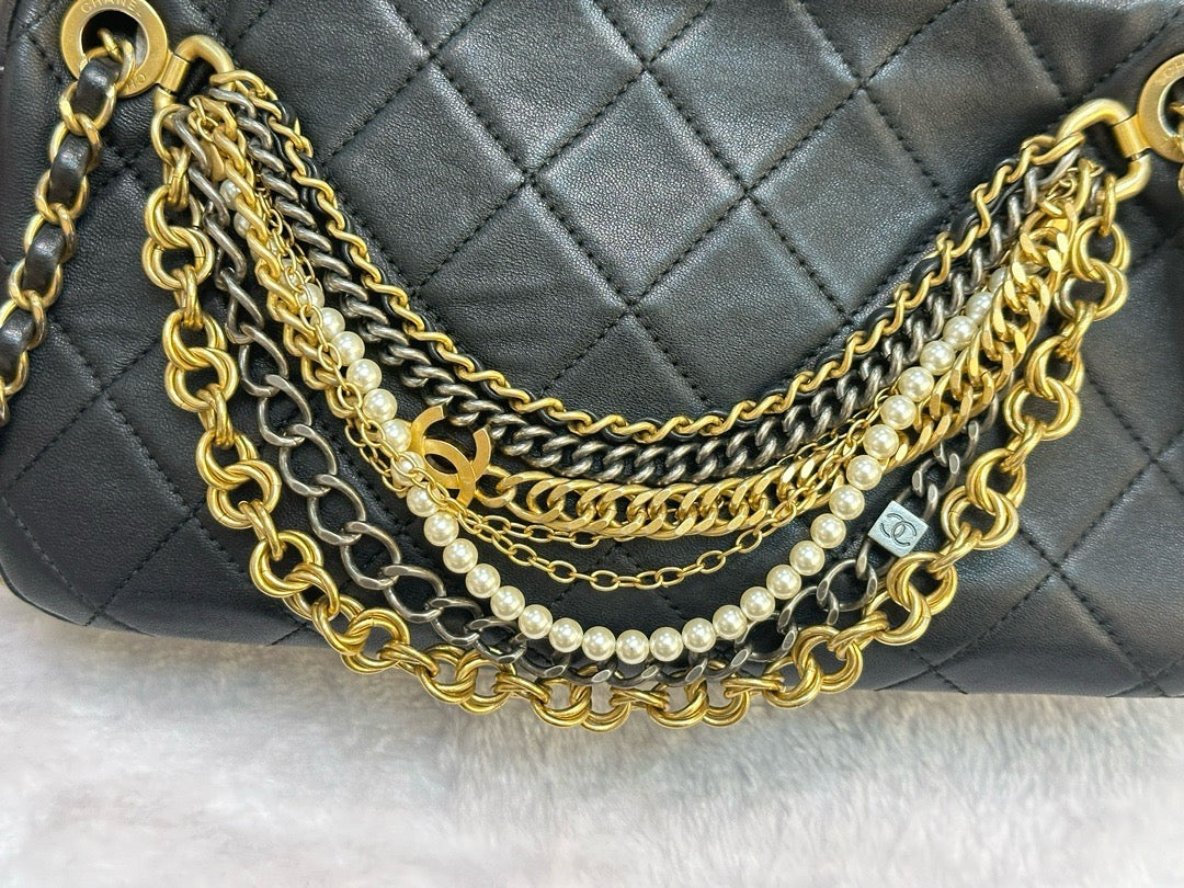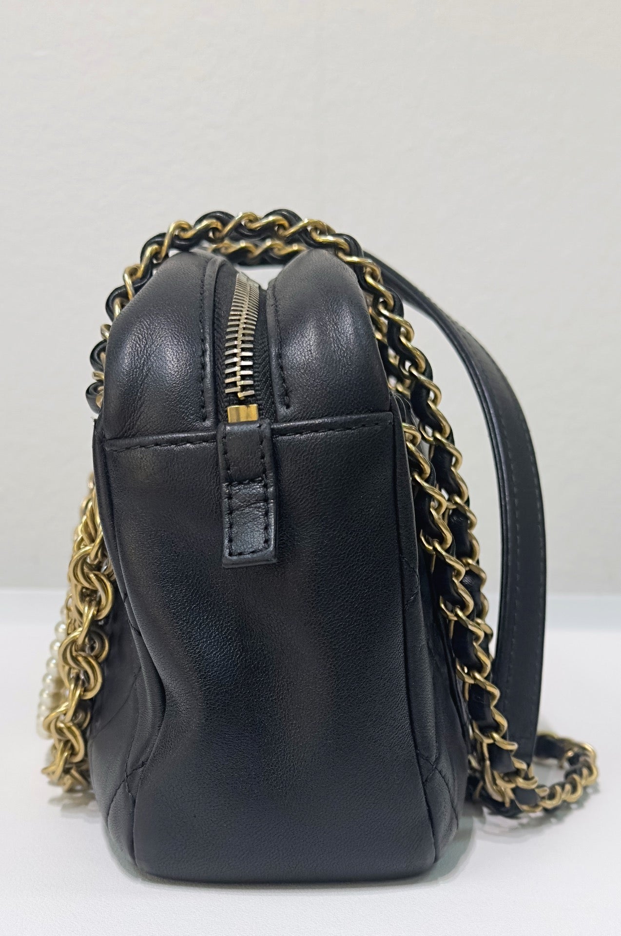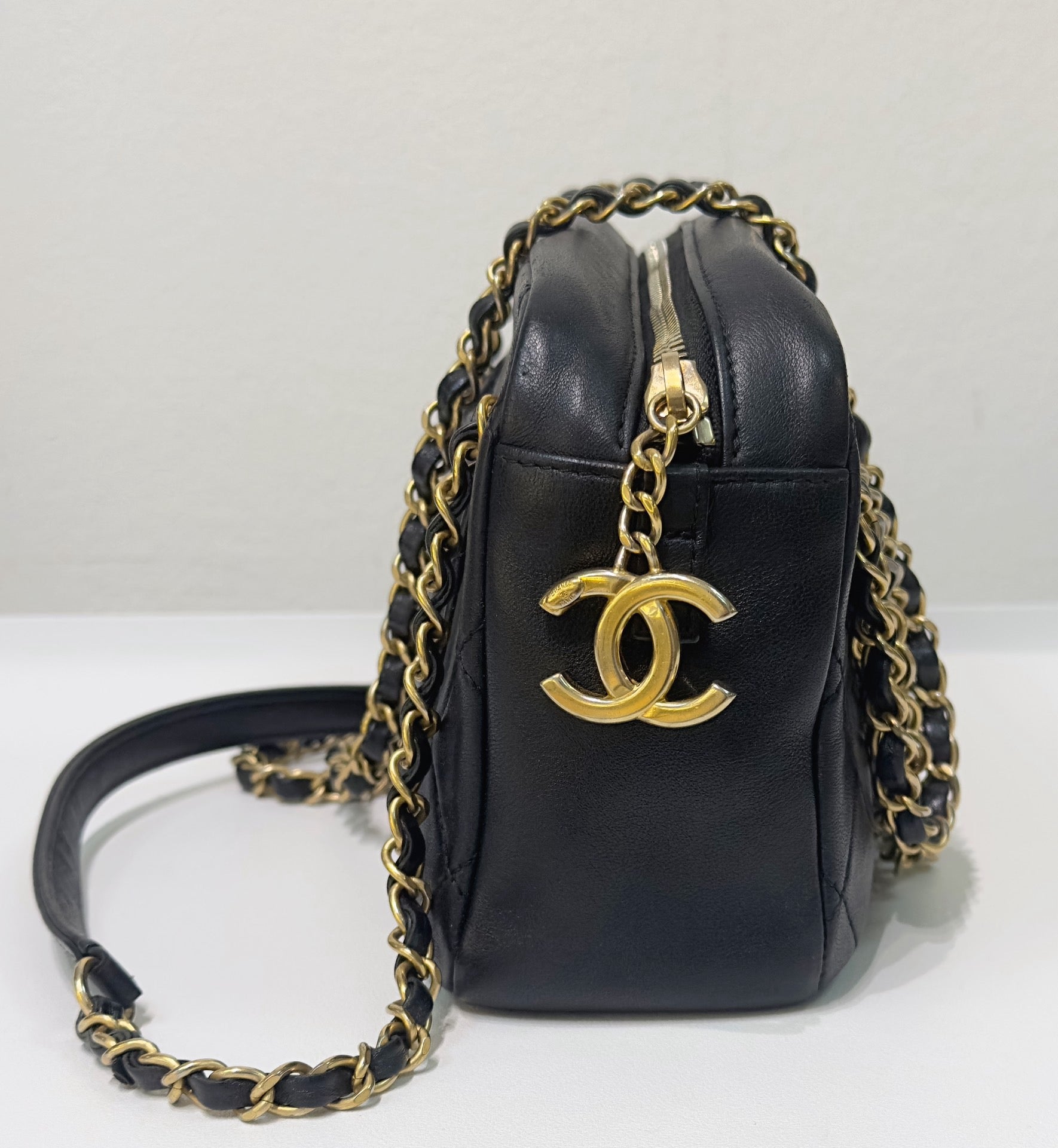 Chanel Lambskin Quilted All About Chains Camera Bag Black