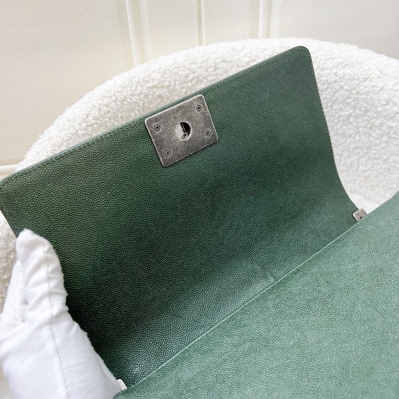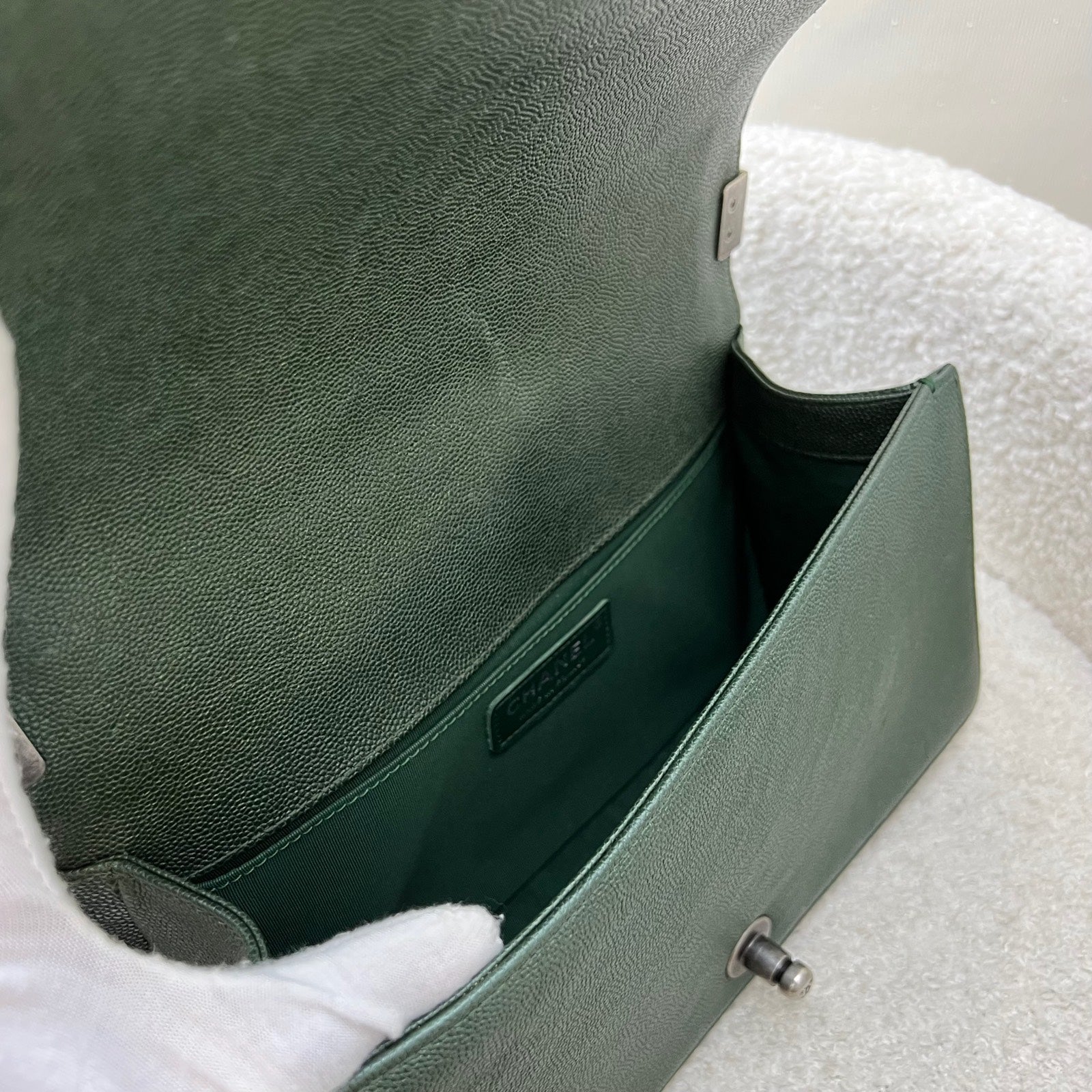 Est. Retail: $10,300 and caviar boy flaps are very hard to get in boutiques. Save close to 5.5k! Gorgeous shade of forest green!