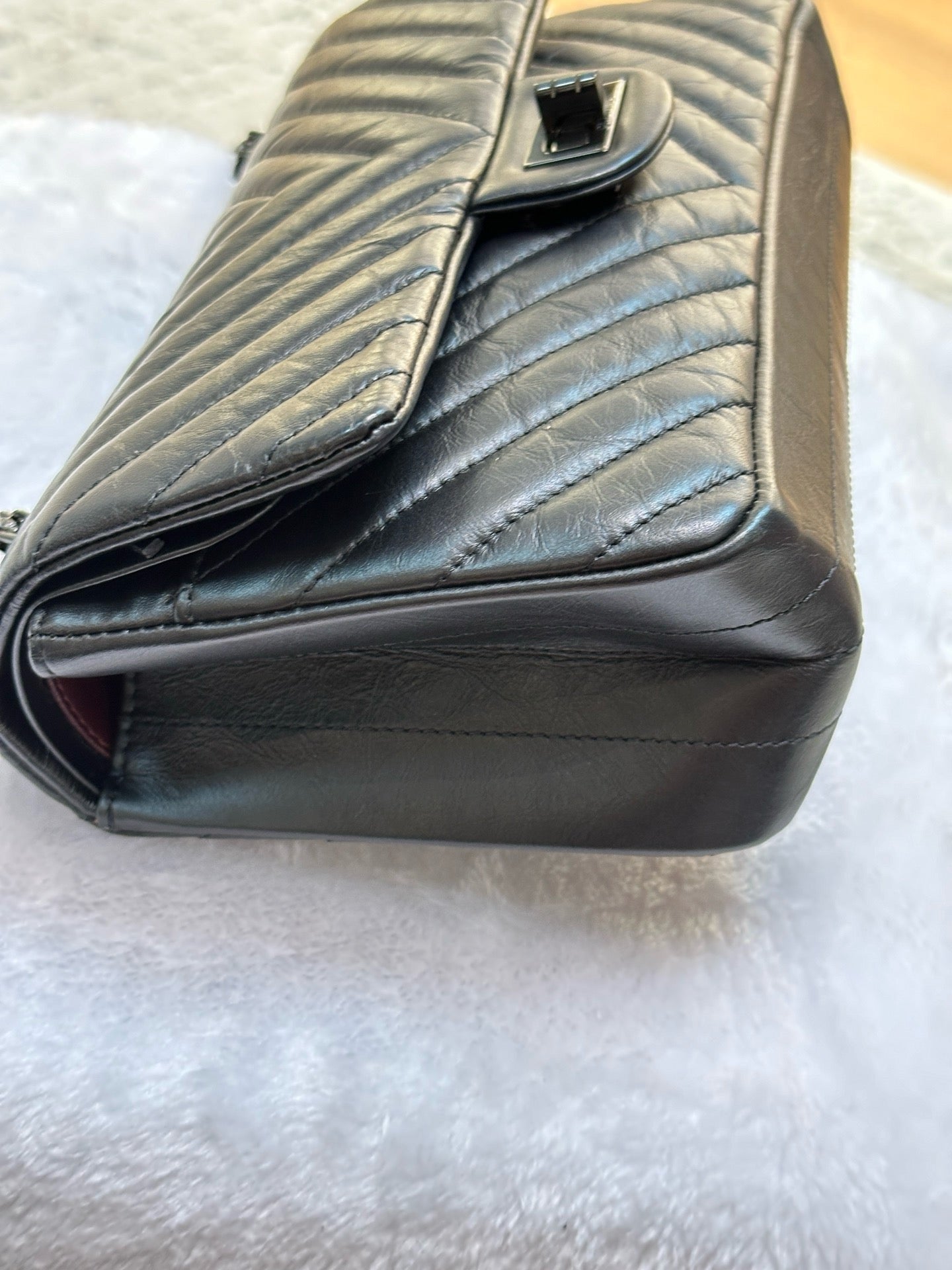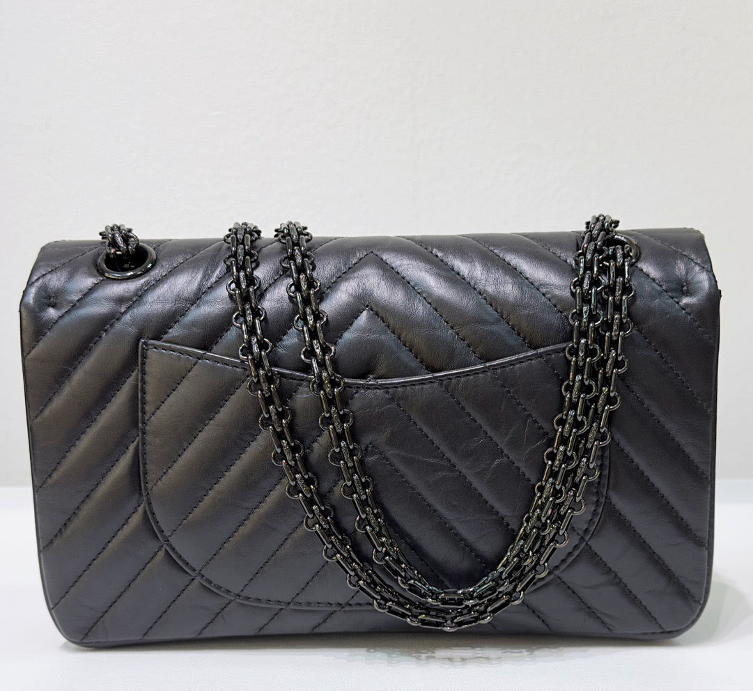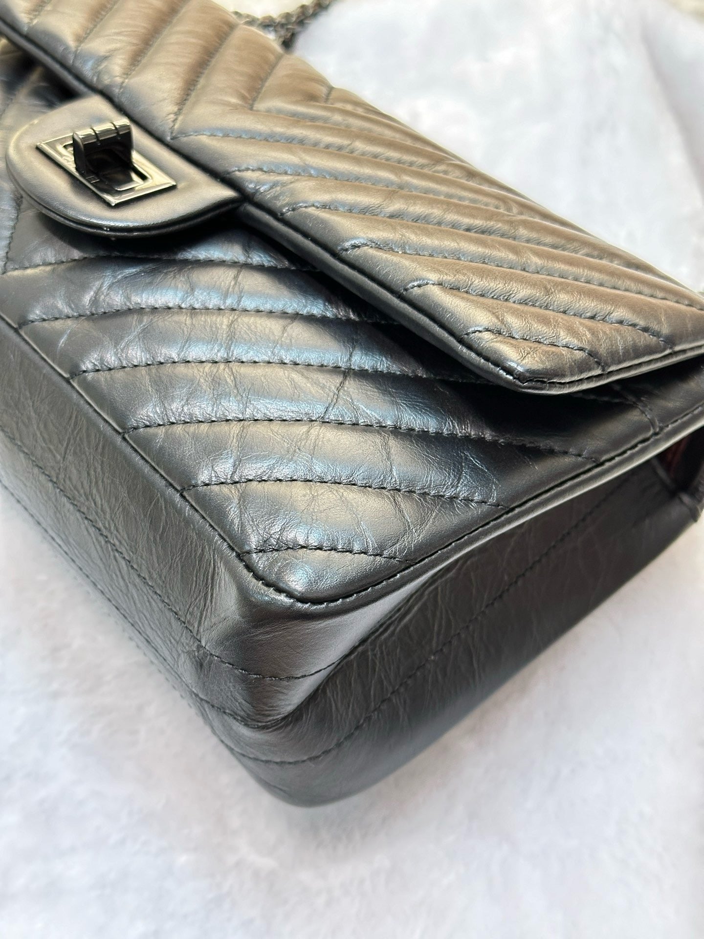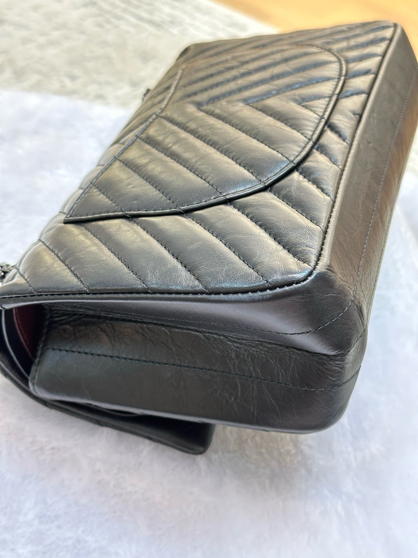 Chanel Small Aged Calfskin Chevron Quilted 2.55 Reissue 225 Flap So Black