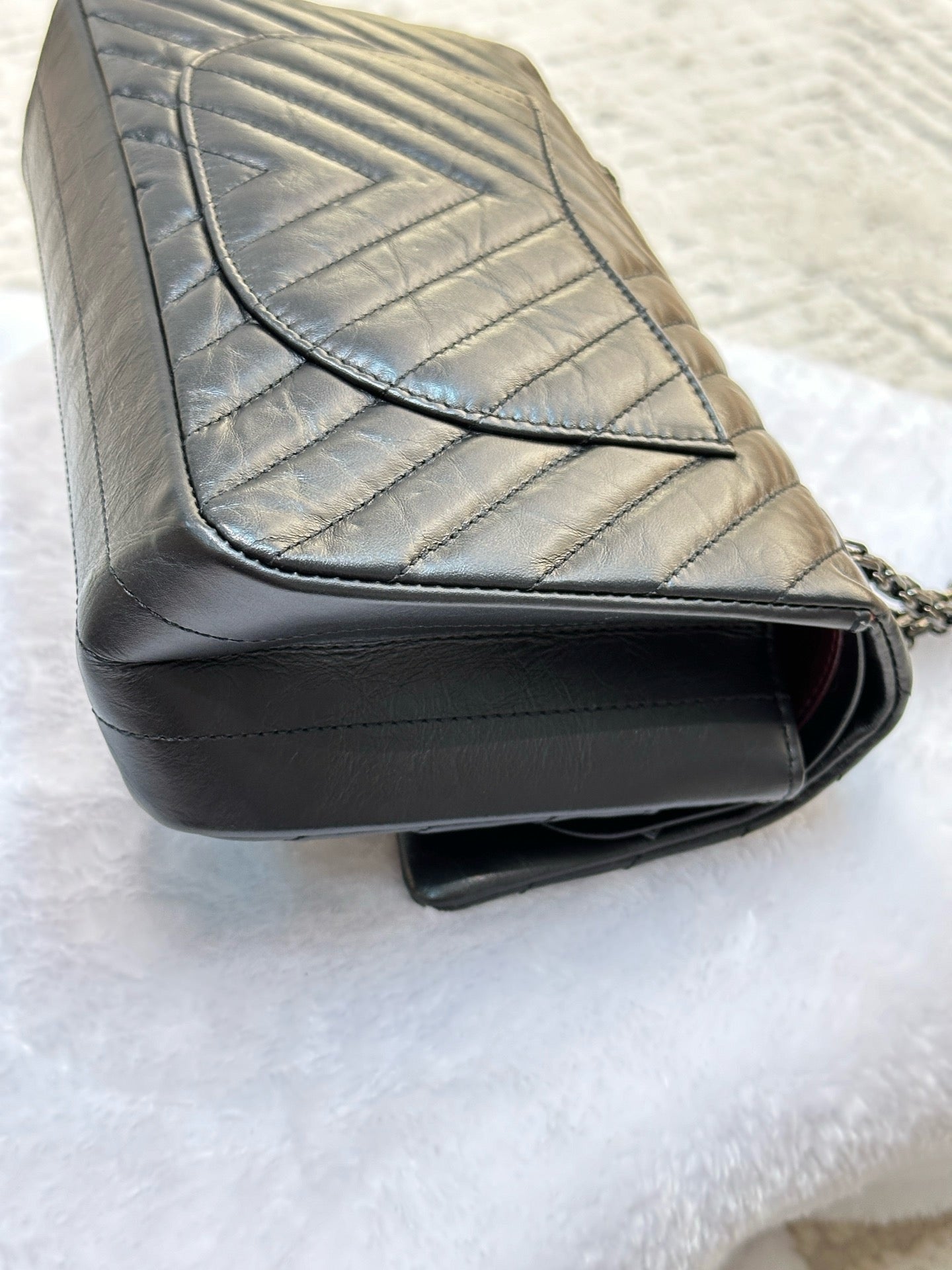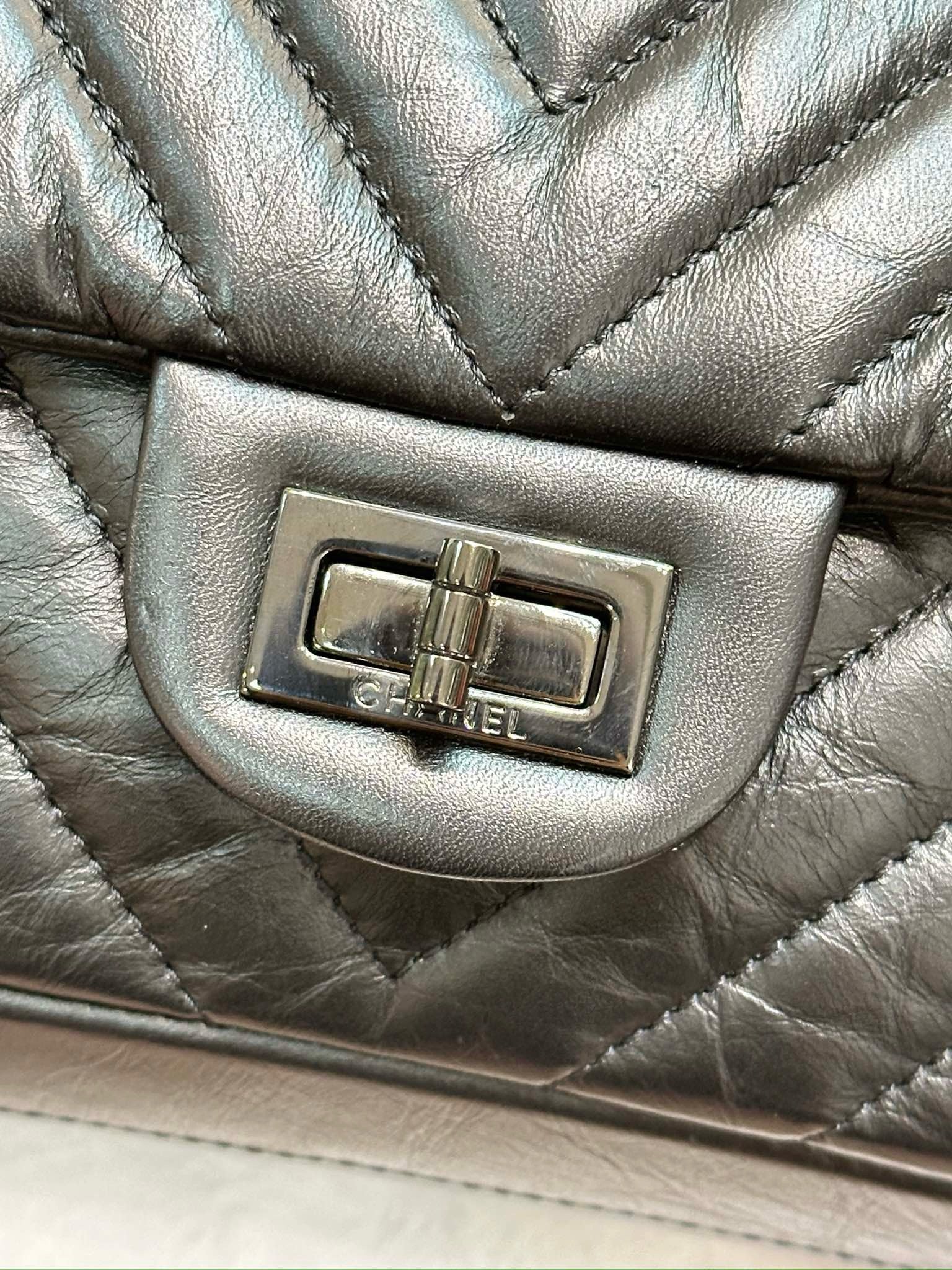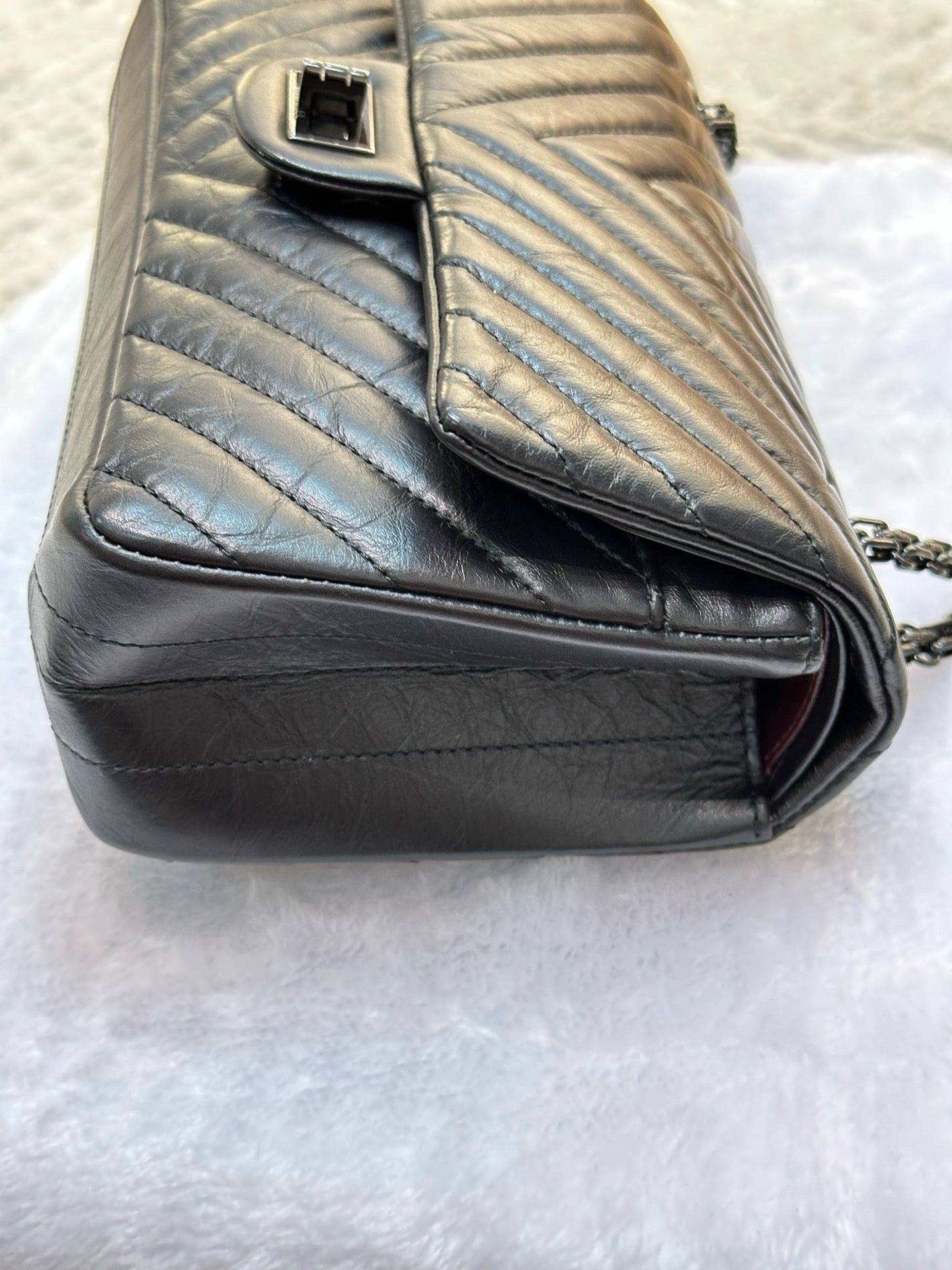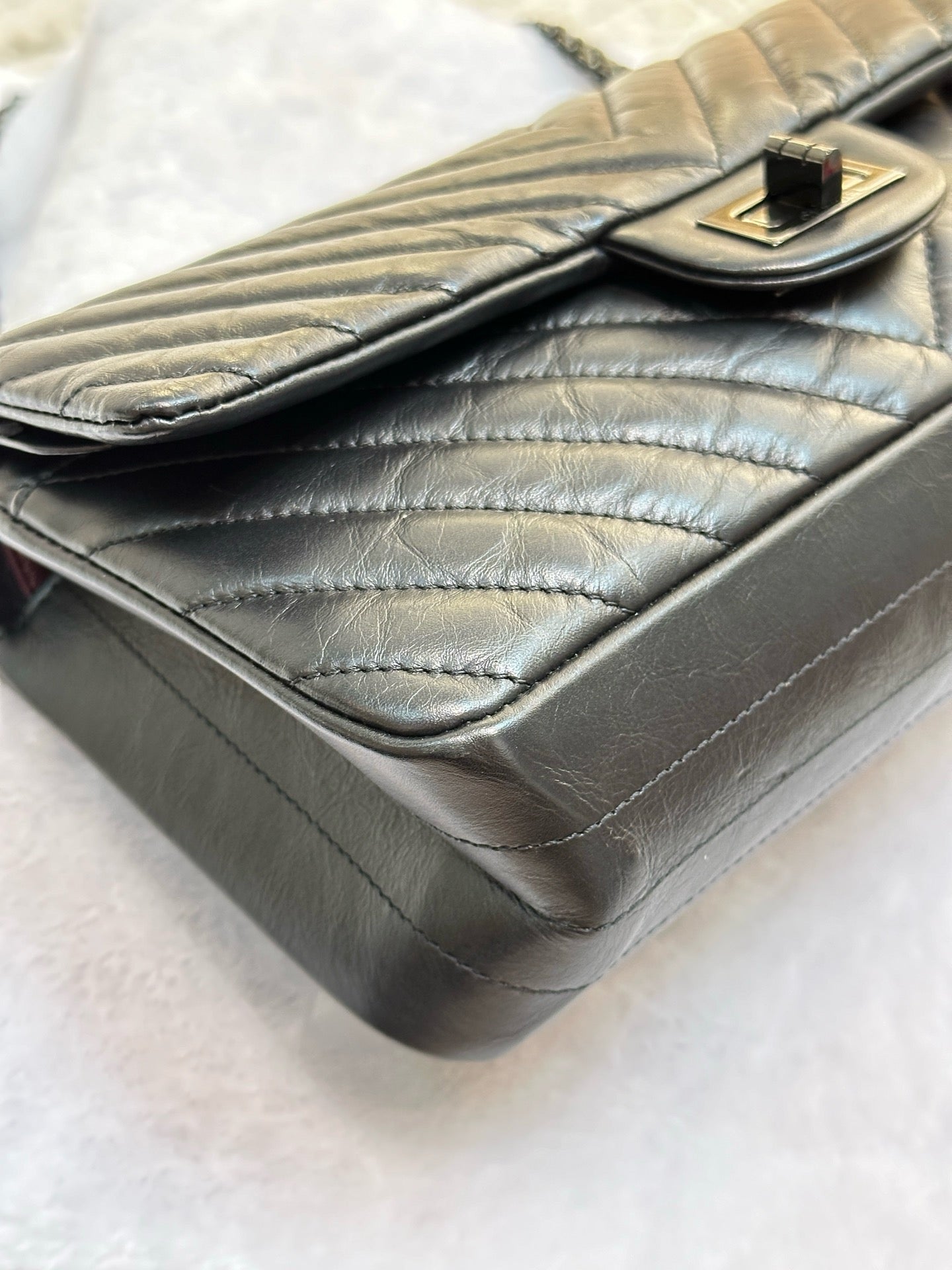 Chanel Small Aged Calfskin Chevron Quilted 2.55 Reissue 225 Flap So Black