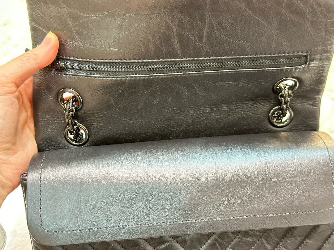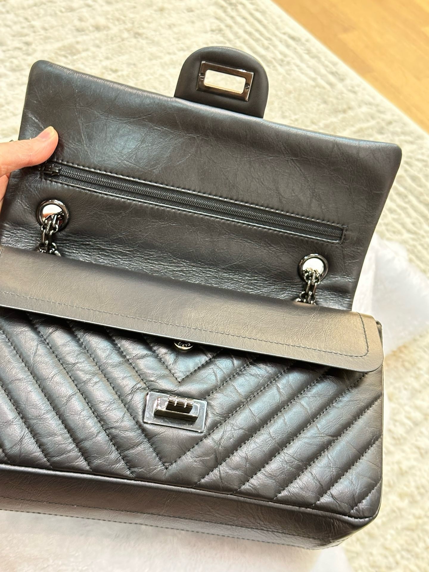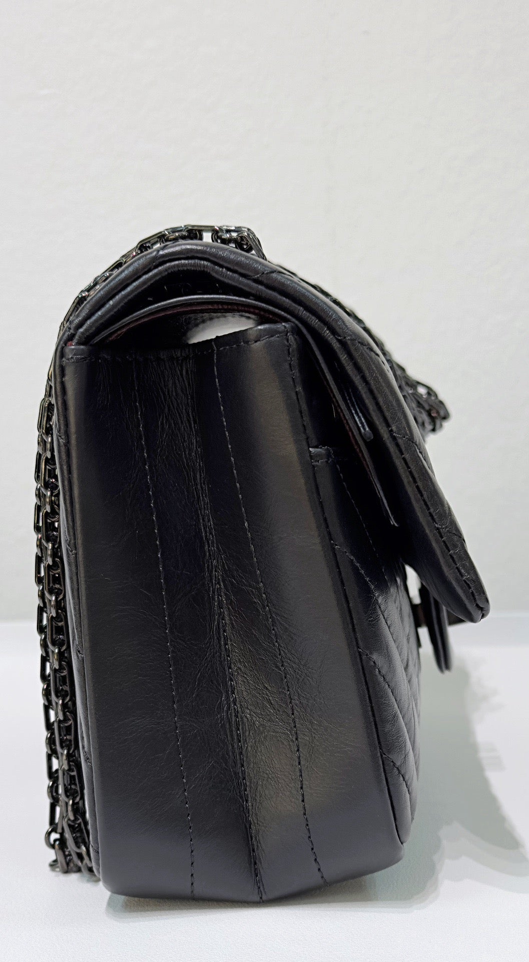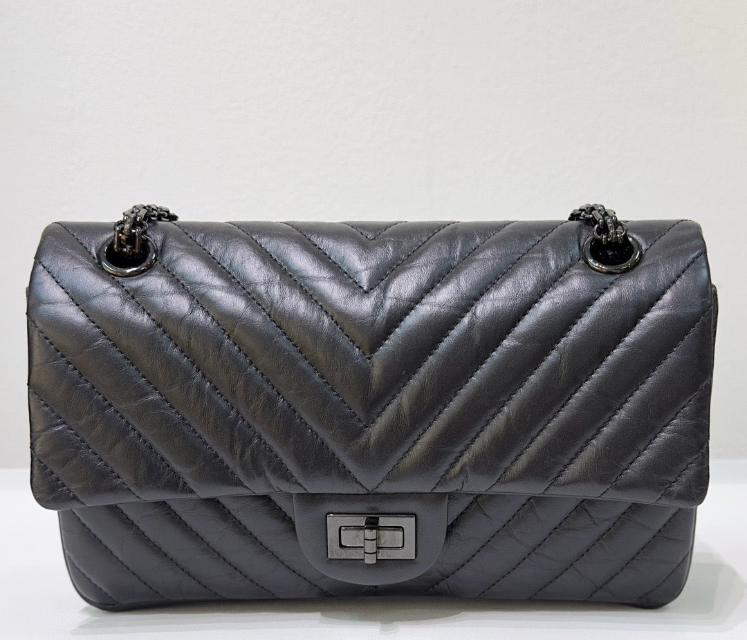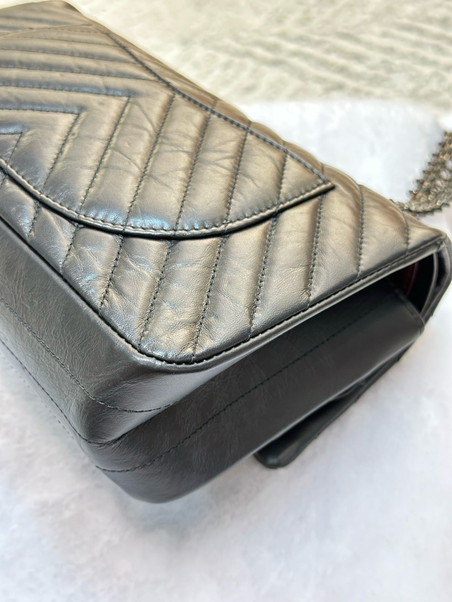 Chanel Small Aged Calfskin Chevron Quilted 2.55 Reissue 225 Flap So Black