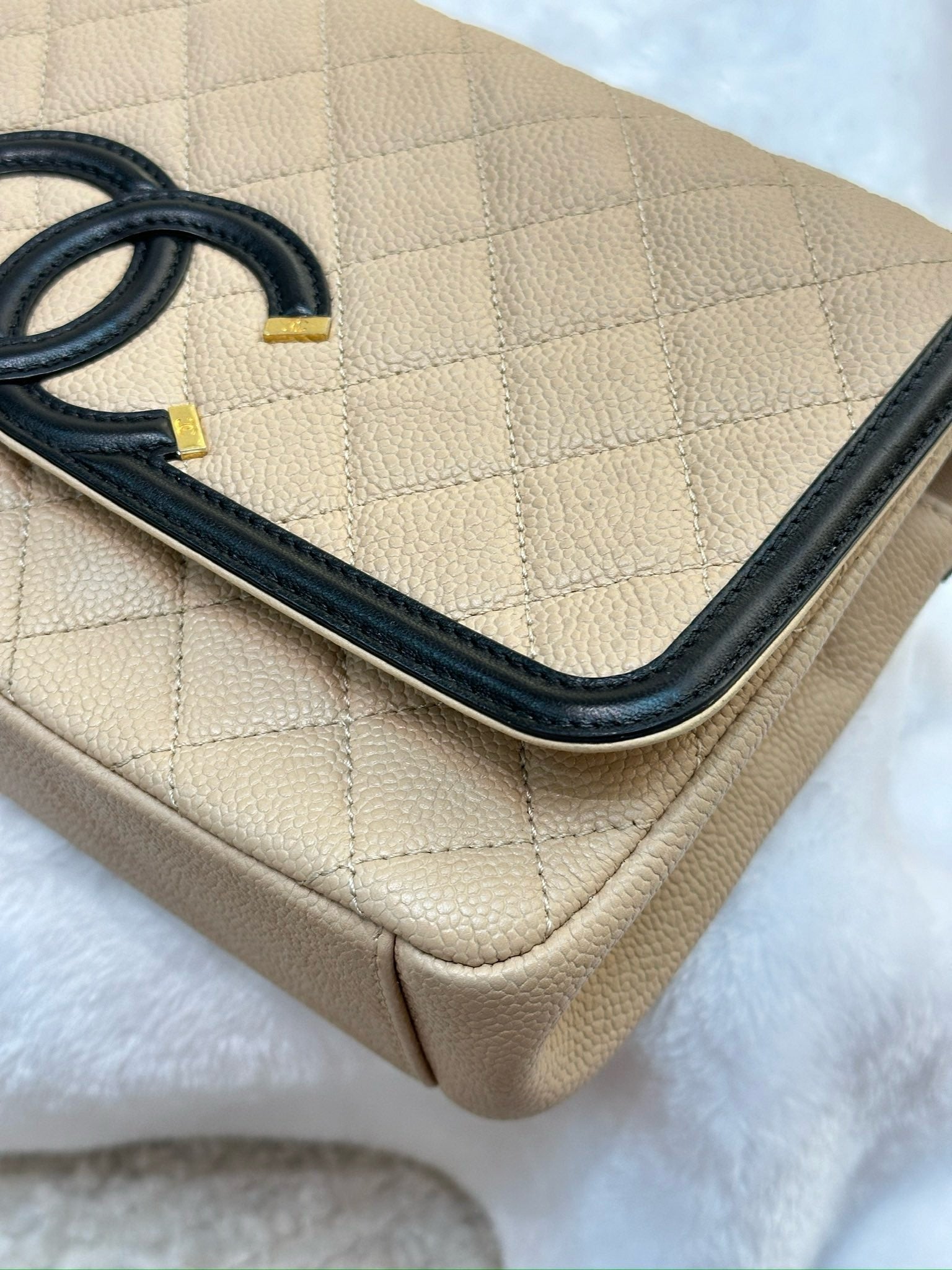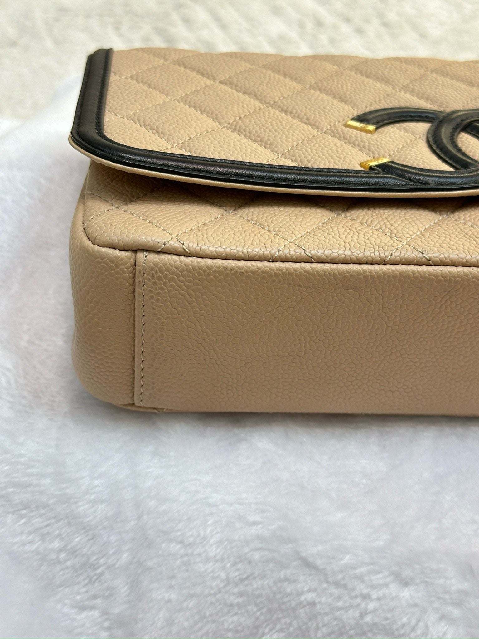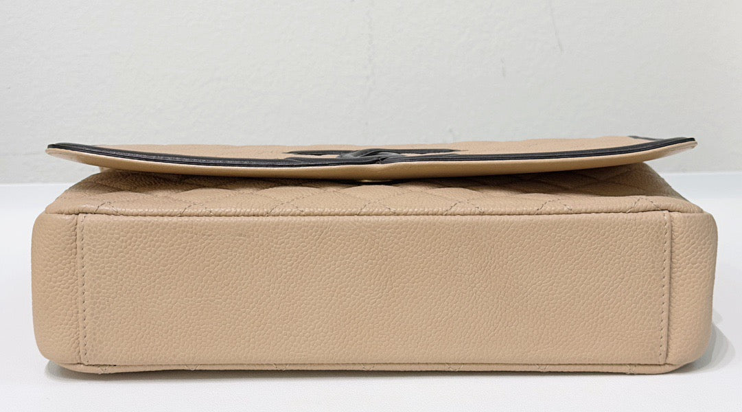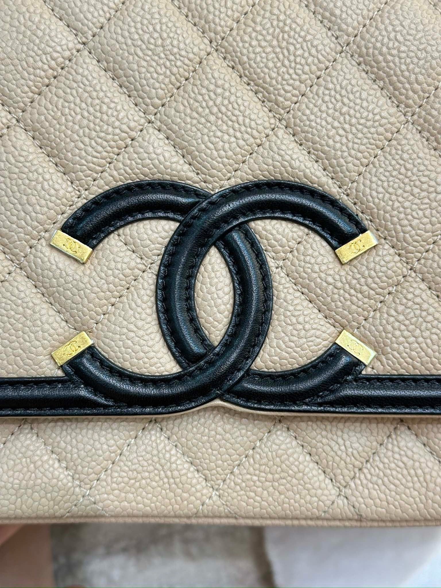 Chanel Medium Caviar Quilted CC Filigree Flap Beige Black