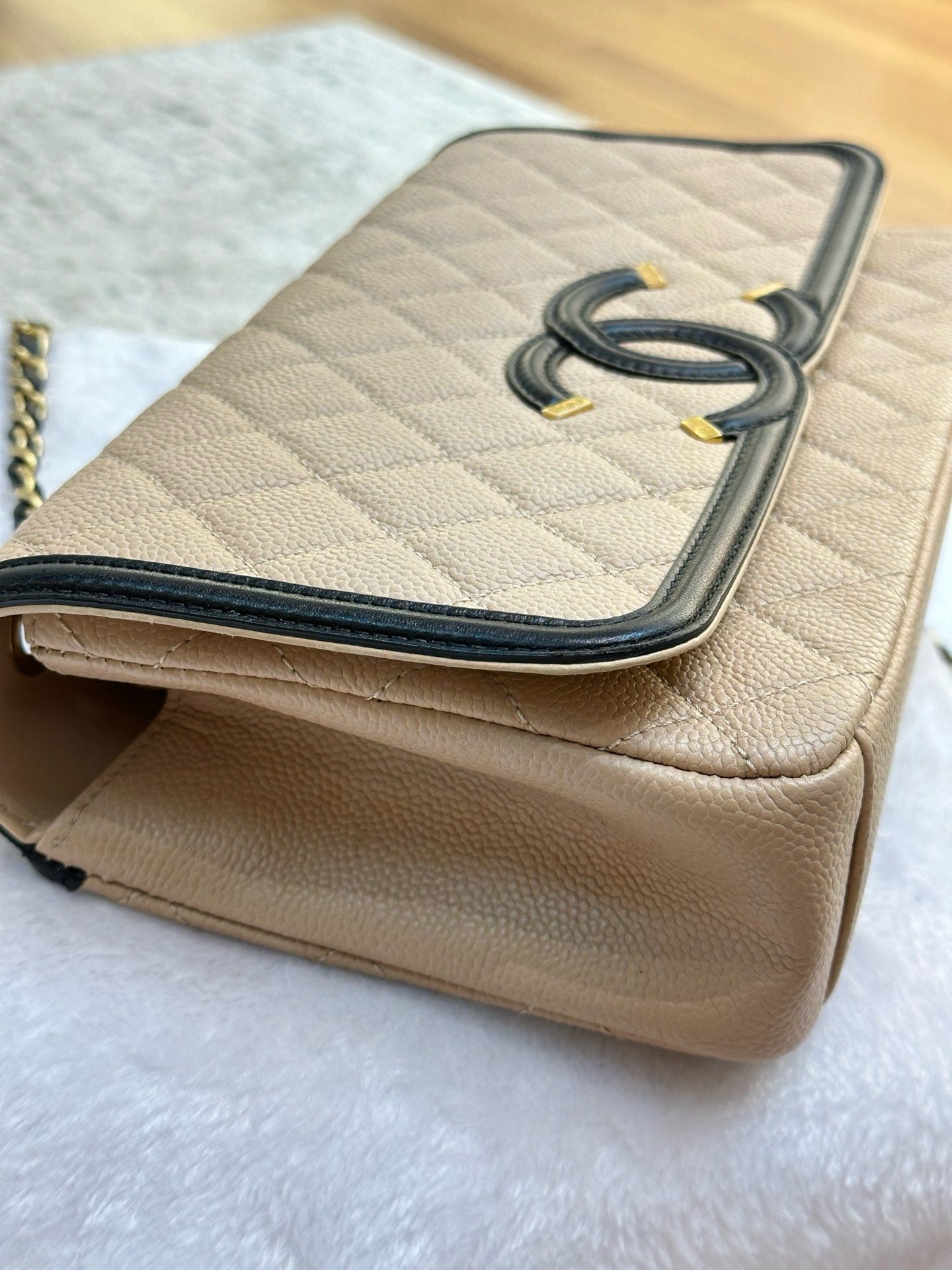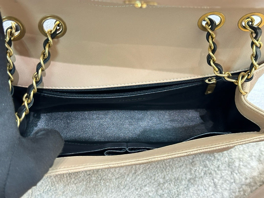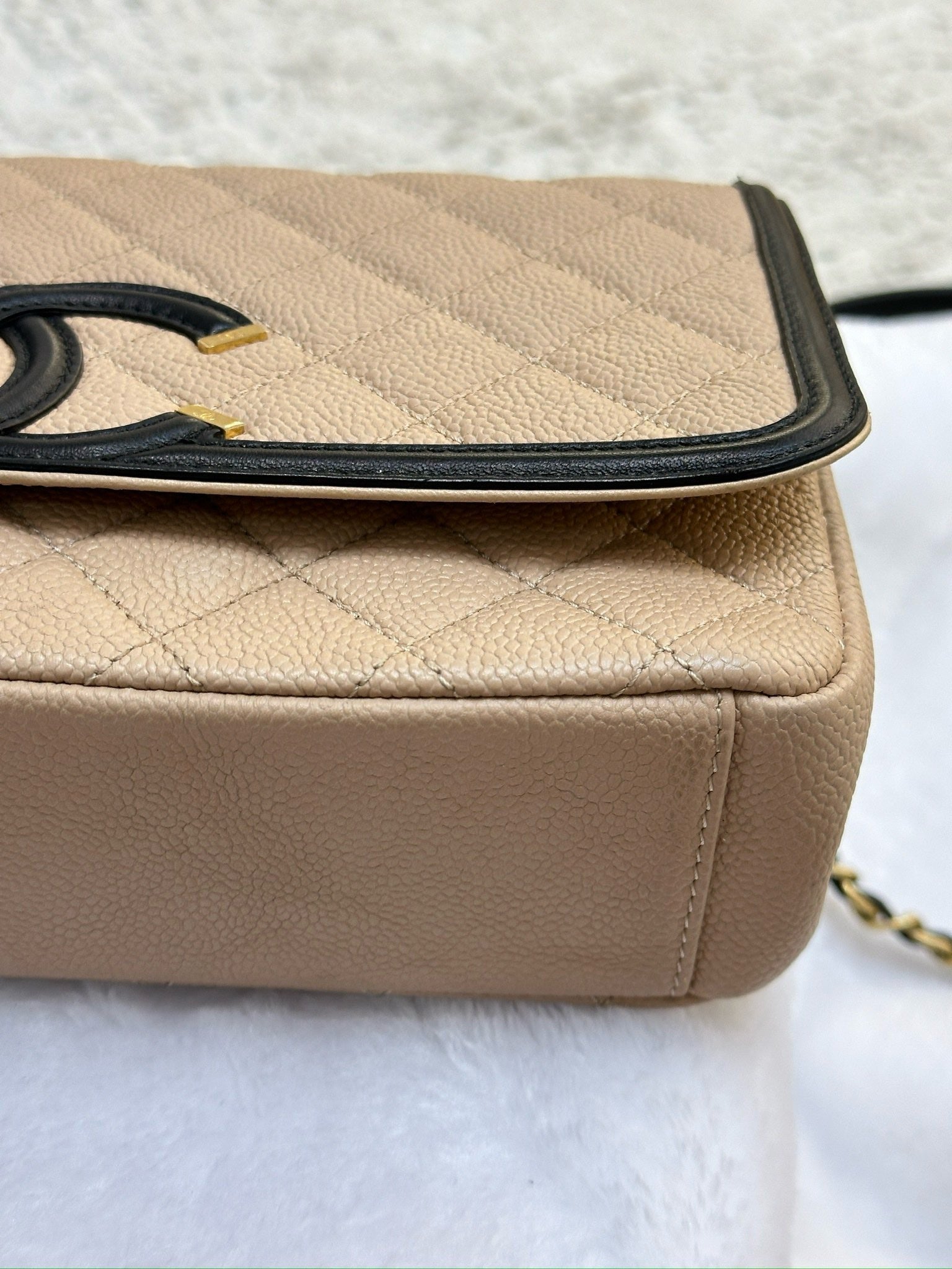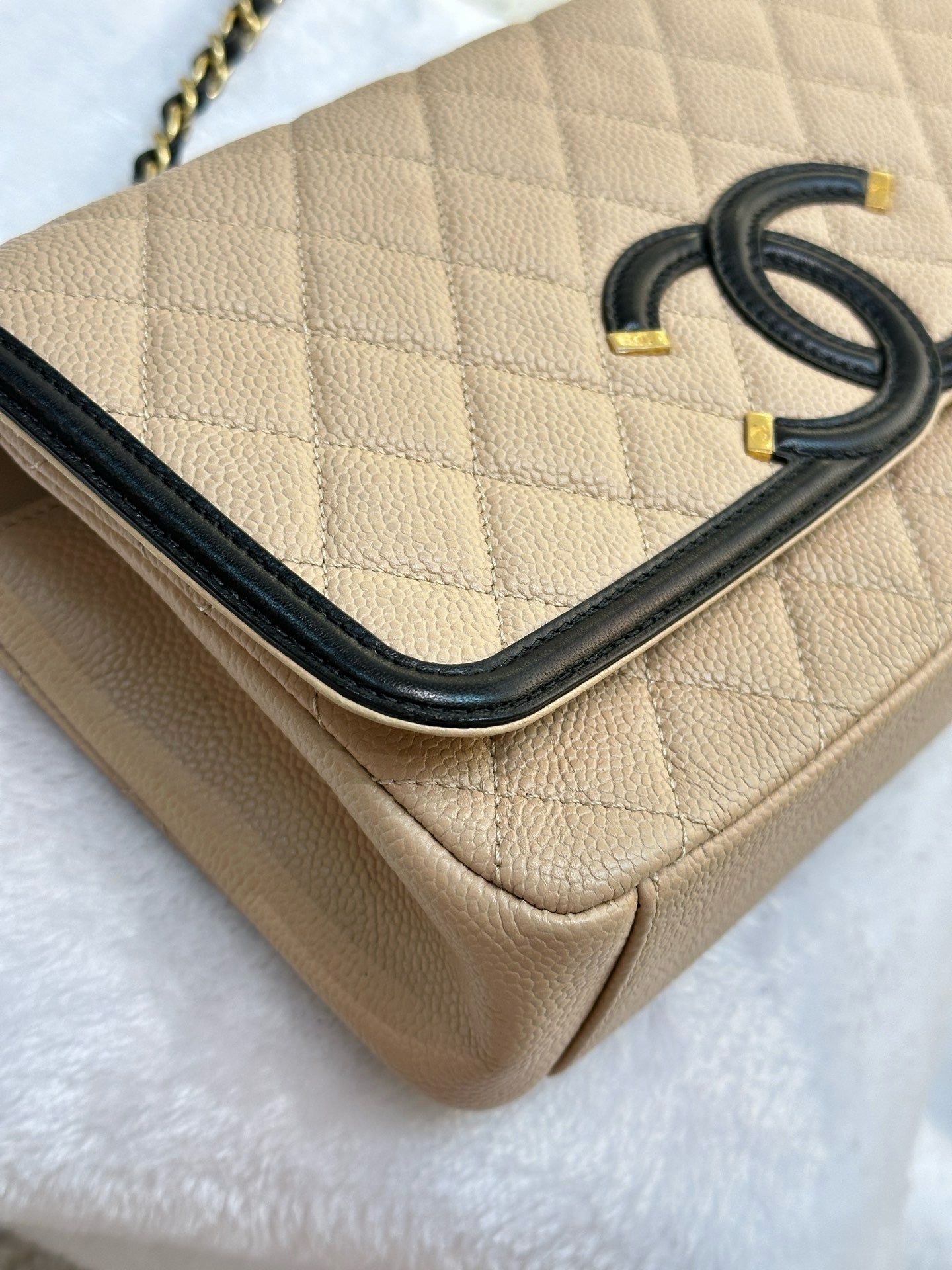 Chanel Medium Caviar Quilted CC Filigree Flap Beige Black