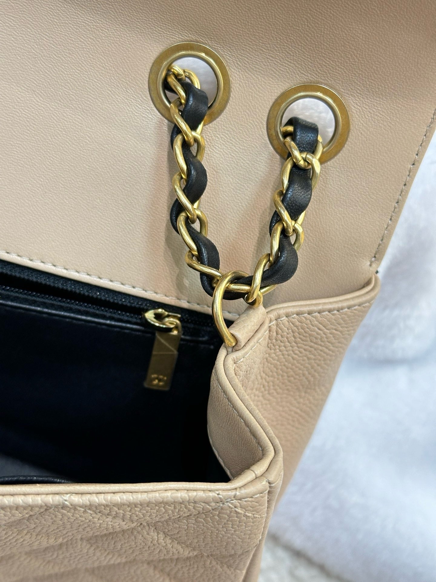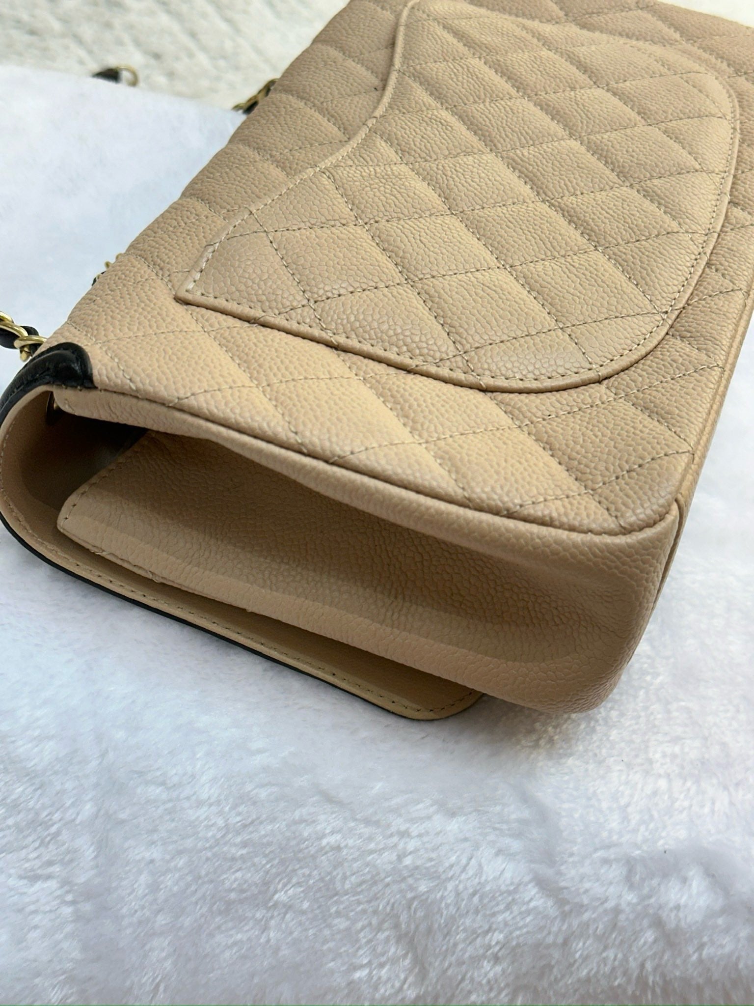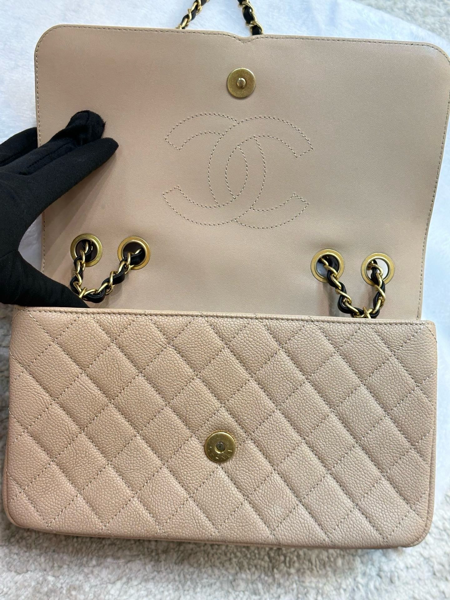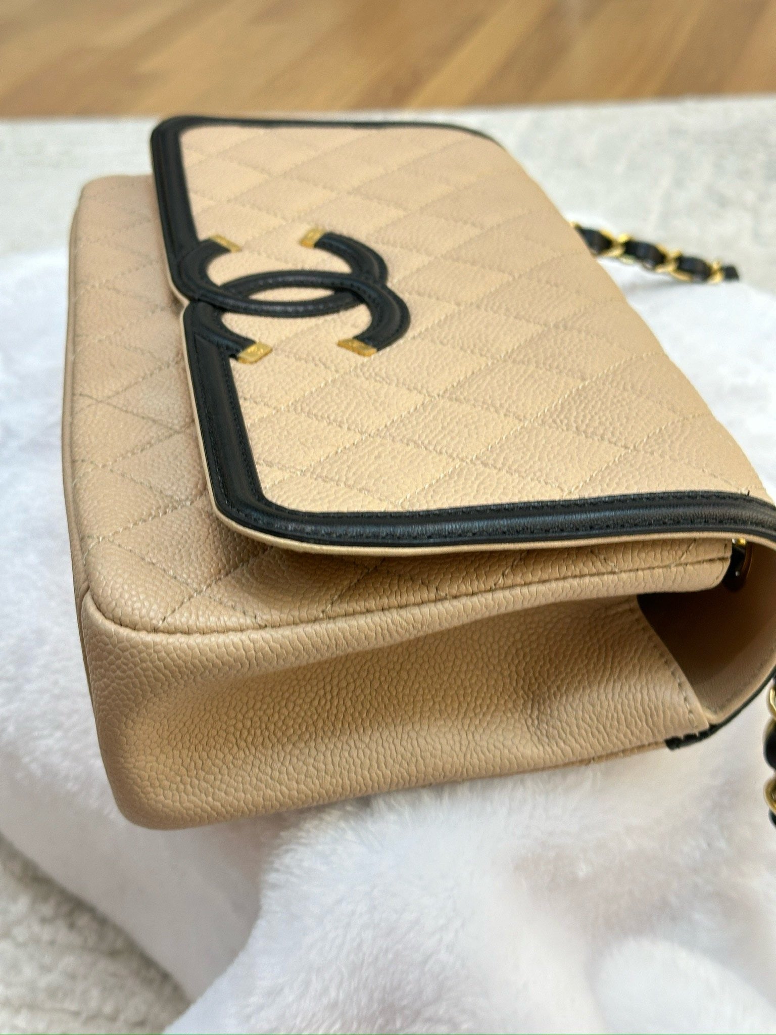Chanel Medium Caviar Quilted CC Filigree Flap Beige Black