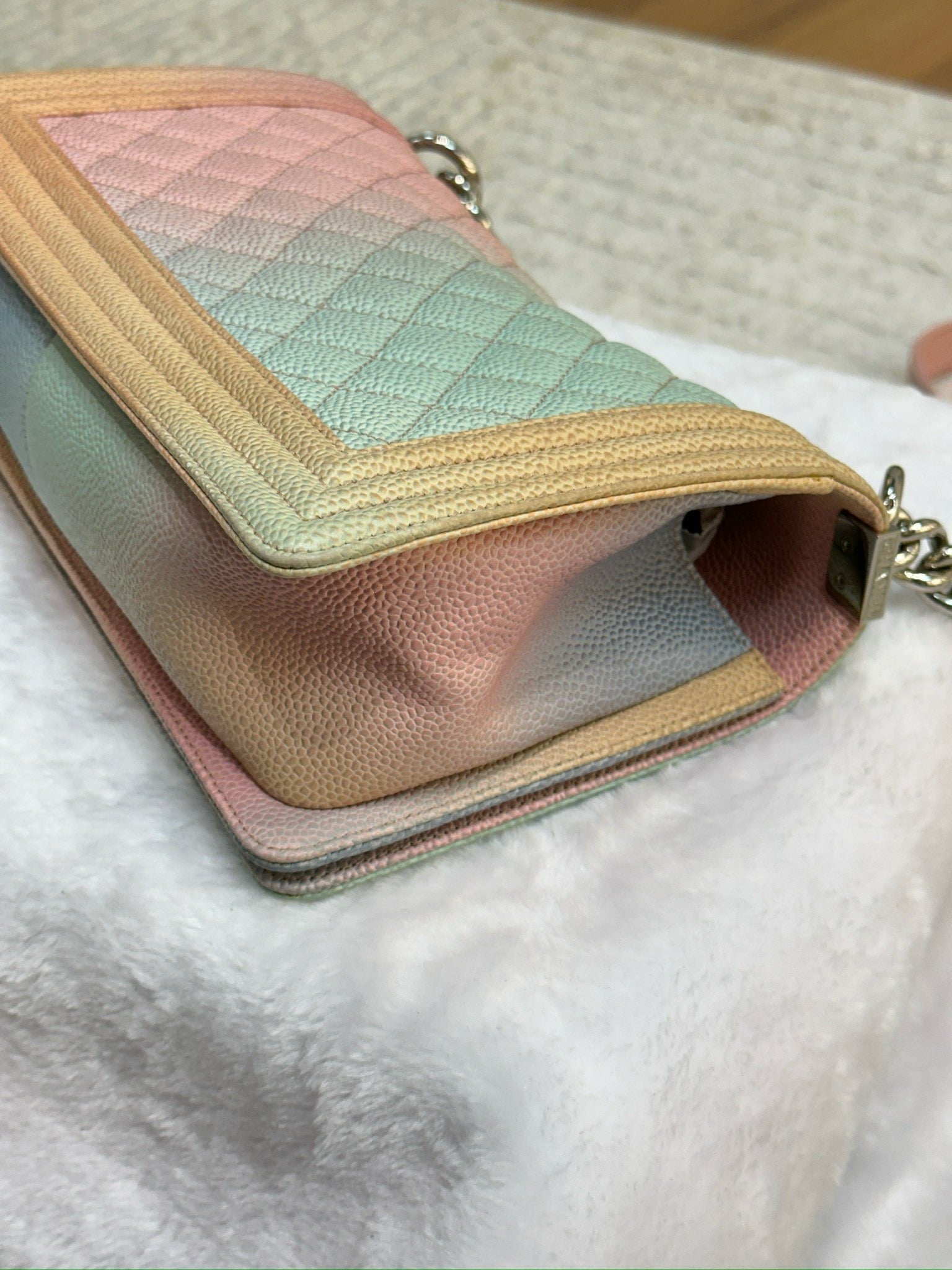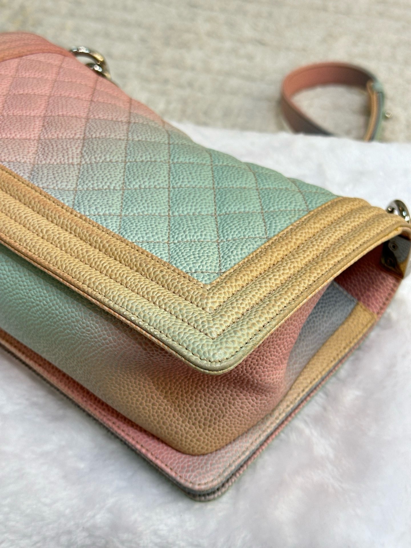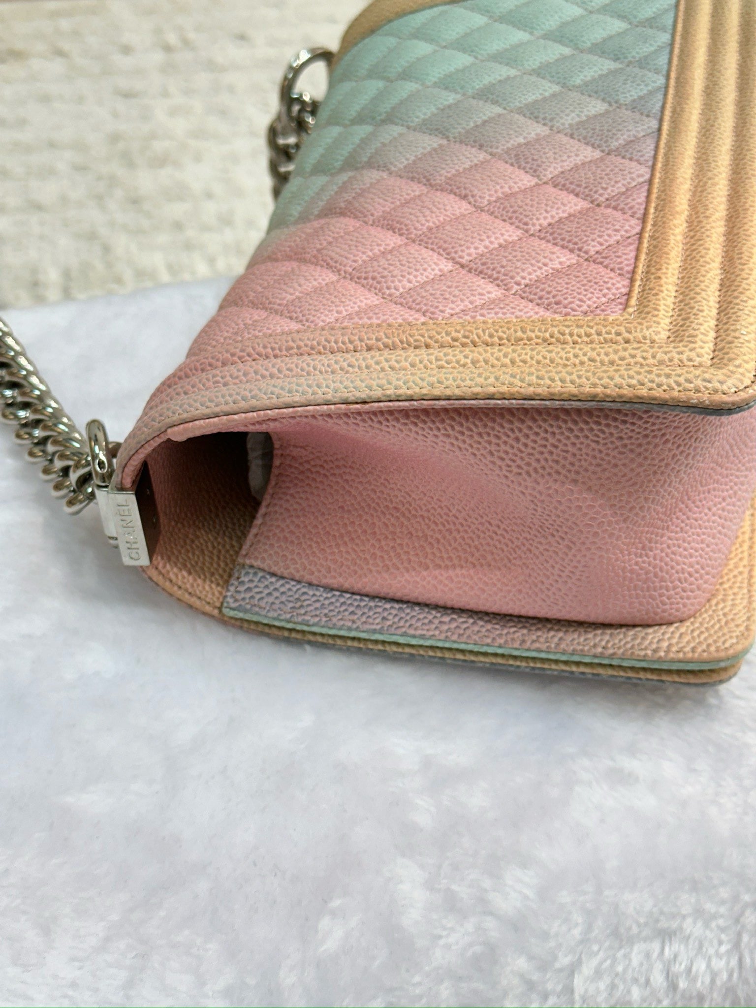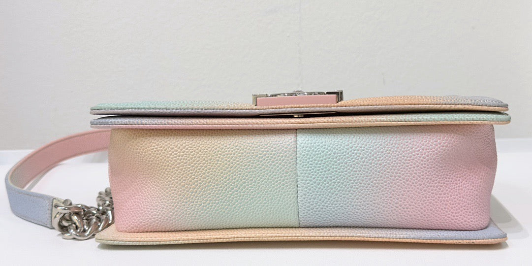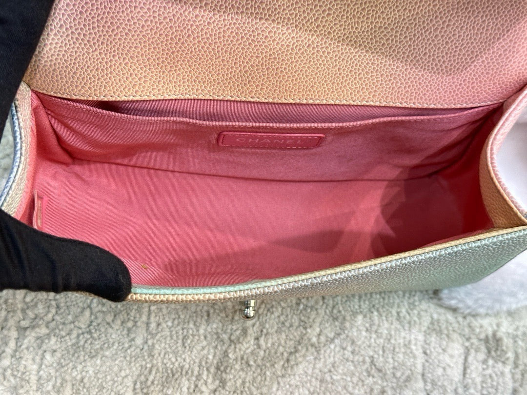 Chanel Medium Caviar Quilted Rainbow LeBoy Flap Pink Multicolor