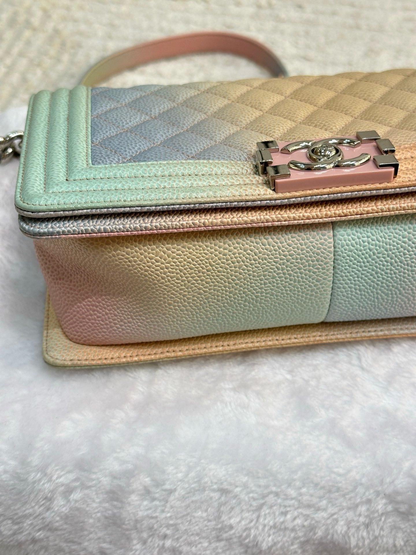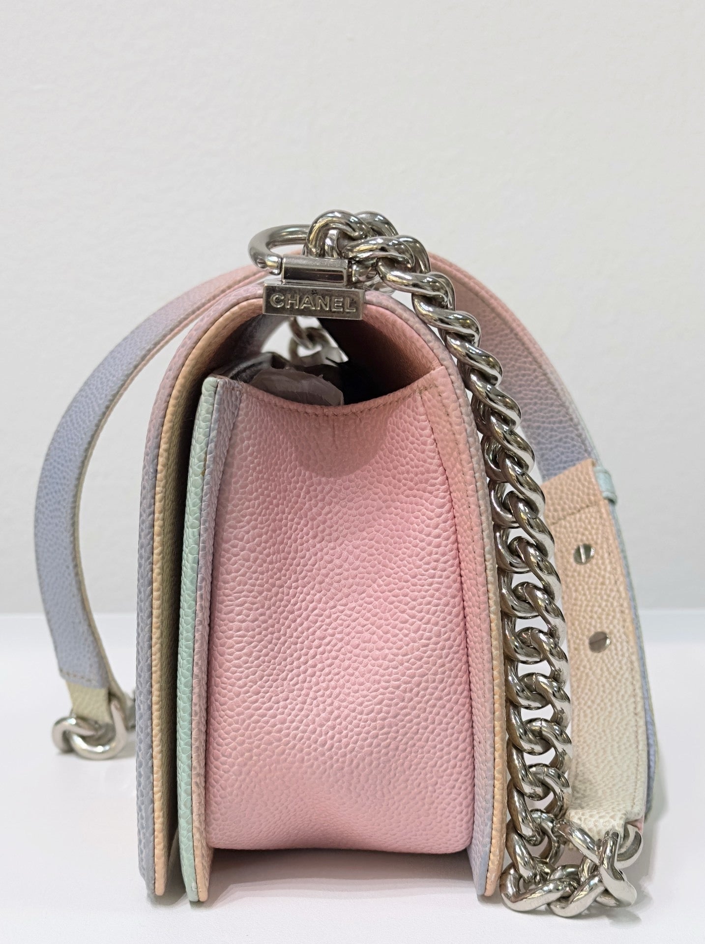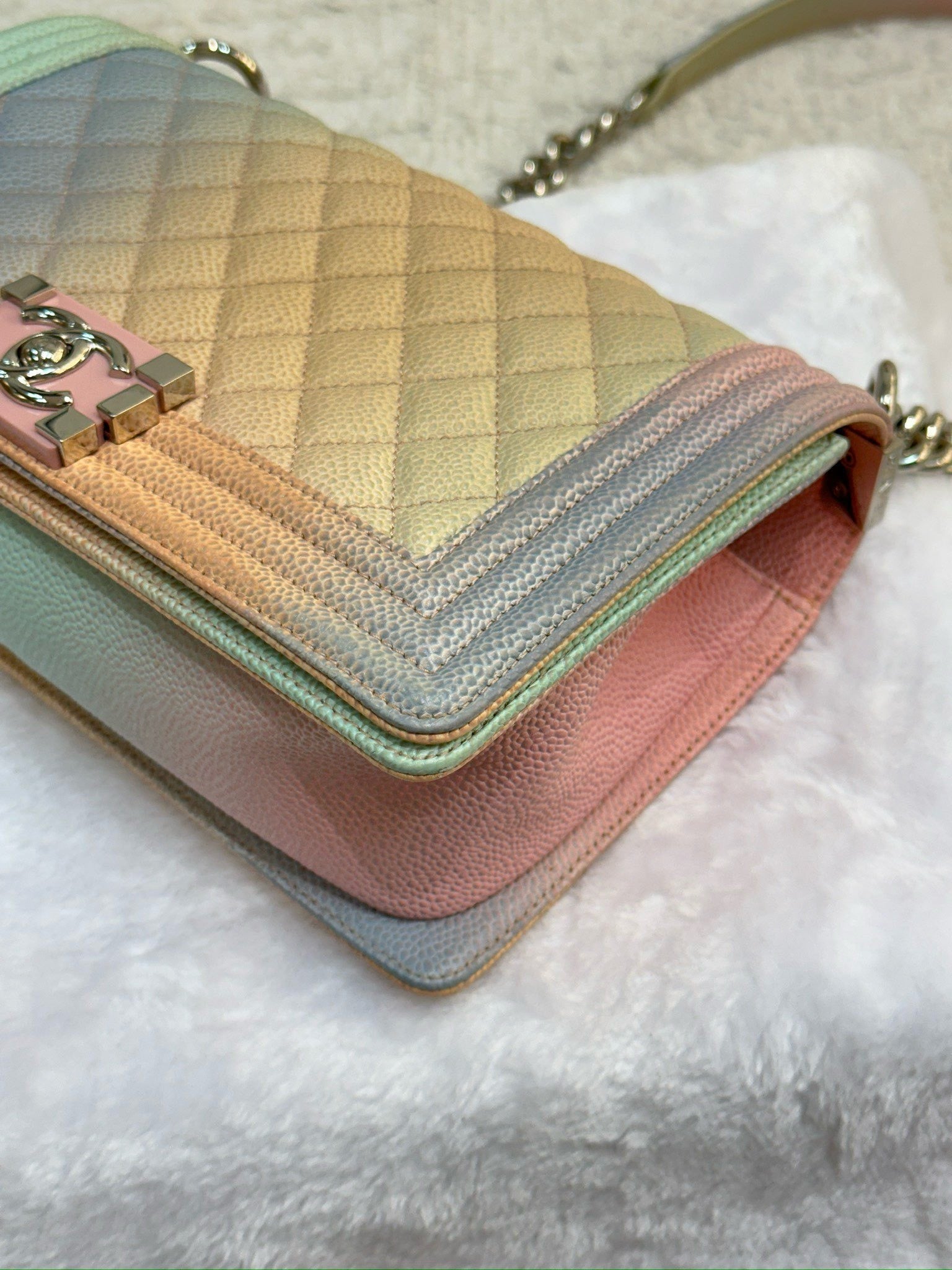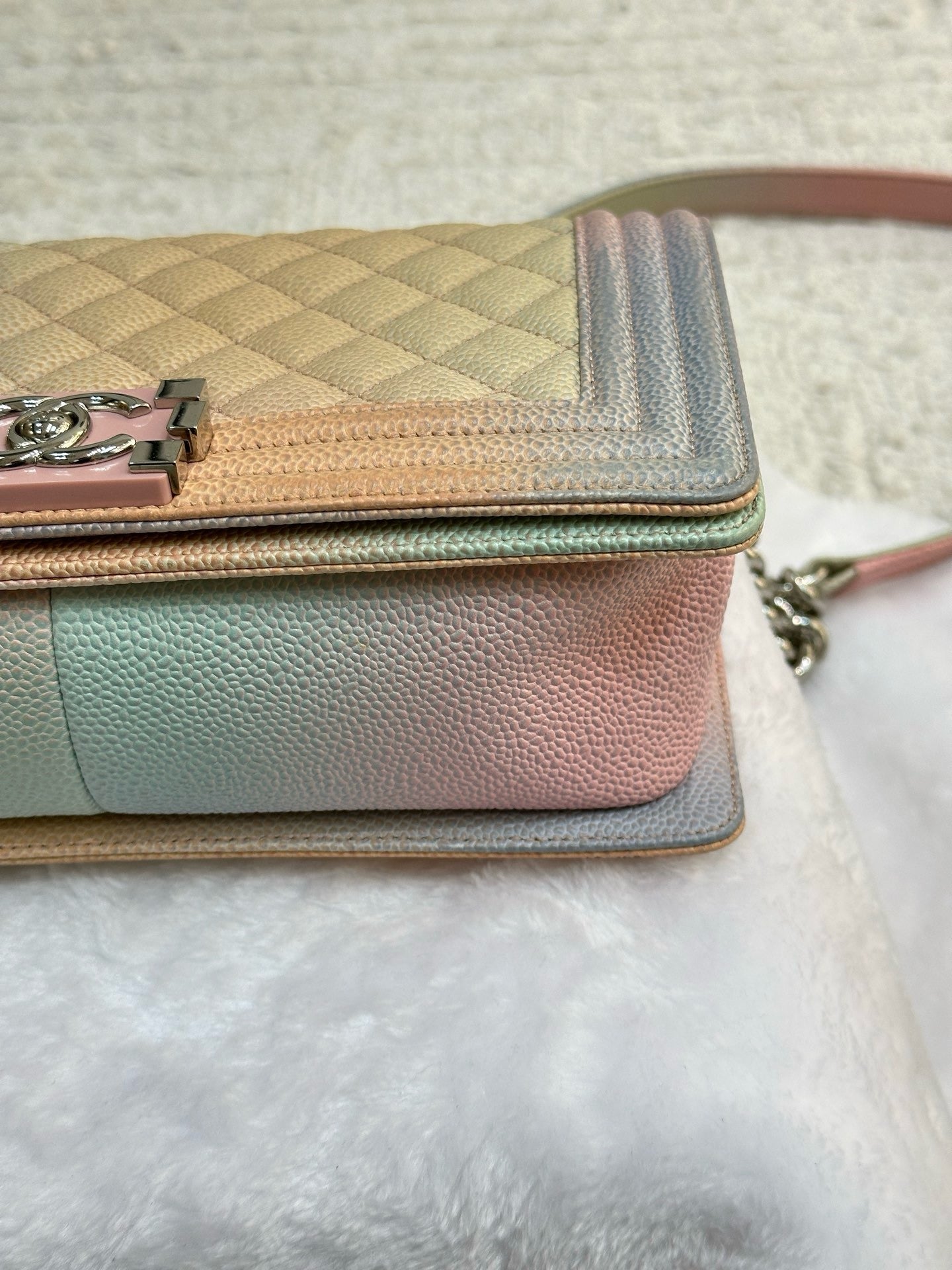 Chanel Medium Caviar Quilted Rainbow LeBoy Flap Pink Multicolor