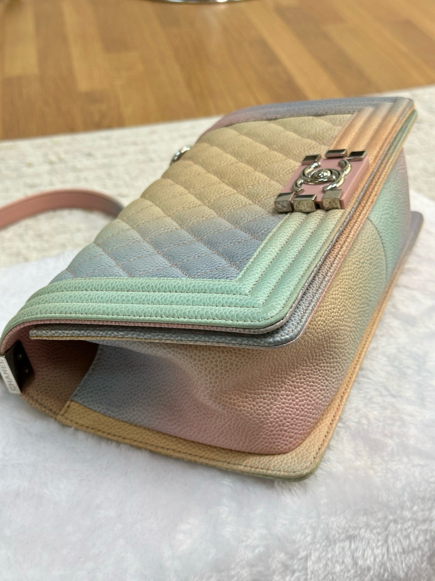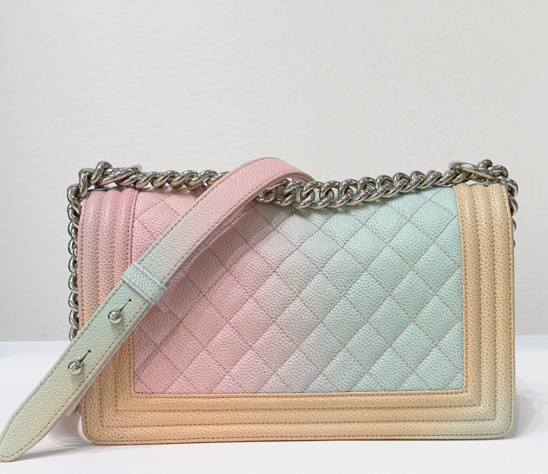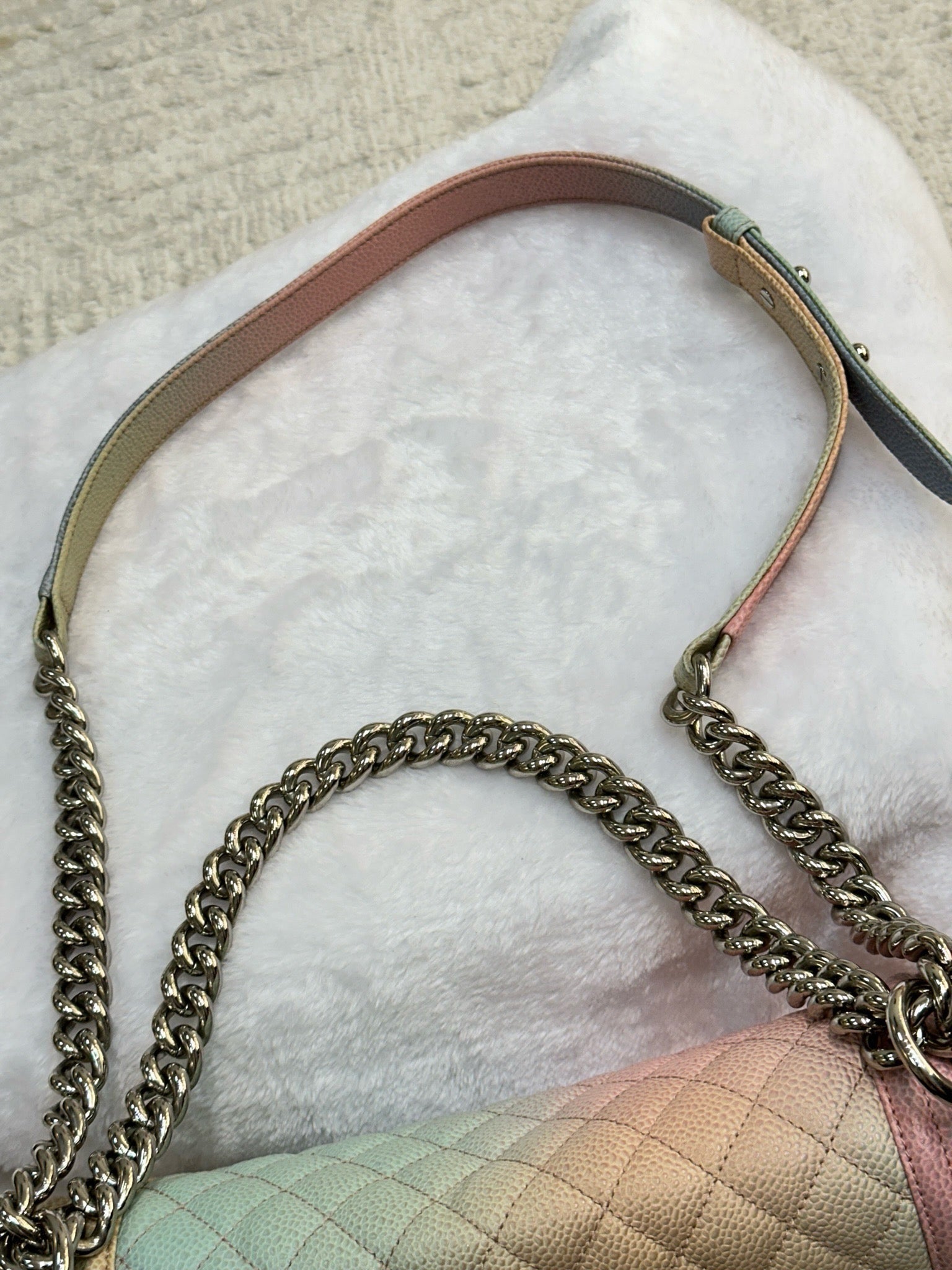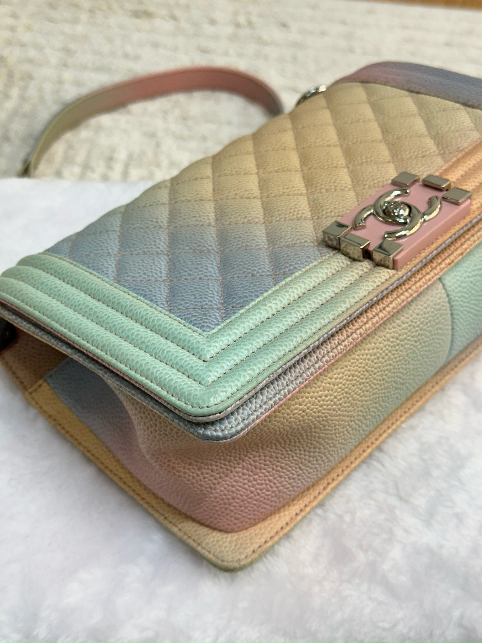 Chanel Medium Caviar Quilted Rainbow LeBoy Flap Pink Multicolor