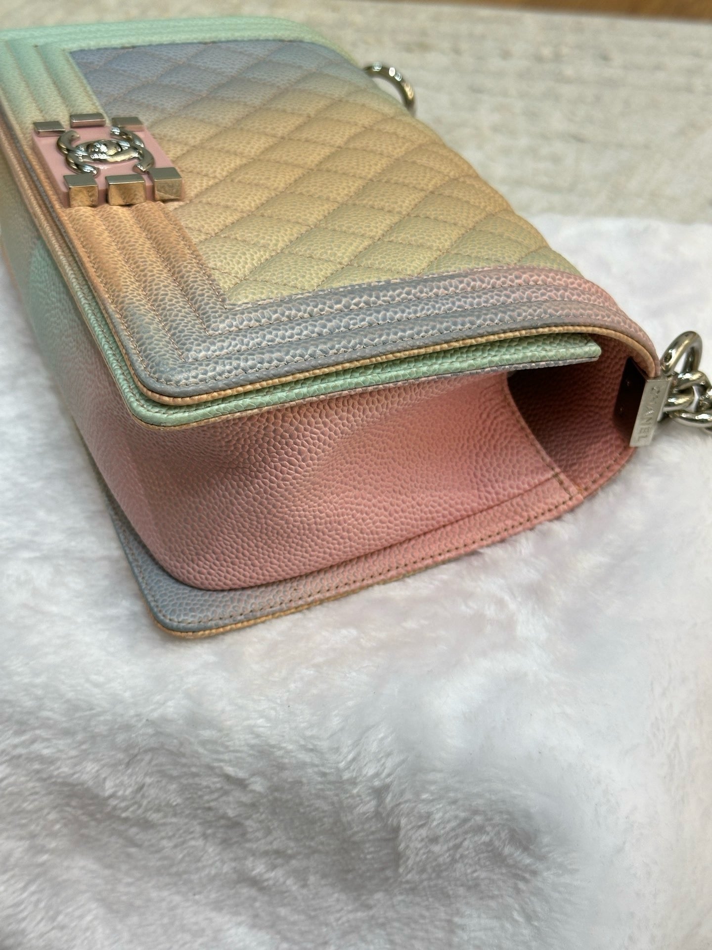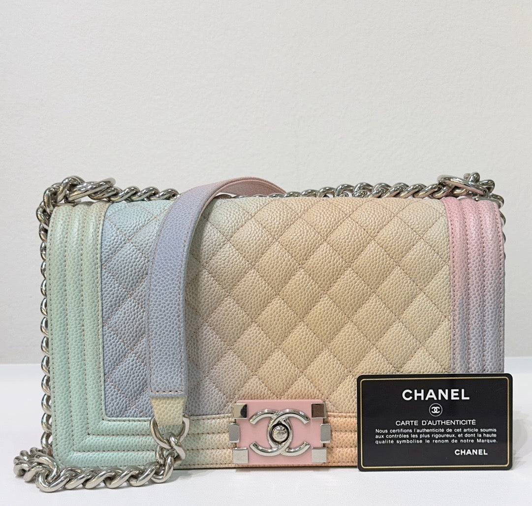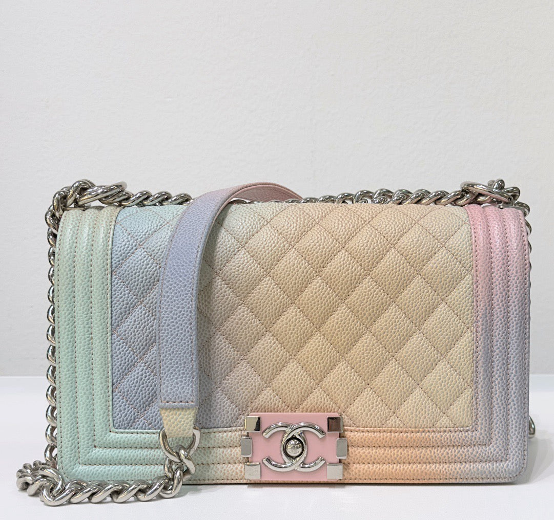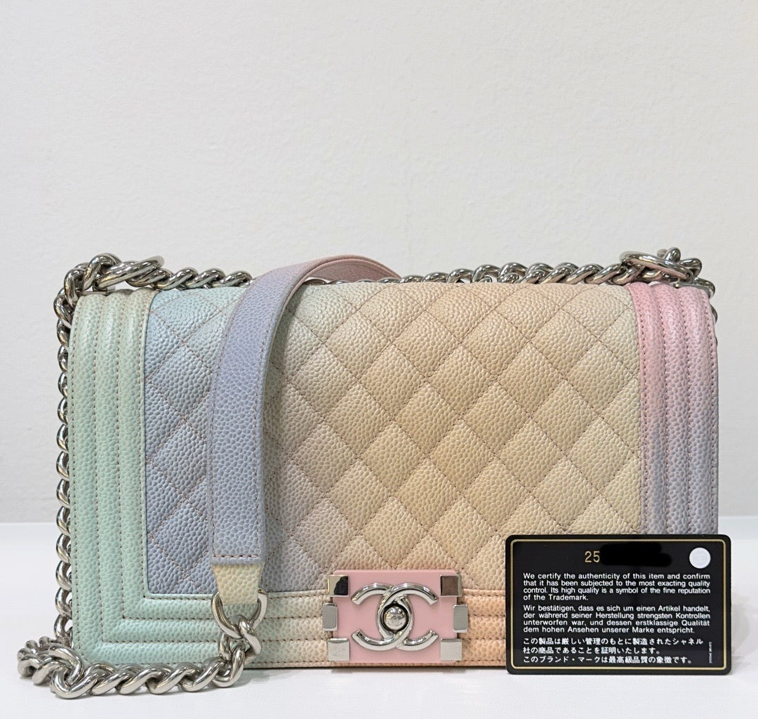 Chanel Medium Caviar Quilted Rainbow LeBoy Flap Pink Multicolor