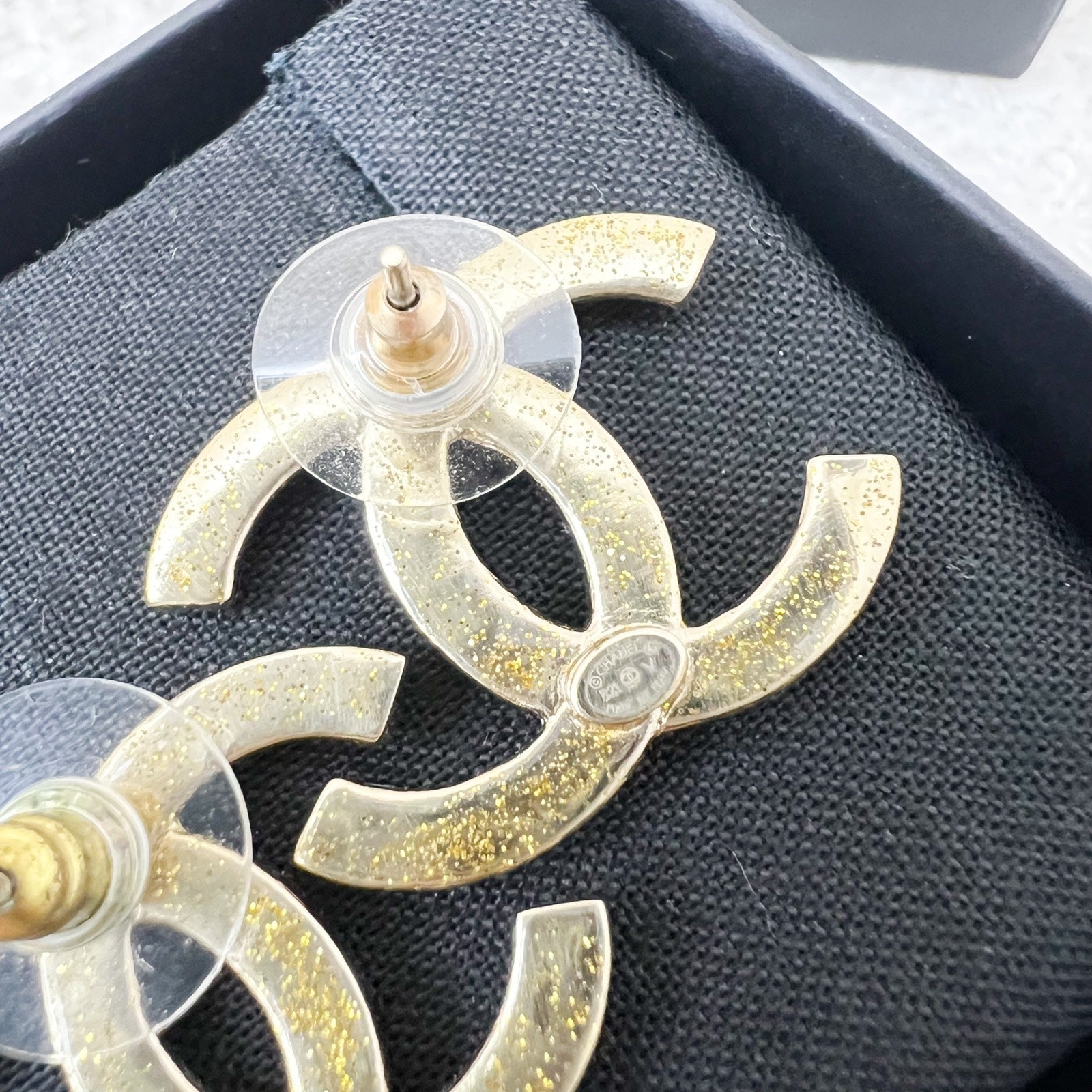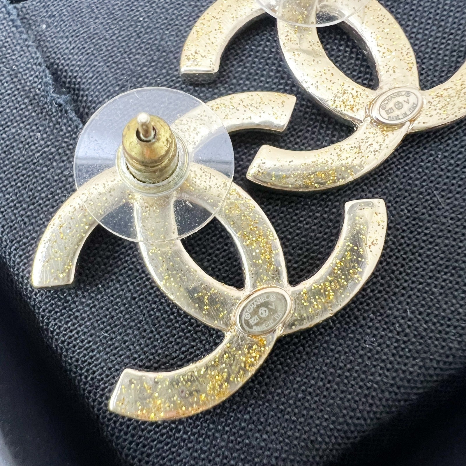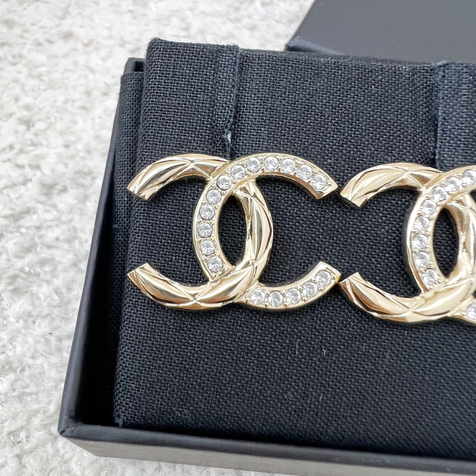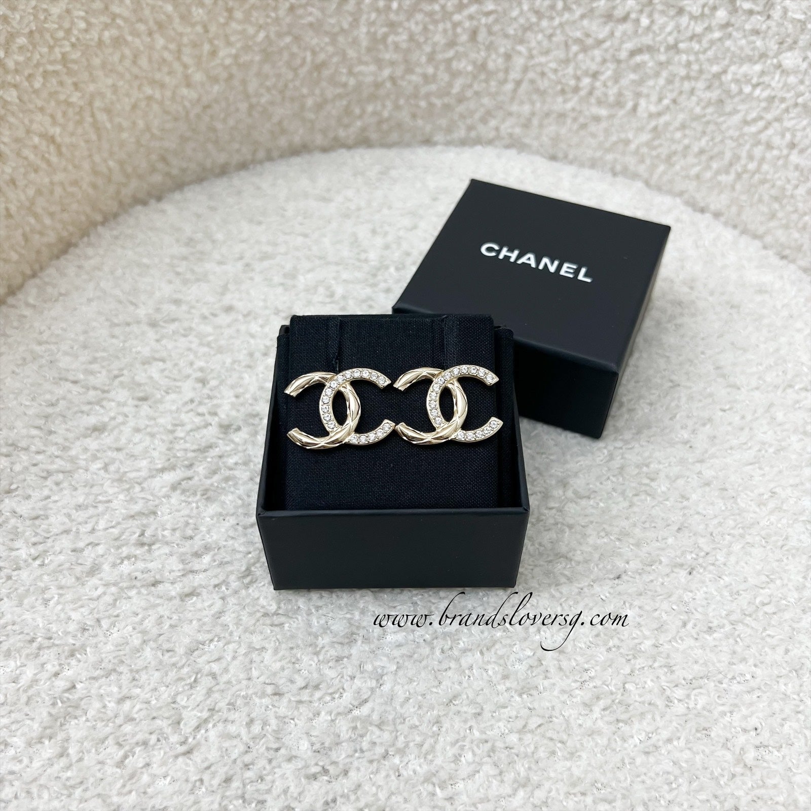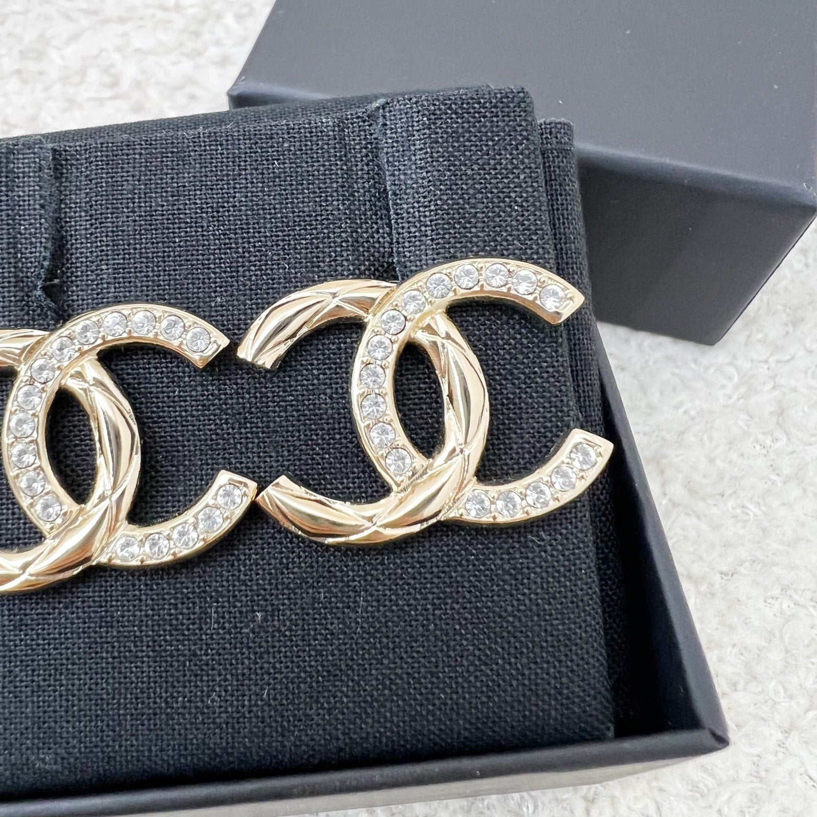 Chanel Medium CC Logo Earrings with Crystals in LGHW
